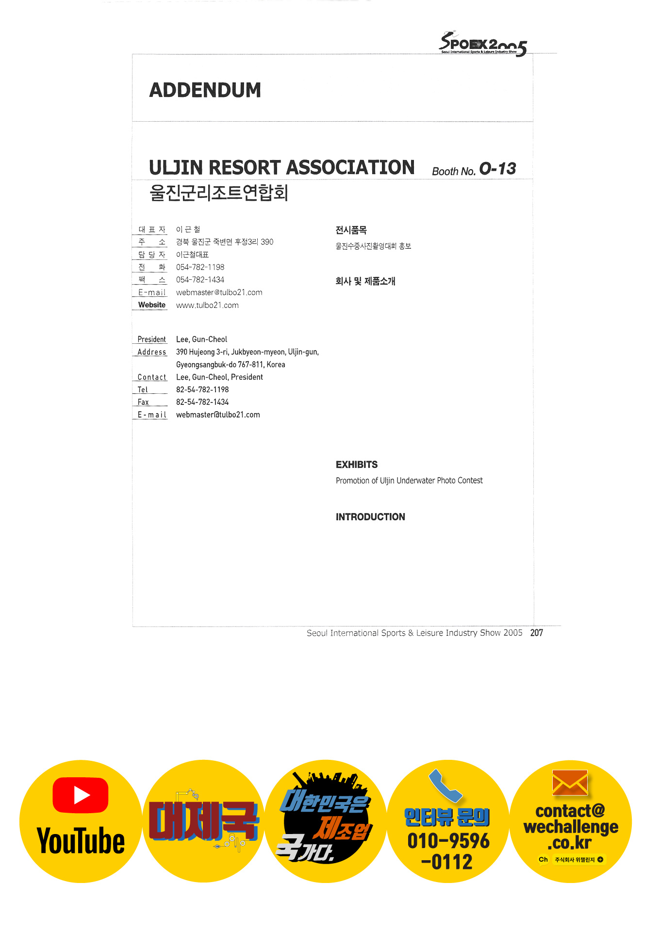 ㈜このテック バイクをお楽しみください ディスカバリー人工ロック ㈜東亜製薬 SABAH TOURISM BOARD 安いスキューバ50%のディスカウントストア テヨン産業 蔚珍郡リゾート連合会 |