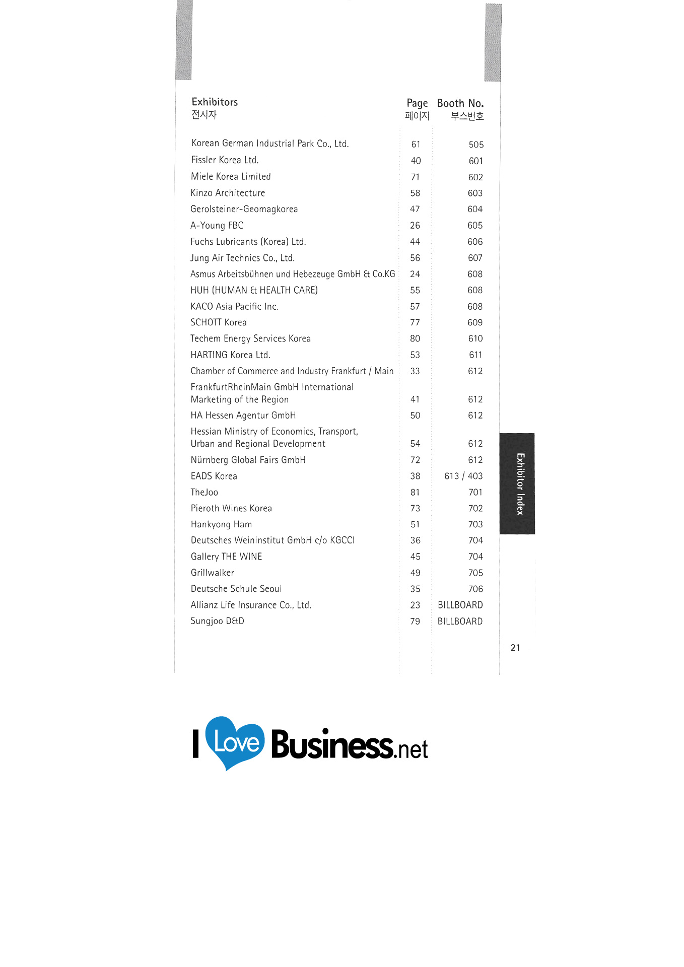 | Allianz Lebensversicherung Co., Ltd. Asmus Arbeitsbuhnen und Hebezeuge GmbH & Co. KG Audi Korea Ayoung FBC BASF Korea Bayer Korea Co., Ltd. BMW Korea Boehringer Ingelheim Korea Bosch Rexroth Korea Industrie- und Handelskammer Frankfurt am Main |