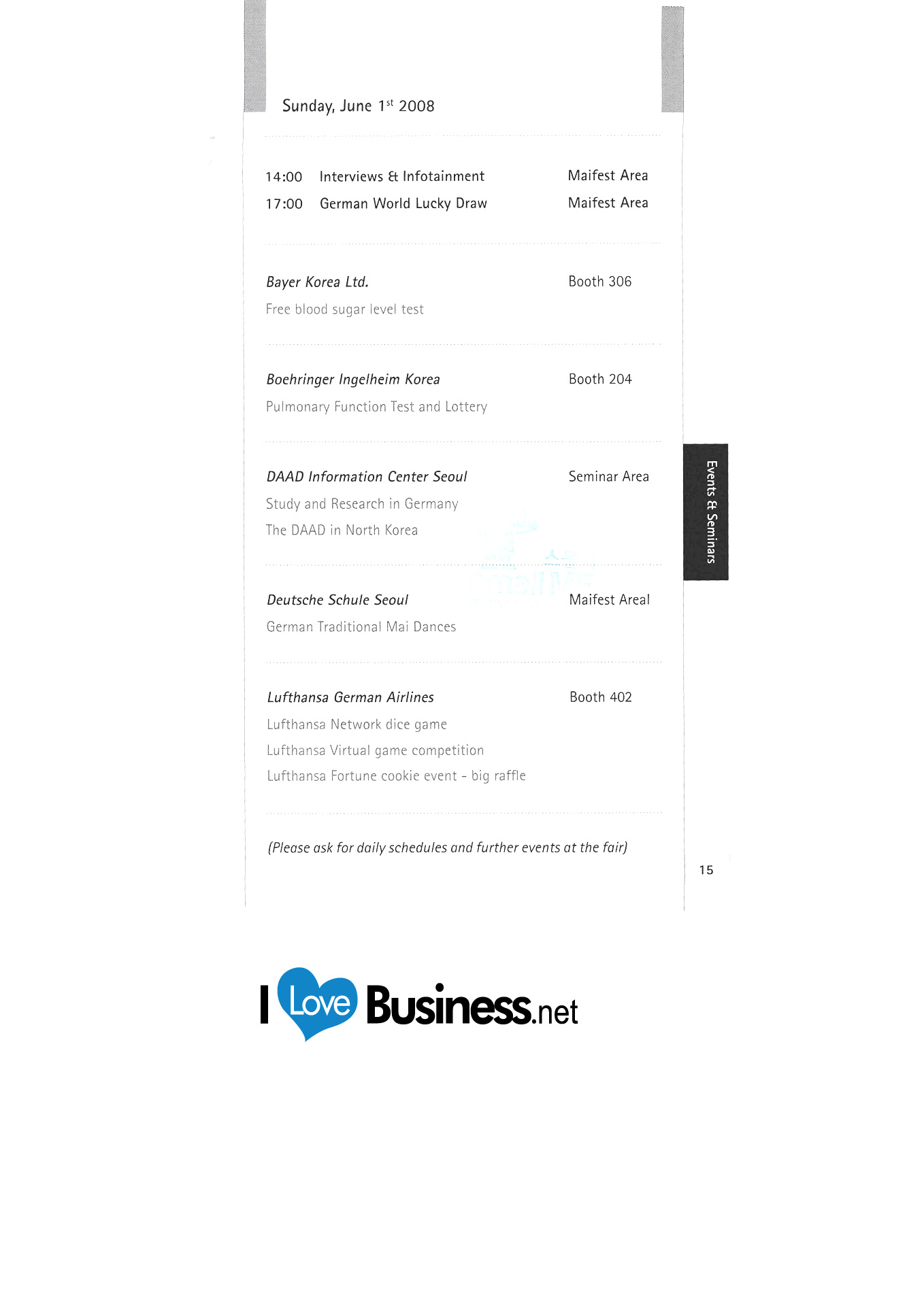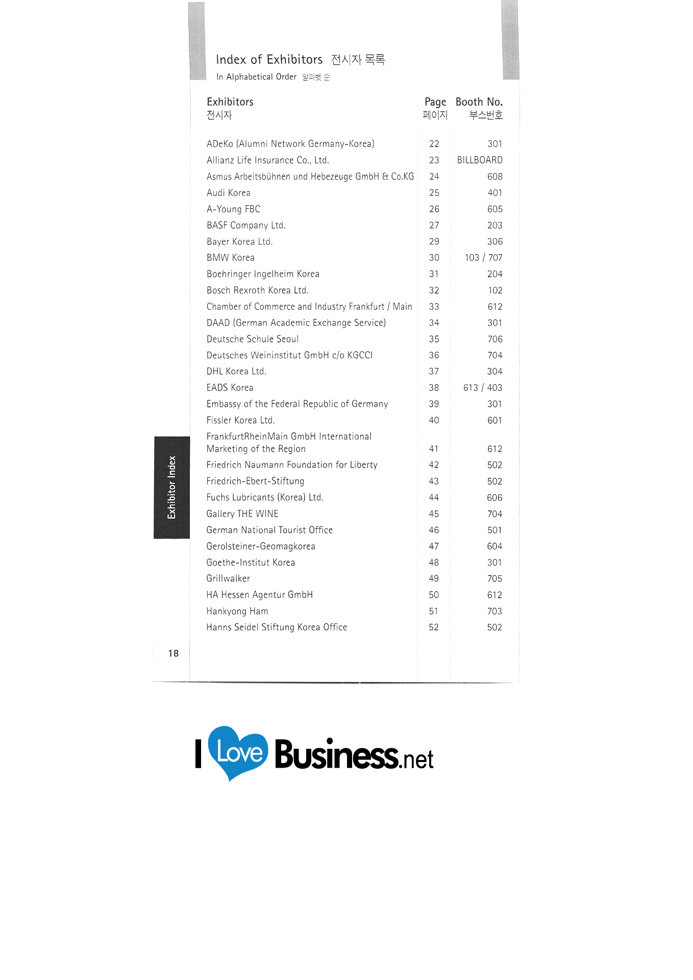 | ADeKo(한국독일동문네트워크) 알리안츠생명보험주식회사 Asmus Arbeitsbuhnen und Hebezeuge GmbH & Co. KG 아우디 코리아 아영FBC 한국바스프㈜ 바이엘코리아㈜ BMW Korea 한국베링거인겔하임 ㈜보쉬렉스로스 코리아 Chamber of Commerce and Industry Frankfurt/Main |