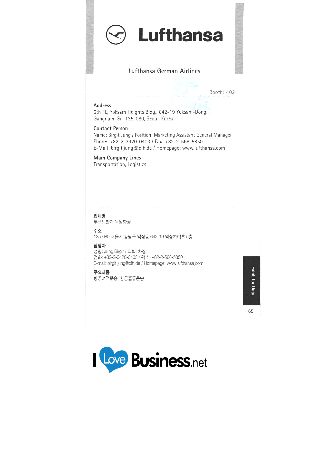 German Academic Exchange Office Seoul Office Seoul German School German Wine Association c/o Korean-German Chamber of Commerce The HL Korea Co., Ltd. EADS Korea Embassy of the Federal Republic of Germany in Korea Whistler Korea FrankfurtRheinMain GmbH International Marketing of the Region Friedrich Nauman Foundation Friedrich Evert Foundation Korea Hooks Lubricant Co., Ltd. Gallery THE WINE German tourism office Gerolsteiner-Zeomac Korea German Cultural Center in Korea Grillwalker HA Hessen Agentur GmbH Hankyung Ham Hans Seidel Foundation Korea Office HARTING KOREA "Hessian Ministry of Economics, Transport, Urban and Regional Development" Whoo Sangsa Jeong Air Technic Co., Ltd. Kako Asia Pacific Co., Ltd. Kinzo Architectural Design Office Comos Distribution Conrad Adenauer Foundation Handok Industrial-Academic Cooperation Complex German Chamber of Commerce in Korea (KGCCI) LANXESS Korea Ltd. Thuringian Economic Development Corporation Korea Office Lufthansa German Airlines Merck Corporation/ Merck Advanced Technologies Corporation Mercedes-Benz Korea |