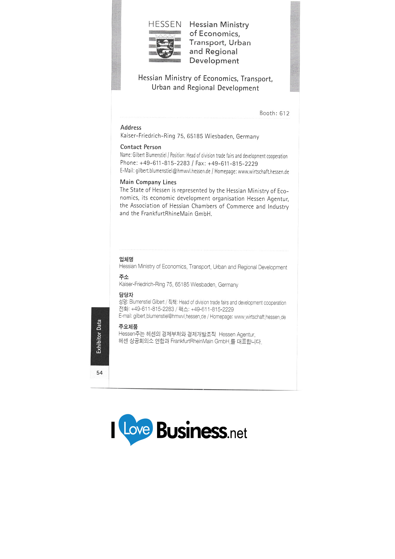 | สำนักงานแลกเปลี่ยนวิชาการเยอรมันสำนักงานโซล โรงเรียนภาษาเยอรมันโซล German Wine Association c / o หอการค้าเกาหลี - เยอรมัน บริษัท HL Korea Co. , Ltd. EADS เกาหลี สถานทูตสหพันธ์สาธารณรัฐเยอรมนีในเกาหลี วิสต์เลอร์เกาหลี FrankfurtRheinMain GmbH การตลาดระหว่างประเทศของภูมิภาค มูลนิธิฟรีดริช Nauman มูลนิธิ Friedrich Evert Korea Hooks Lubricant Co. , Ltd. แกลเลอรี THE WINE สำนักงานการท่องเที่ยวเยอรมัน Gerolsteiner-Zeomac เกาหลี ศูนย์วัฒนธรรมเยอรมันในเกาหลี Grillwalker HA Hessen Agentur GmbH ฮันคยองแฮม มูลนิธิฮันส์ไซเดลสำนักงานเกาหลี HARTING KOREA "Hessian กระทรวงเศรษฐศาสตร์การขนส่ง การพัฒนาเมืองและภูมิภาค " โห่ร้องซ่าส์ จองแอร์เทคนิคบจก. คาโกะเอเชียแปซิฟิกบจก. สำนักงานออกแบบสถาปัตยกรรม Kinzo การกระจาย Comos มูลนิธิ Conrad Adenauer ศูนย์ความร่วมมือทางวิชาการและอุตสาหกรรม Handok หอการค้าเยอรมันในเกาหลี (KGCCI) LANXESS Korea Ltd. Thuringian Economic Development Corporation สำนักงานเกาหลี Lufthansa German Airlines Merck Corporation / Merck Advanced Technologies Corporation Mercedes-Benz Korea |