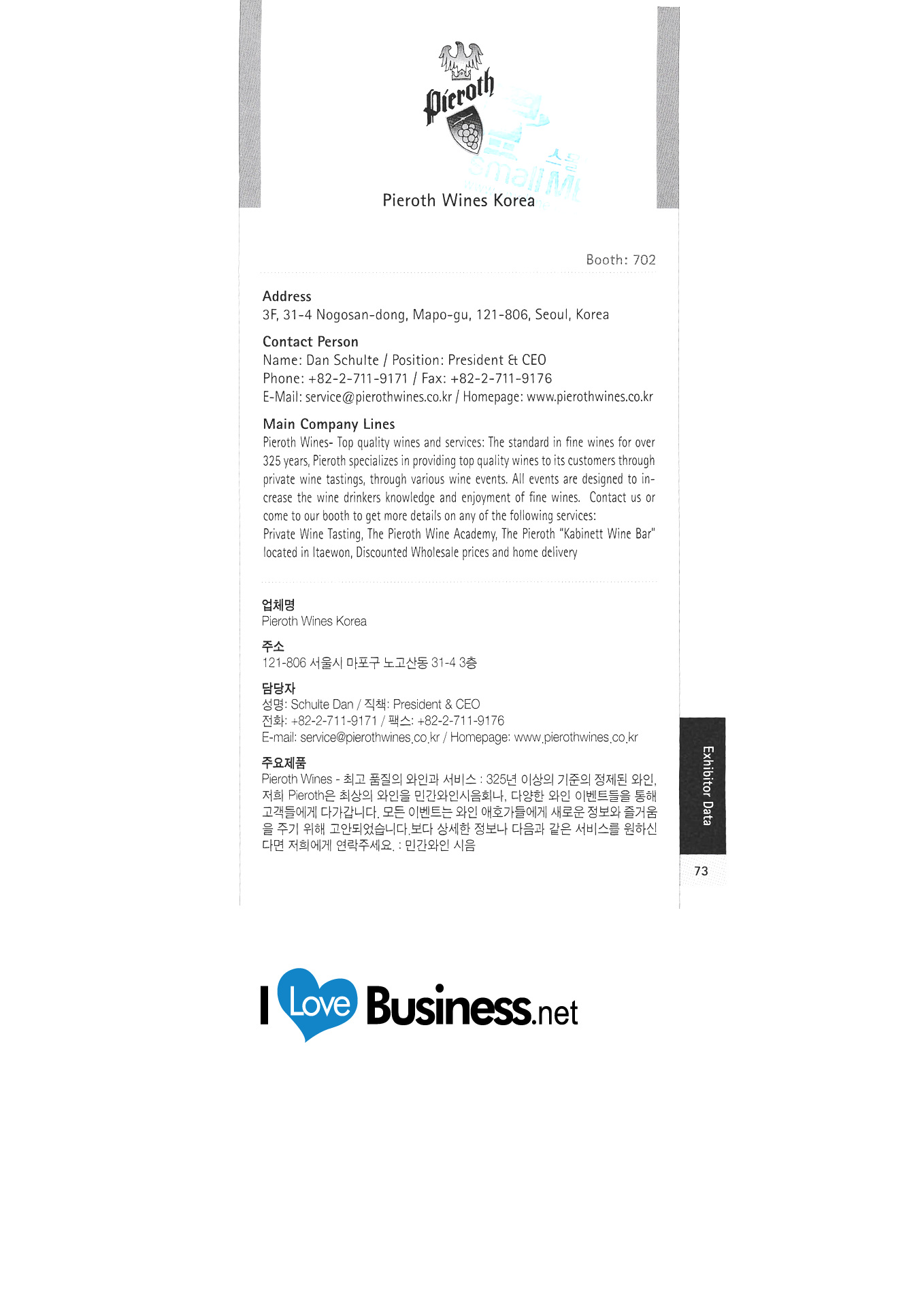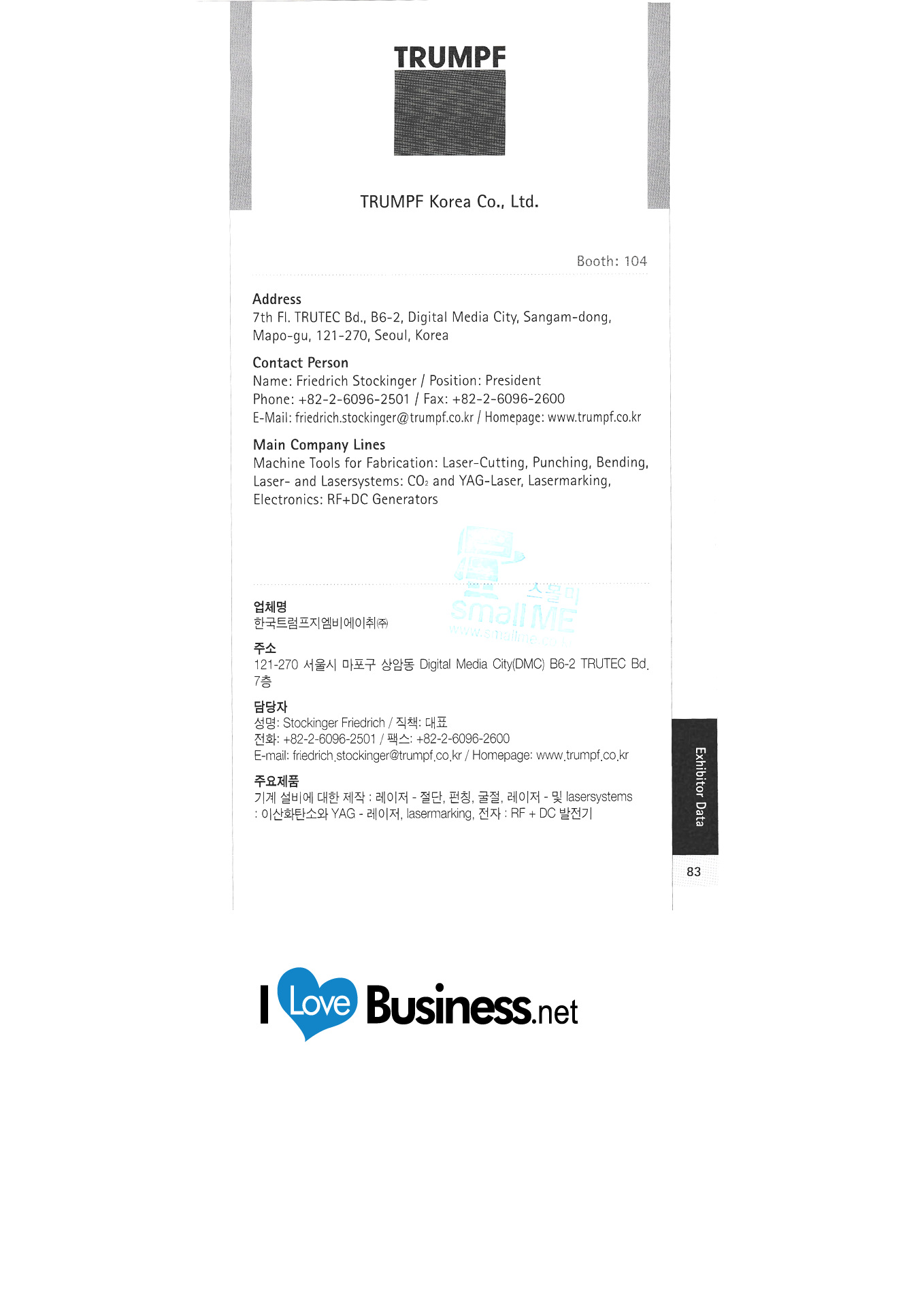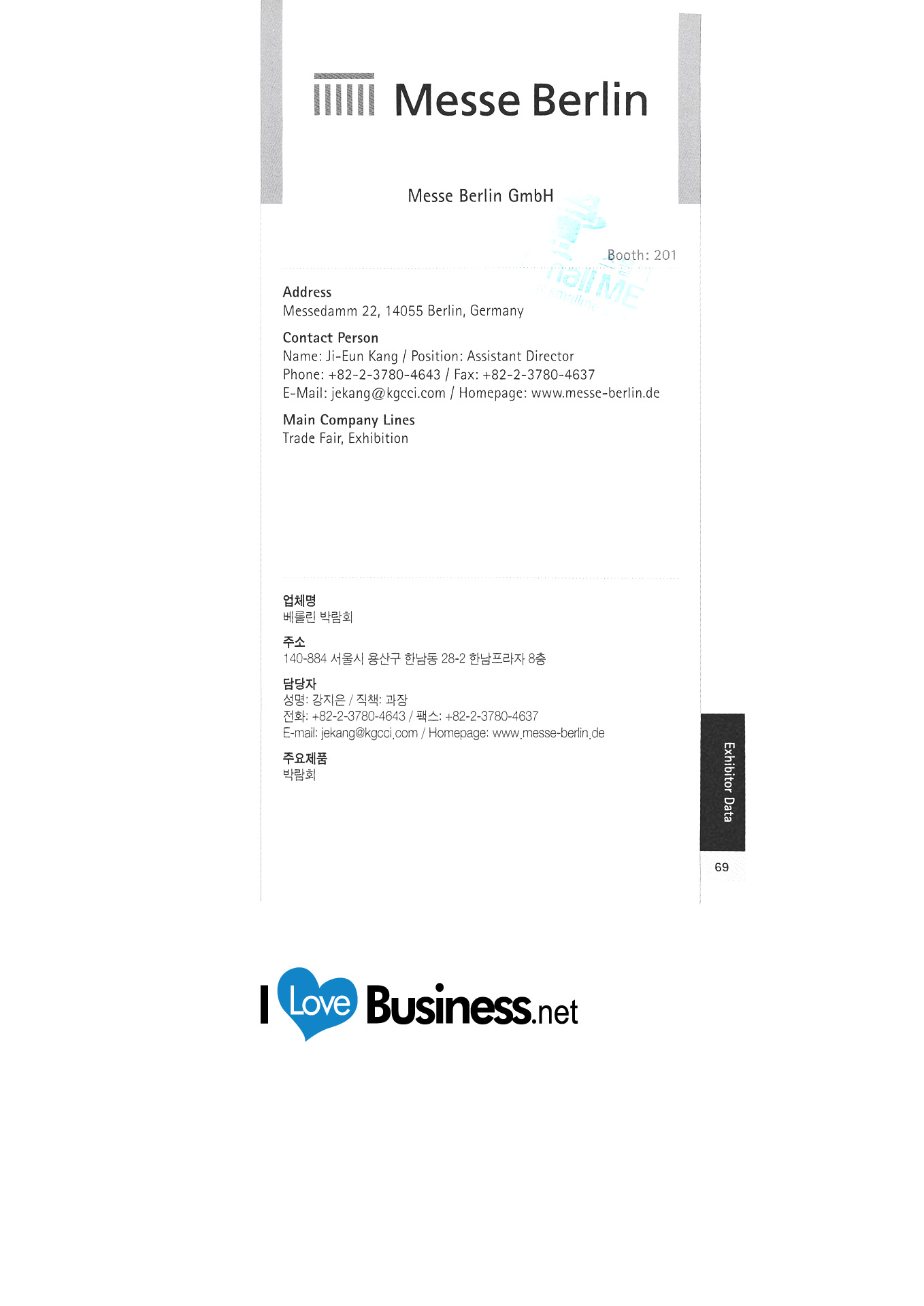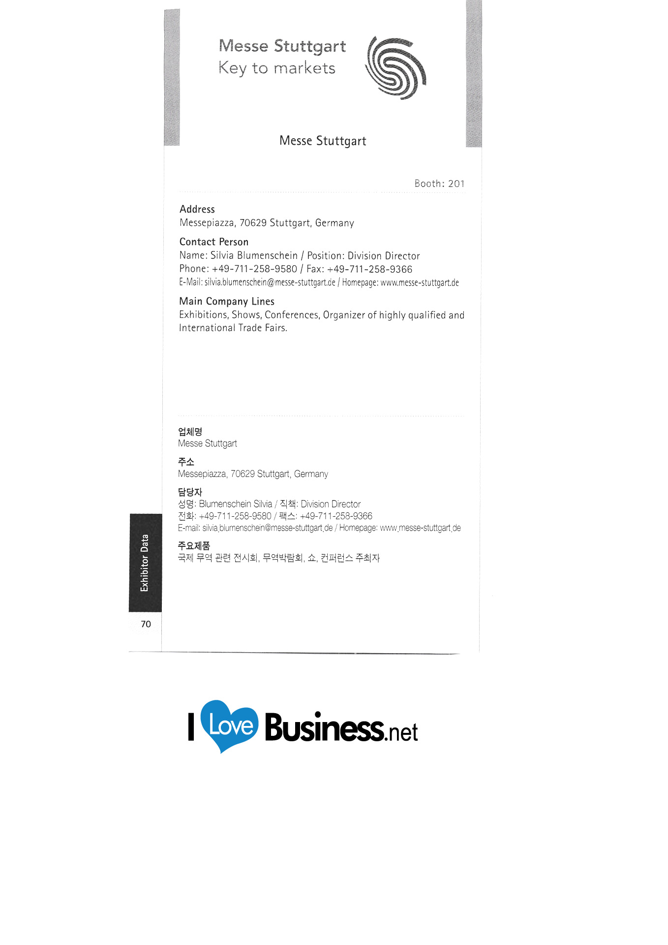 Berliner Messe Messe Stuttgart Miele Korea Nürnberg Global Fairs GmbH Pieroth Weine Korea RWTH Aachen Siemens Kurzes Korea Stuttgarter Sportwagen Co., Ltd. Seongju D & D. Tehem Energy Service Korea Co., Ltd. Deju Korea Trump GMBH Co., Ltd. Universität Göttingen Volkswagen Korea |