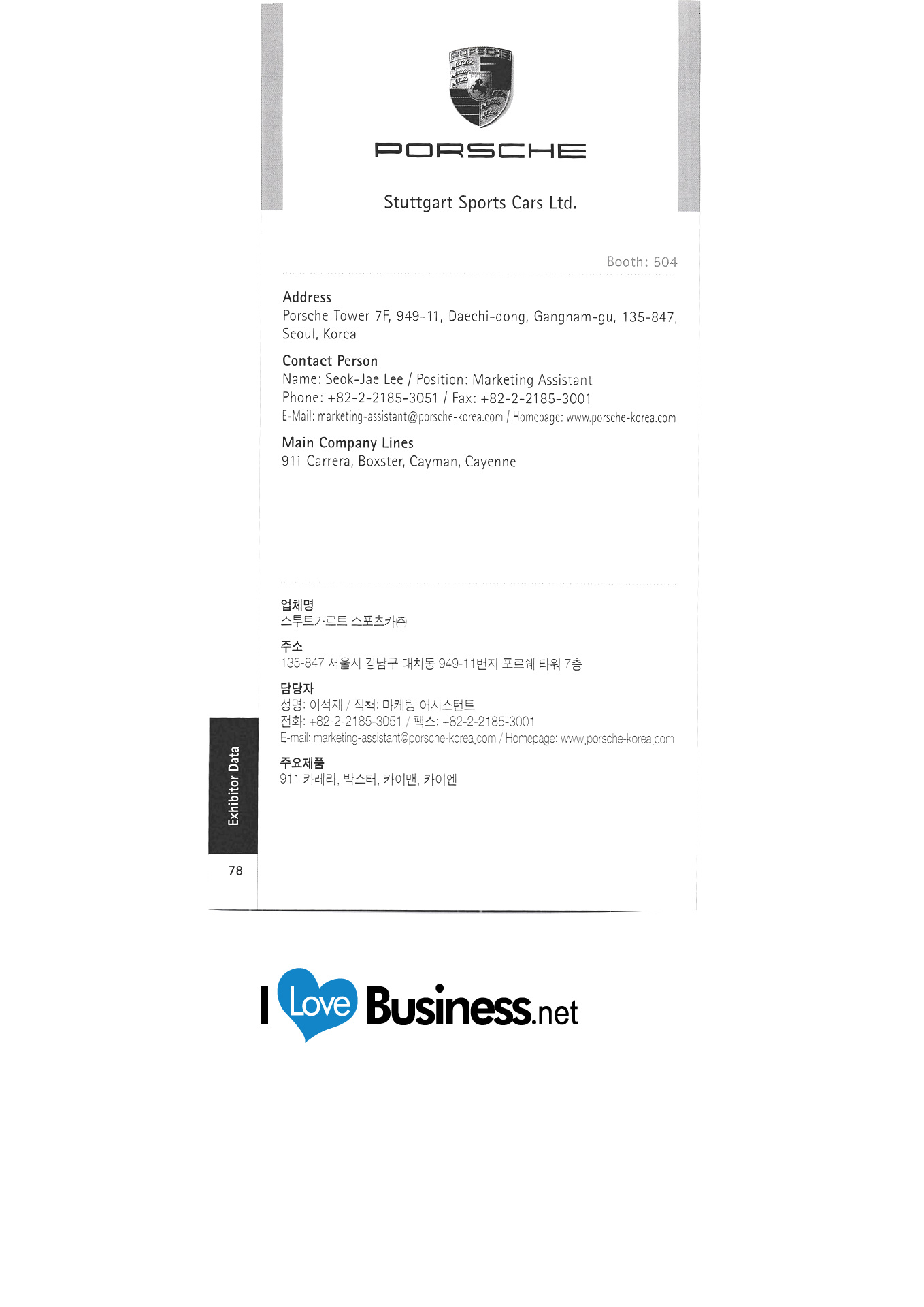 | งานเบอร์ลิน เมสเซ่สตุ๊ตการ์ท มิเอเล่เกาหลี Nurnberg Global Fairs GmbH Pieroth Wines Korea มหาวิทยาลัย RWTH Aachen ซีเมนส์ สั้นเกาหลี Stuttgart Sports Car Co. , Ltd. ซองจู D&D Tehem Energy Service Korea Co. , Ltd. เดจู Korea Trump GMBH Co. , Ltd. มหาวิทยาลัย Gottingen Volkswagen เกาหลี |