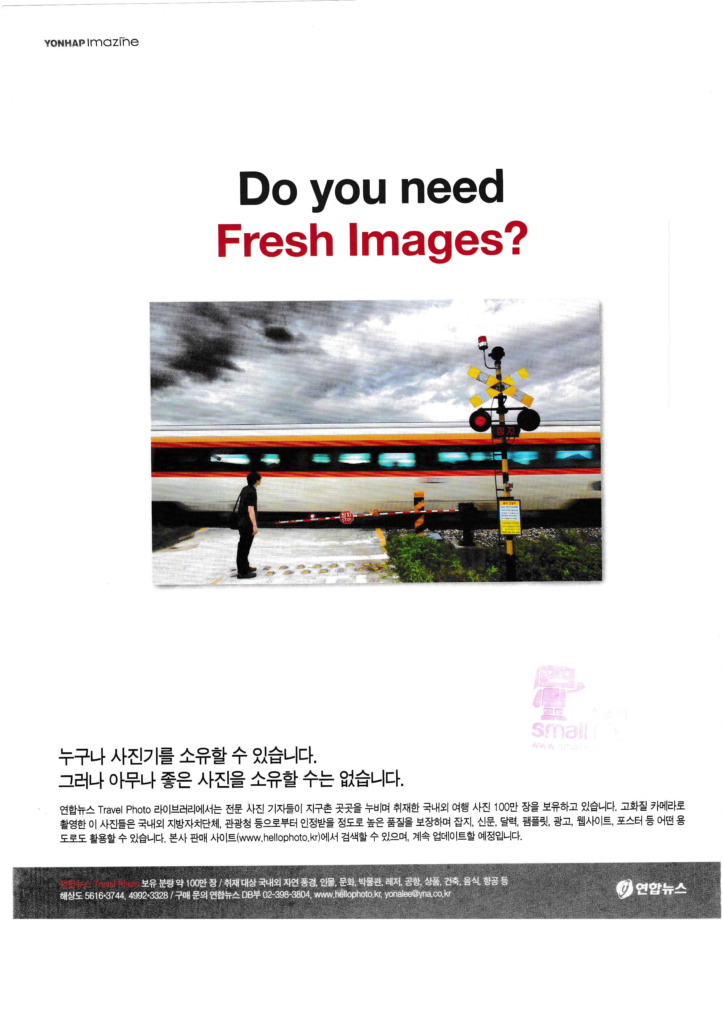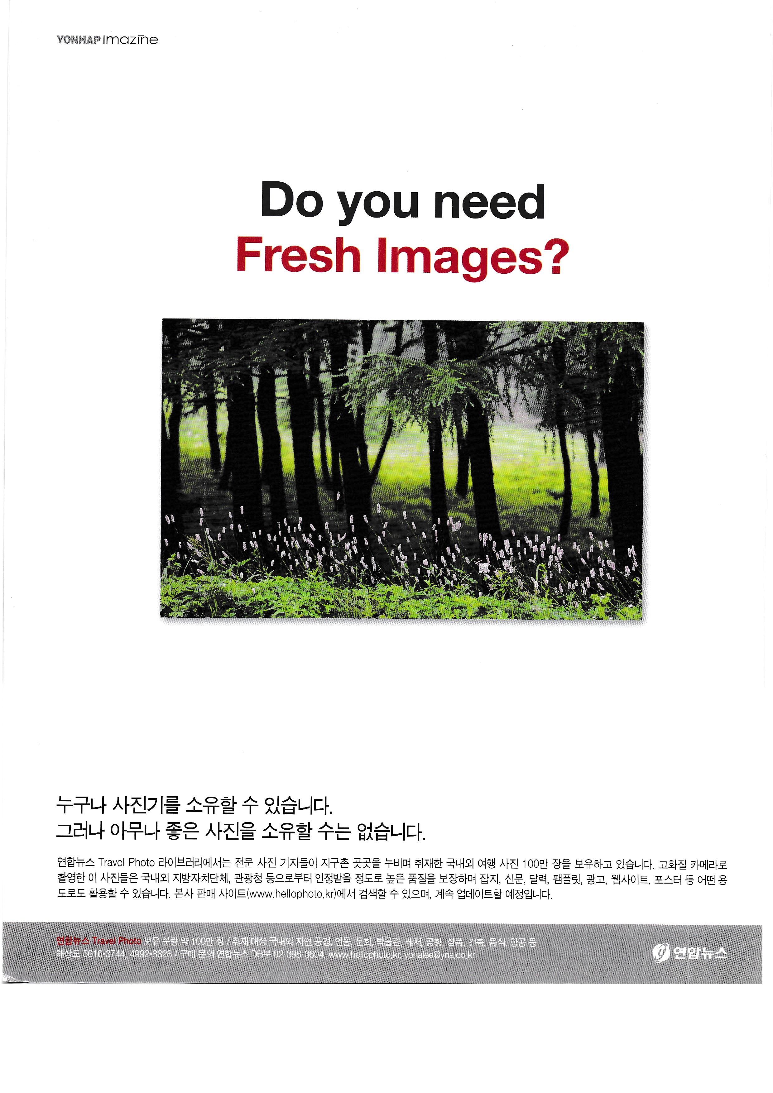 연합뉴스가 디지털 이미지 판매사업을 한다는 내용을 아주 작게 나타내는 광고...