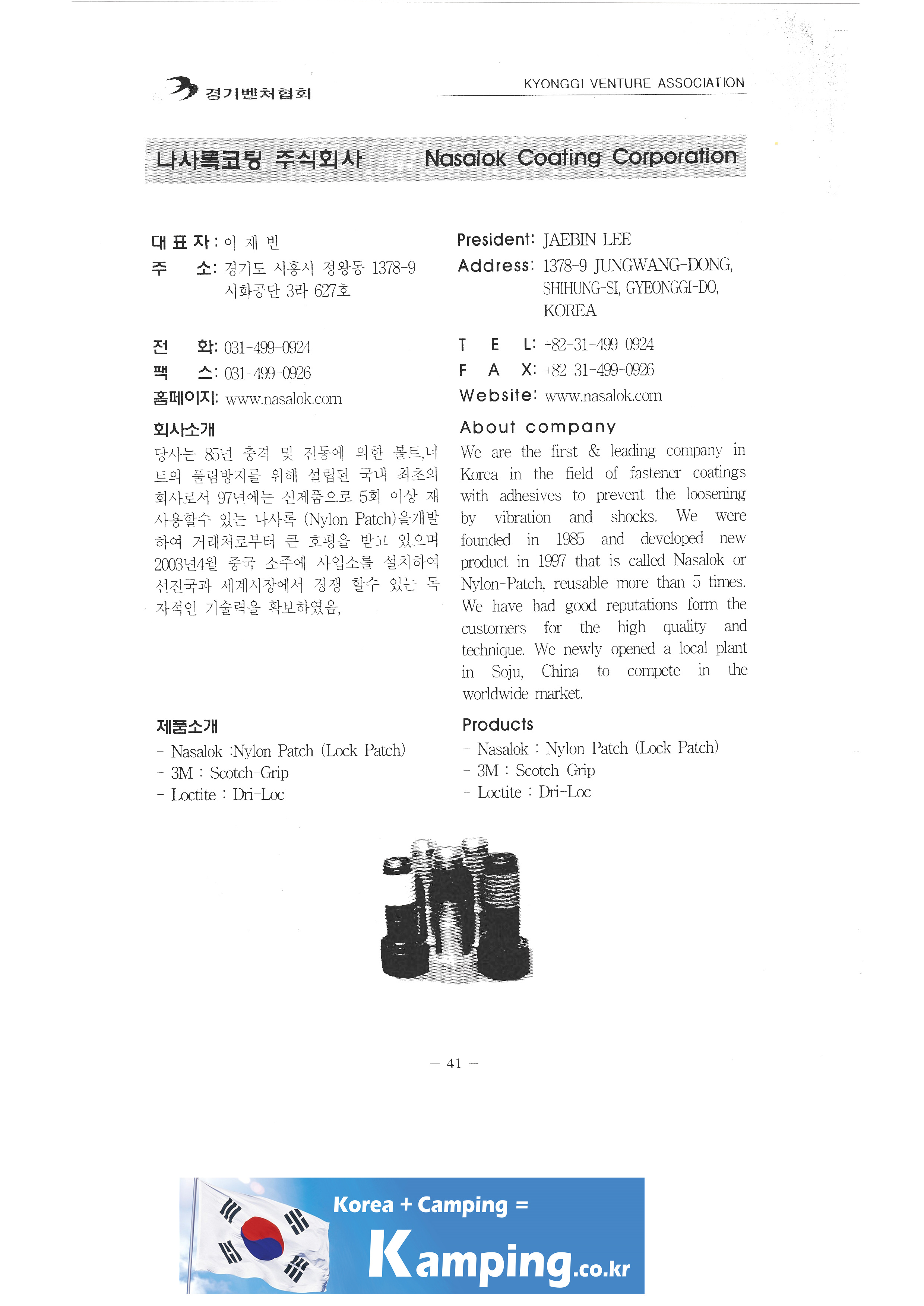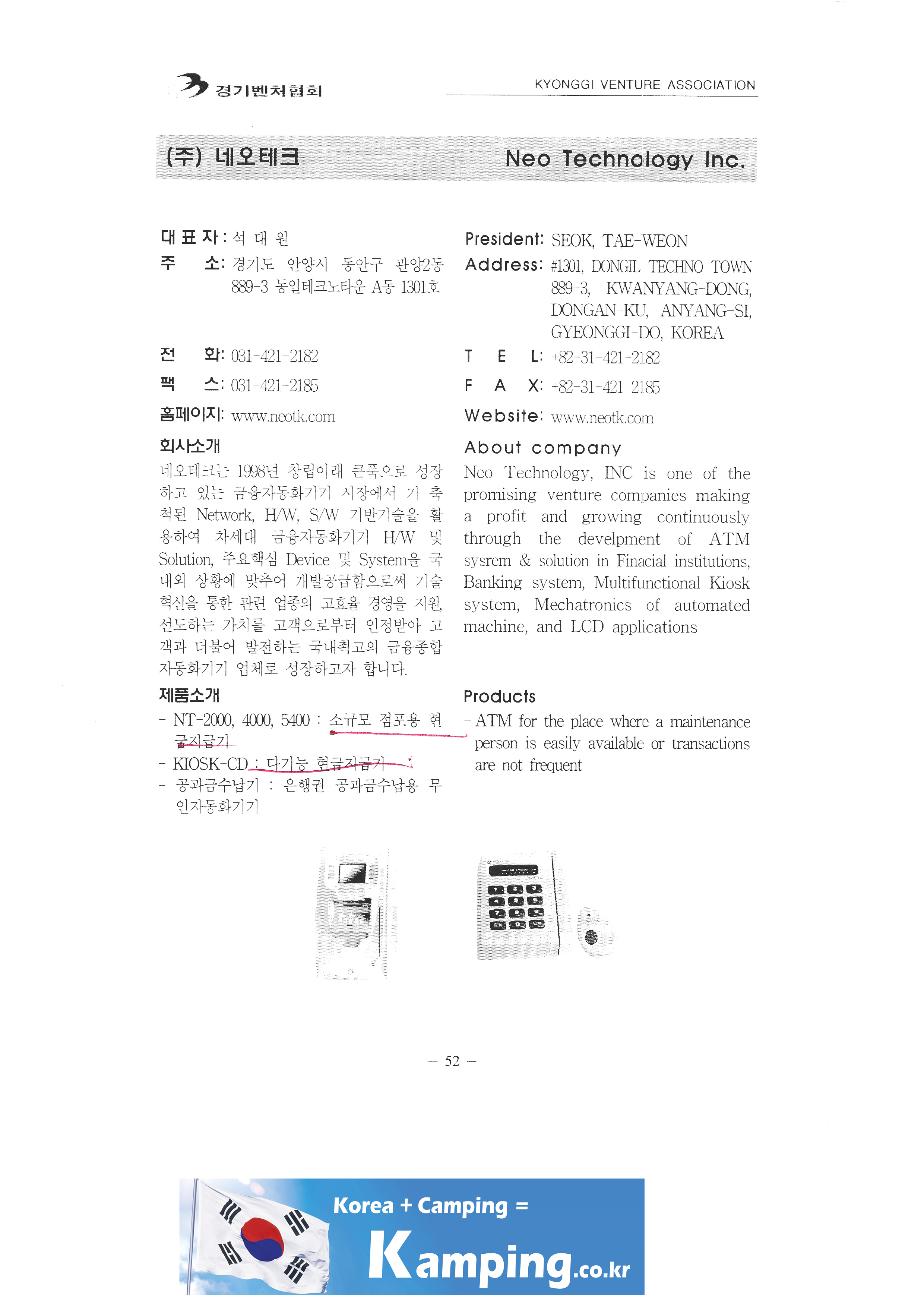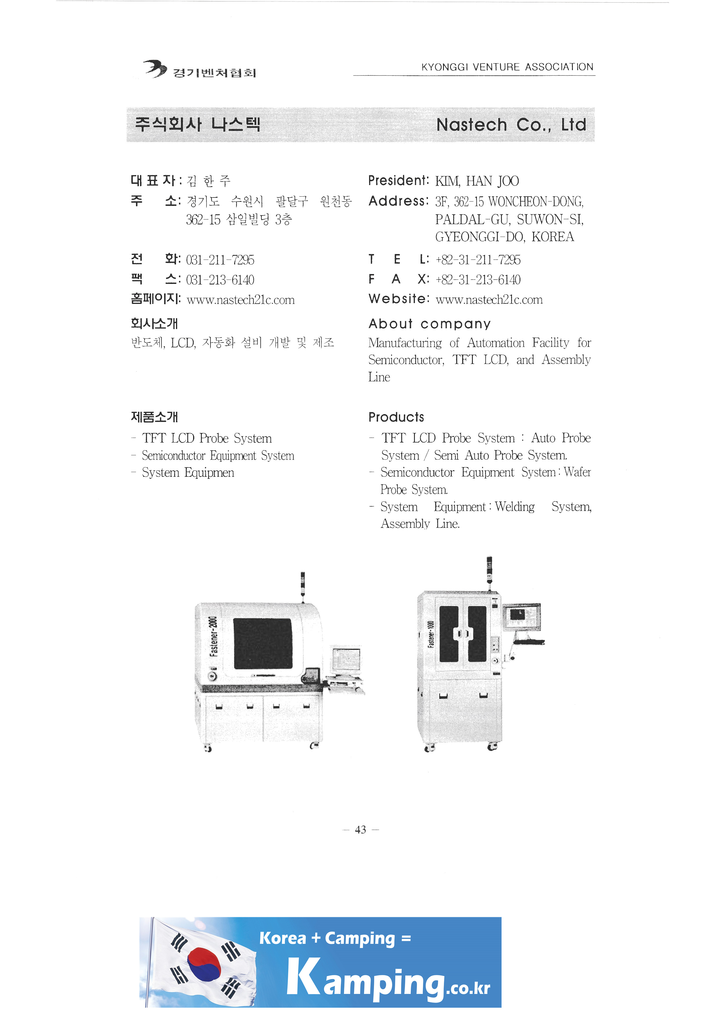 | 나노솔루션주식회사 ㈜나노캐스텍 ㈜나노하이텍 나사록코딩 주식회사 나산테크 주식회사 나스텍 나은세상㈜ ㈜남경인더스트리 남방CAN주식회사 ㈜남 영 남영유화공업 ㈜네오스텍 ㈜네오정보시스템 ㈜네오테크 ㈜네오포텍 네트워크케이블㈜ 넥스타 테크놀로지㈜ 주식회사 넥스트릭스 노 아 화 학 ㈜누막스코리아 ㈜뉴메탈텍 뉴콤웨이브㈜ ㈜니오스 ㈜닉스소프트 ㈜닉스전자 ㈜닛시텔레콤 ㈜다래월드 다가전자㈜ ㈜다내기술 ㈜다물텔레콤 주식회사 다쉬 ㈜다 운 당산화학공업㈜ ㈜대경일렉 ㈜대백인터내쇼날 대양콜랜트㈜ 대 양 정 밀㈜ 대양테크㈜ 대양풍력기계 |