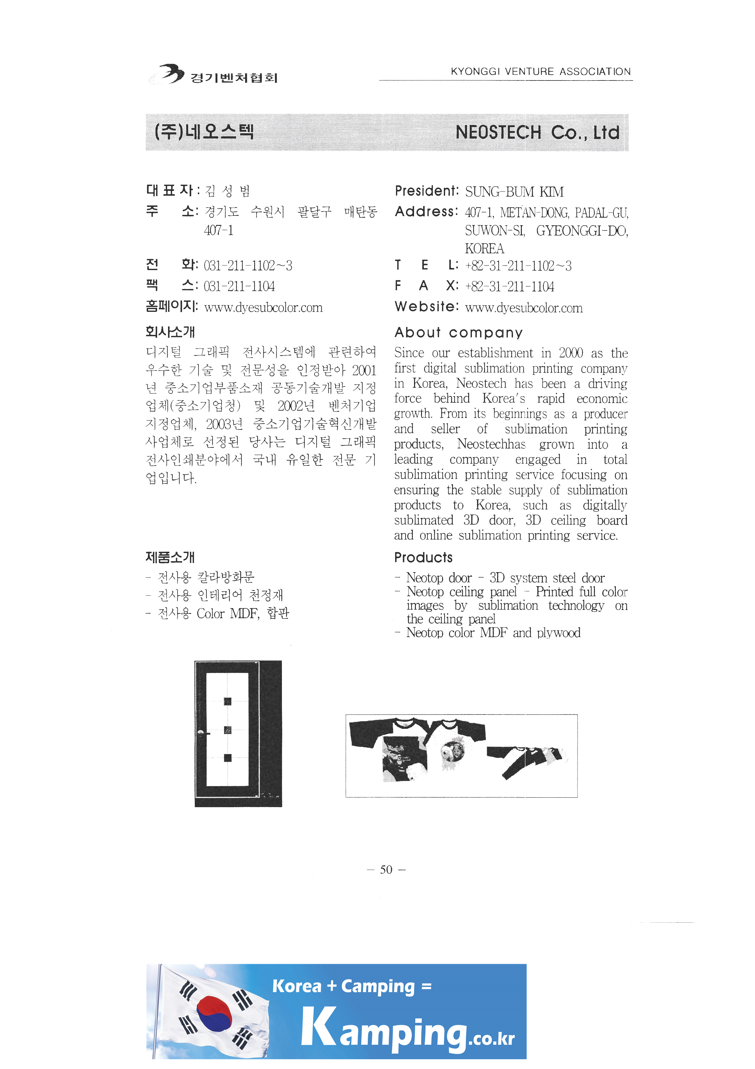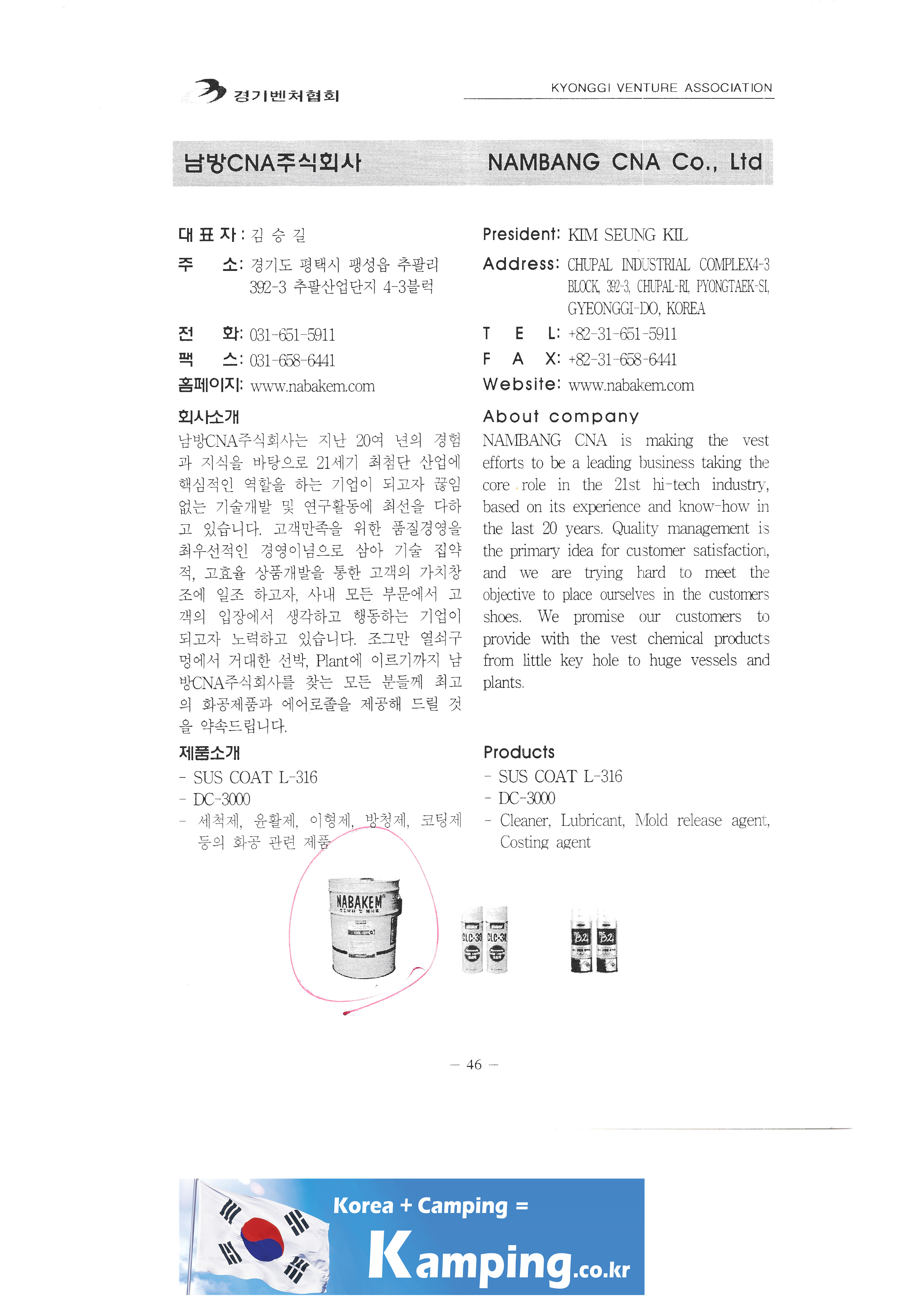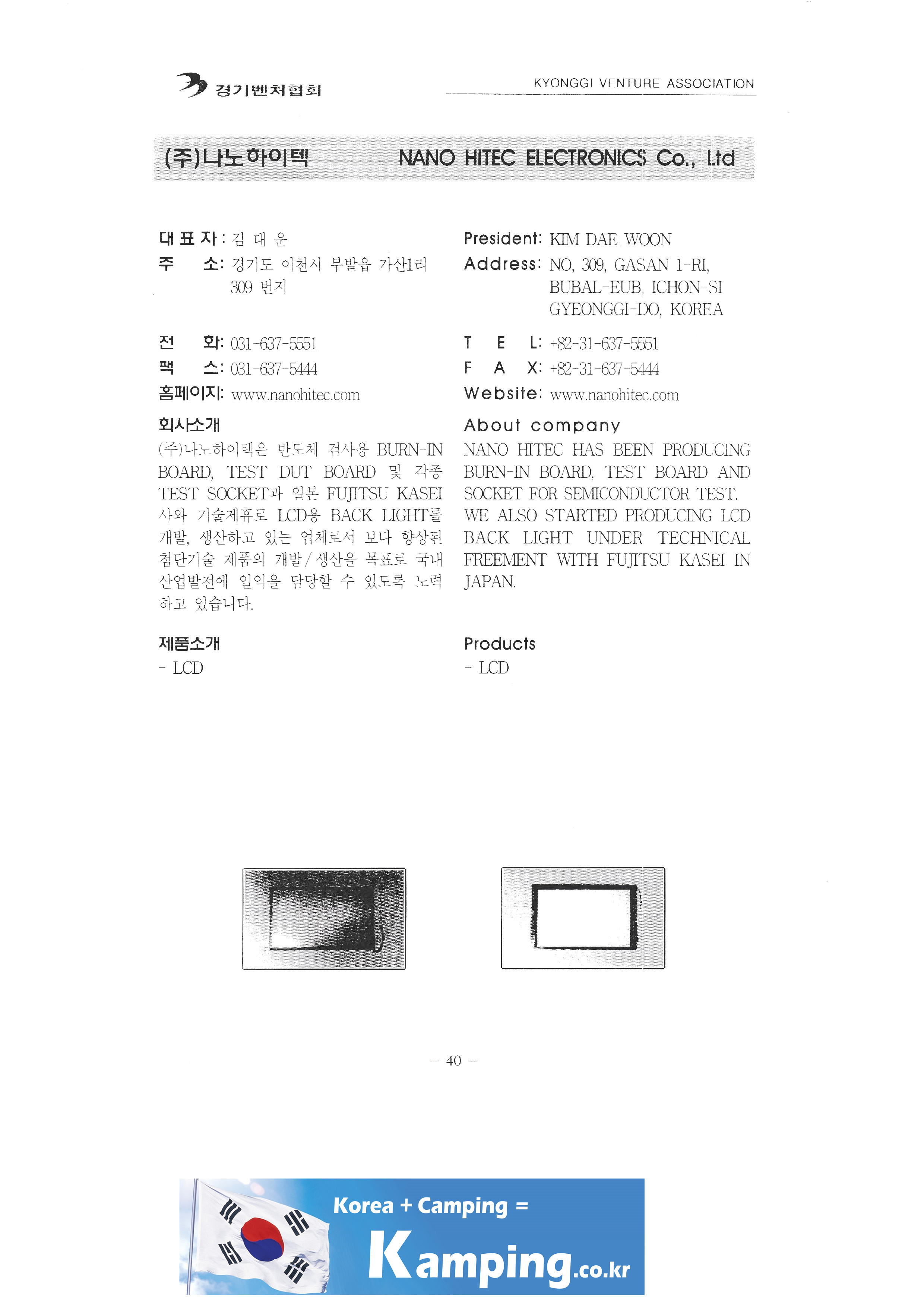 | 나노솔루션주식회사 ㈜나노캐스텍 ㈜나노하이텍 나사록코딩 주식회사 나산테크 주식회사 나스텍 나은세상㈜ ㈜남경인더스트리 남방CAN주식회사 ㈜남 영 남영유화공업 ㈜네오스텍 ㈜네오정보시스템 ㈜네오테크 ㈜네오포텍 네트워크케이블㈜ 넥스타 테크놀로지㈜ 주식회사 넥스트릭스 노 아 화 학 ㈜누막스코리아 ㈜뉴메탈텍 뉴콤웨이브㈜ ㈜니오스 ㈜닉스소프트 ㈜닉스전자 ㈜닛시텔레콤 ㈜다래월드 다가전자㈜ ㈜다내기술 ㈜다물텔레콤 주식회사 다쉬 ㈜다 운 당산화학공업㈜ ㈜대경일렉 ㈜대백인터내쇼날 대양콜랜트㈜ 대 양 정 밀㈜ 대양테크㈜ 대양풍력기계 |