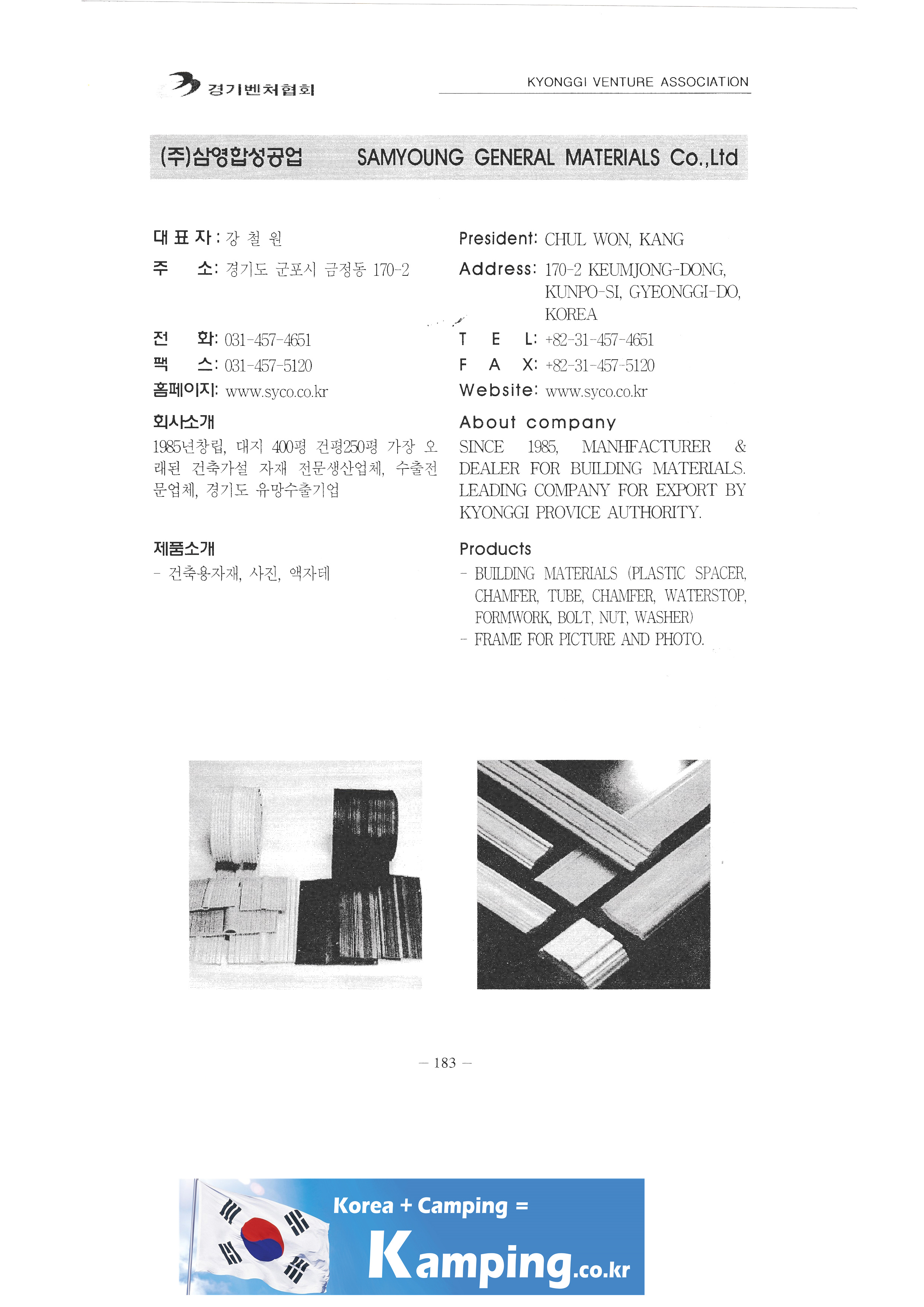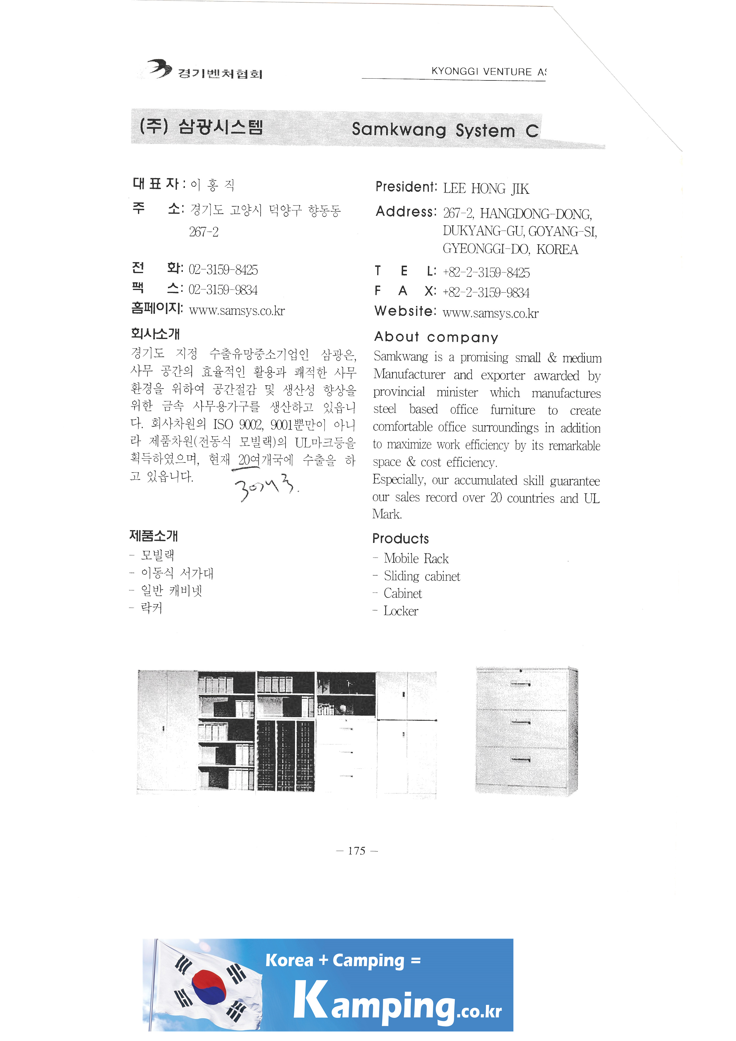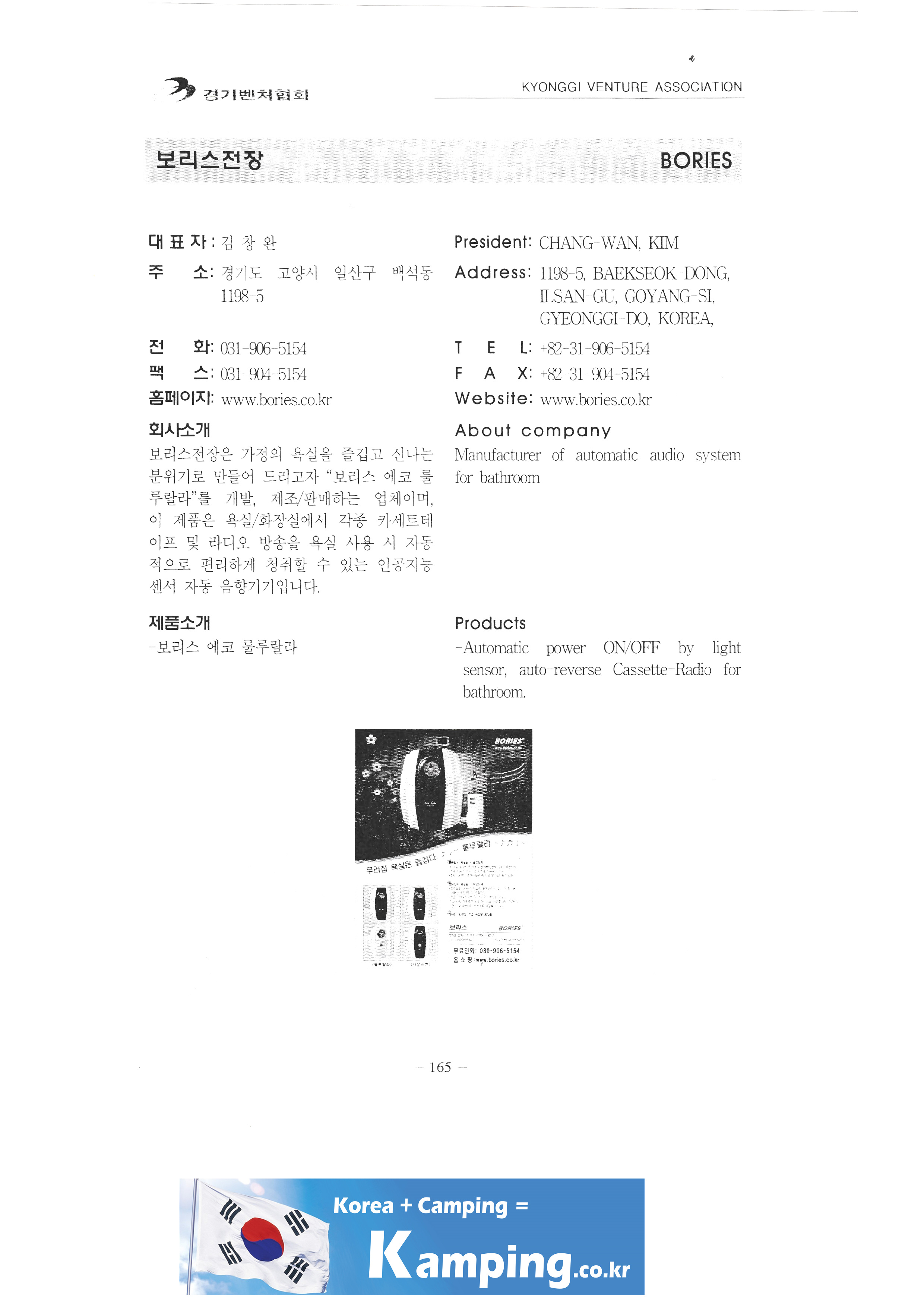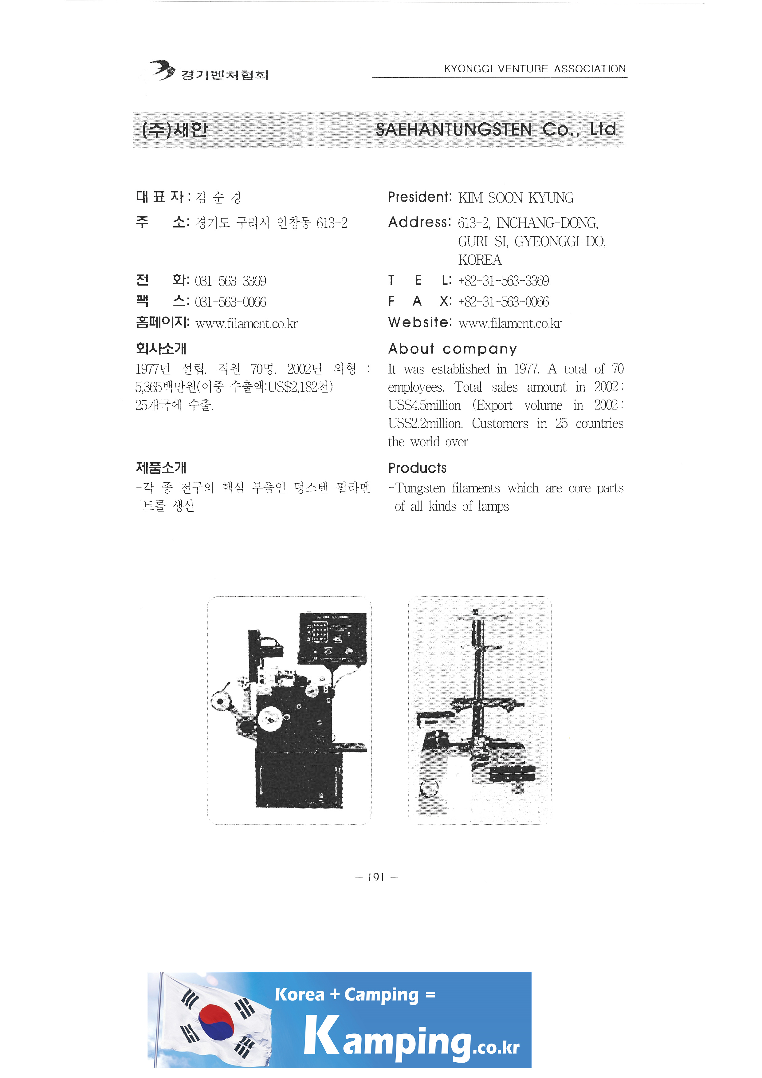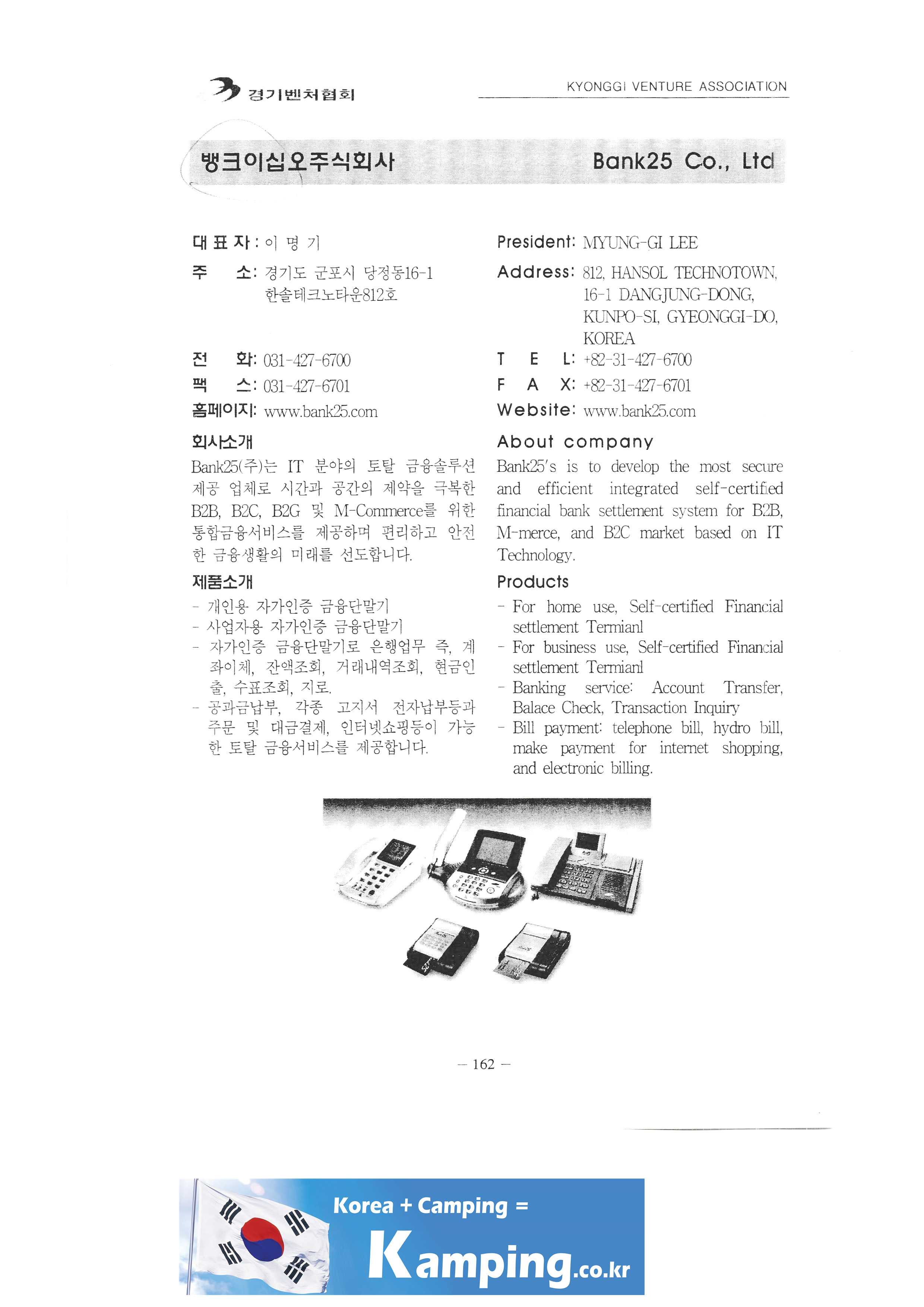 Bando Industry Co., Ltd. Bandiplex Co., Ltd. International Industrial Technology Research Institute, Inventor Bae Hye-jung Nurukdo Bank 25 Co., Ltd. Beomyang Unicold Co., Ltd. Best One Boris Battlefield Bowon Kyung Metal Co., Ltd. VC Korea Biryong Electronics Co., Ltd. B&P Science Vieche Solution Co., Ltd. Viol Developers Co., Ltd. Bitsaem Electronics Co., Ltd. Sound Tech Enterprise Co., Ltd. Samgun Berrycle Co., Ltd. Samkwang System Co., Ltd. Sammyung Tech Co., Ltd. Sambo Co., Ltd. Samsung Medical Equipment Co., Ltd. Samshin Machinery Samshin Machinery Co., Ltd. Samshin Innotek Co., Ltd. Samyoung Unitech Samyoung Synthetic Industry Sameun Industrial Company Samjin L&D Co., Ltd. Samwon Cobra Sangshin Co., Ltd. Sangshin Engineering Co., Ltd. Features Saeam Soft Co., Ltd. Saehan Co., Ltd. Sogang Decal Seokyung Brazing Seoul Jeonggi Seoul Pharmaceutical Co., Ltd. Seoul Chemical Seoil Chemical Co., Ltd. |