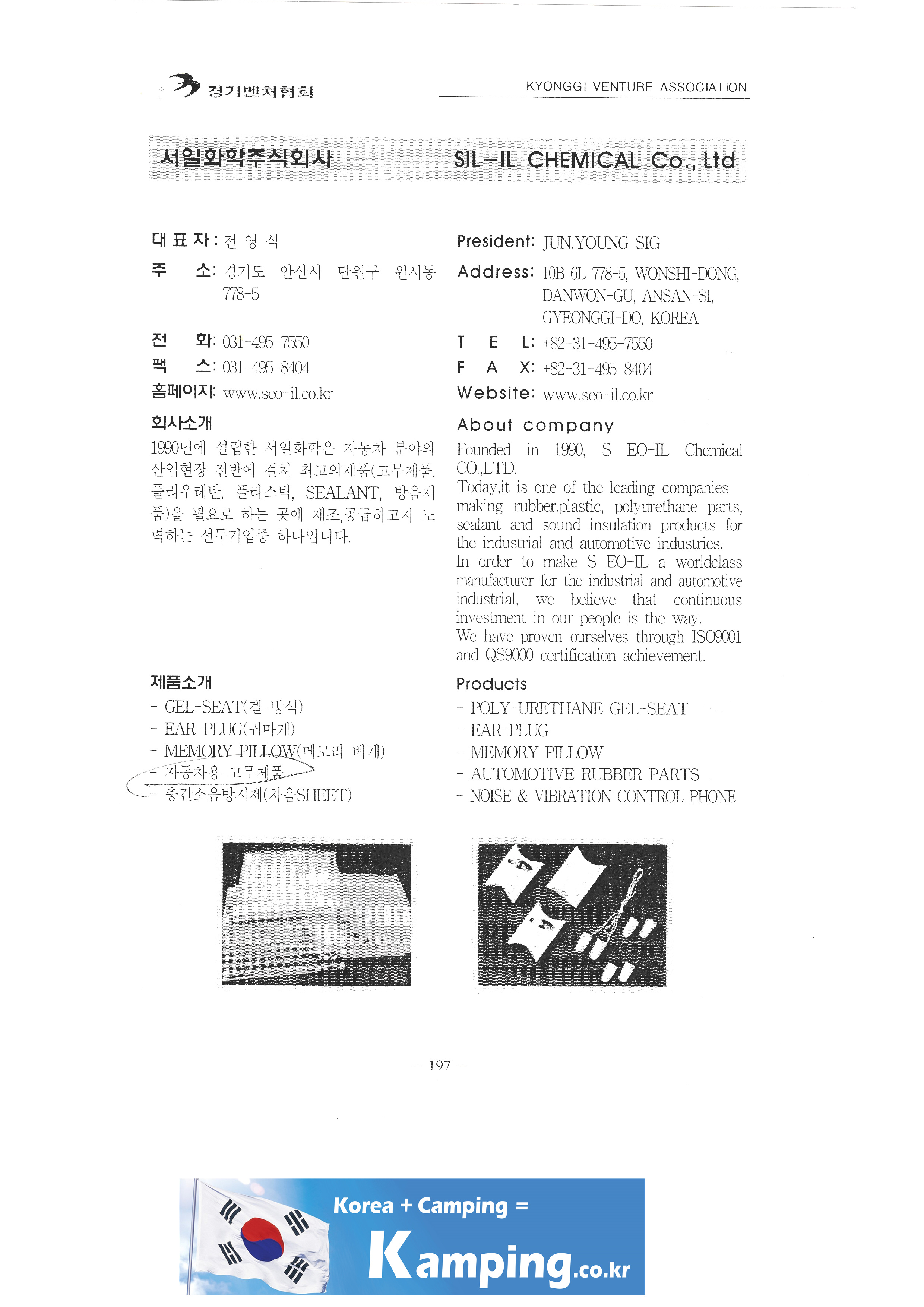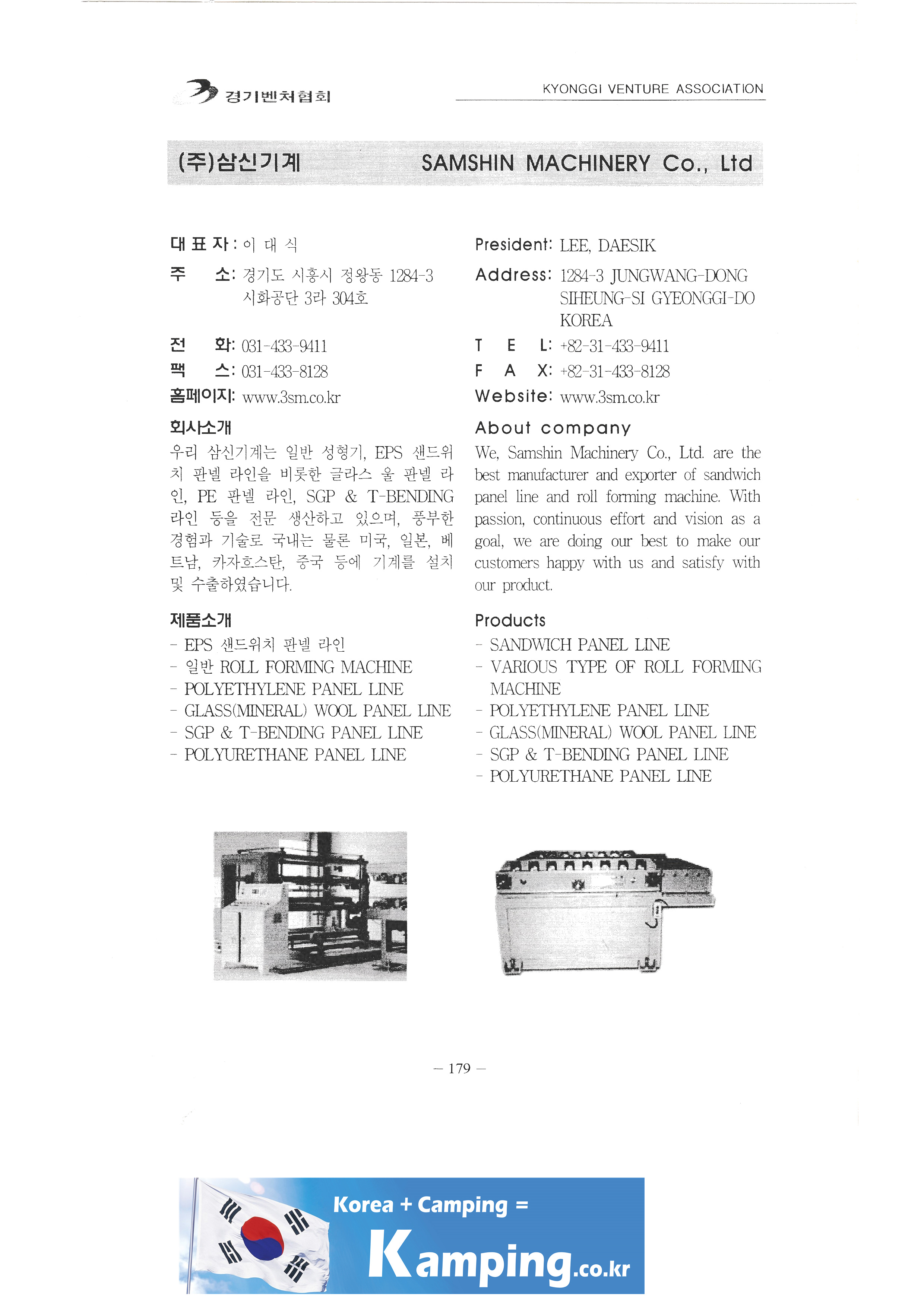 | 반도산업㈜ ㈜반디플렉스 국제산업기술연구소 ㈜발명가 배혜정 누룩도가 뱅크이십오주식회사 ㈜범양유니콜드 ㈜베스트원 보리스전장 보원경금속㈜ ㈜브이씨코리아 비룡전자 주식회사 비앤피 사이언스 비에체솔루션㈜ 주식회사 비올 디벨로퍼즈 빛샘전자주식회사 ㈜사운드테크엔터프라이즈 삼건베리클㈜ ㈜삼광시스템 주식회사 삼명테크 ㈜삼 보 ㈜삼성의료설비 ㈜삼신기계 ㈜삼신기전 삼신이노텍 주식회사 ㈜삼영유니텍 ㈜삼영합성공업 삼은산업사 주식회사 삼진 엘앤디 ㈜삼원 코브라 주식회사 상신 상신엔지니어링㈜ 상전특장 ㈜새암소프트 ㈜새한 서강데칼 서경 브레이징 ㈜서울정기 ㈜서울제약 서울화학 서일화학주식회사 |