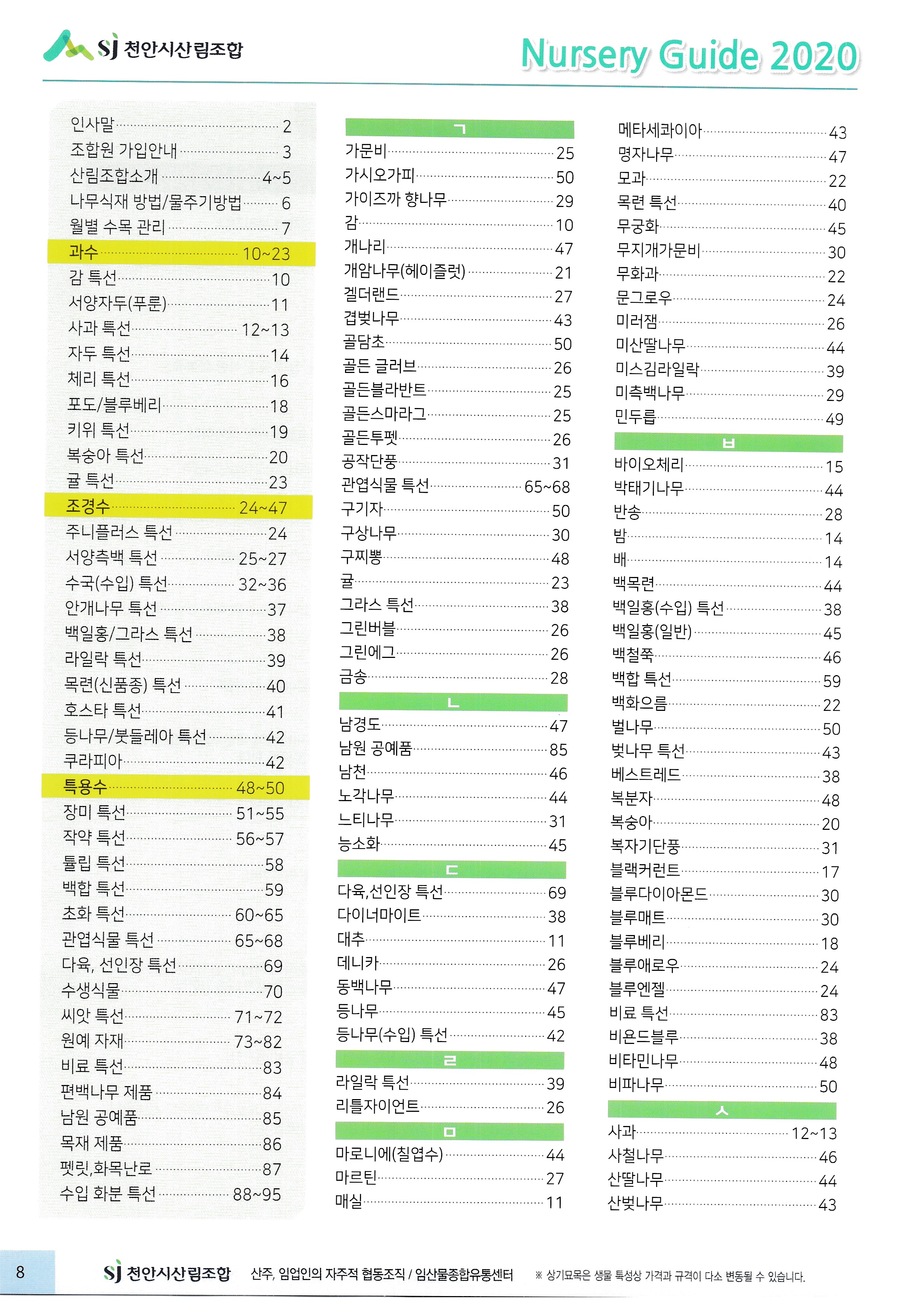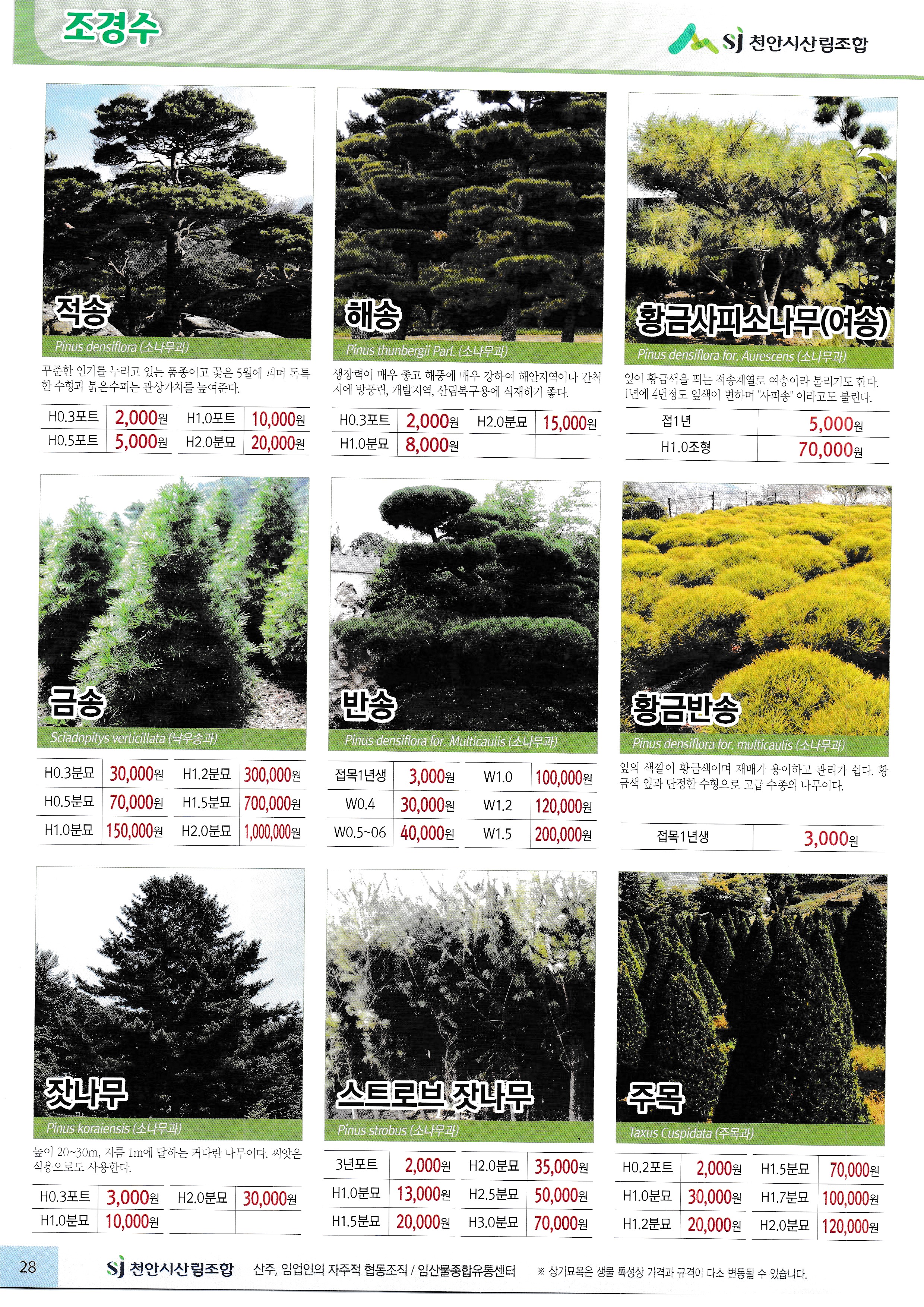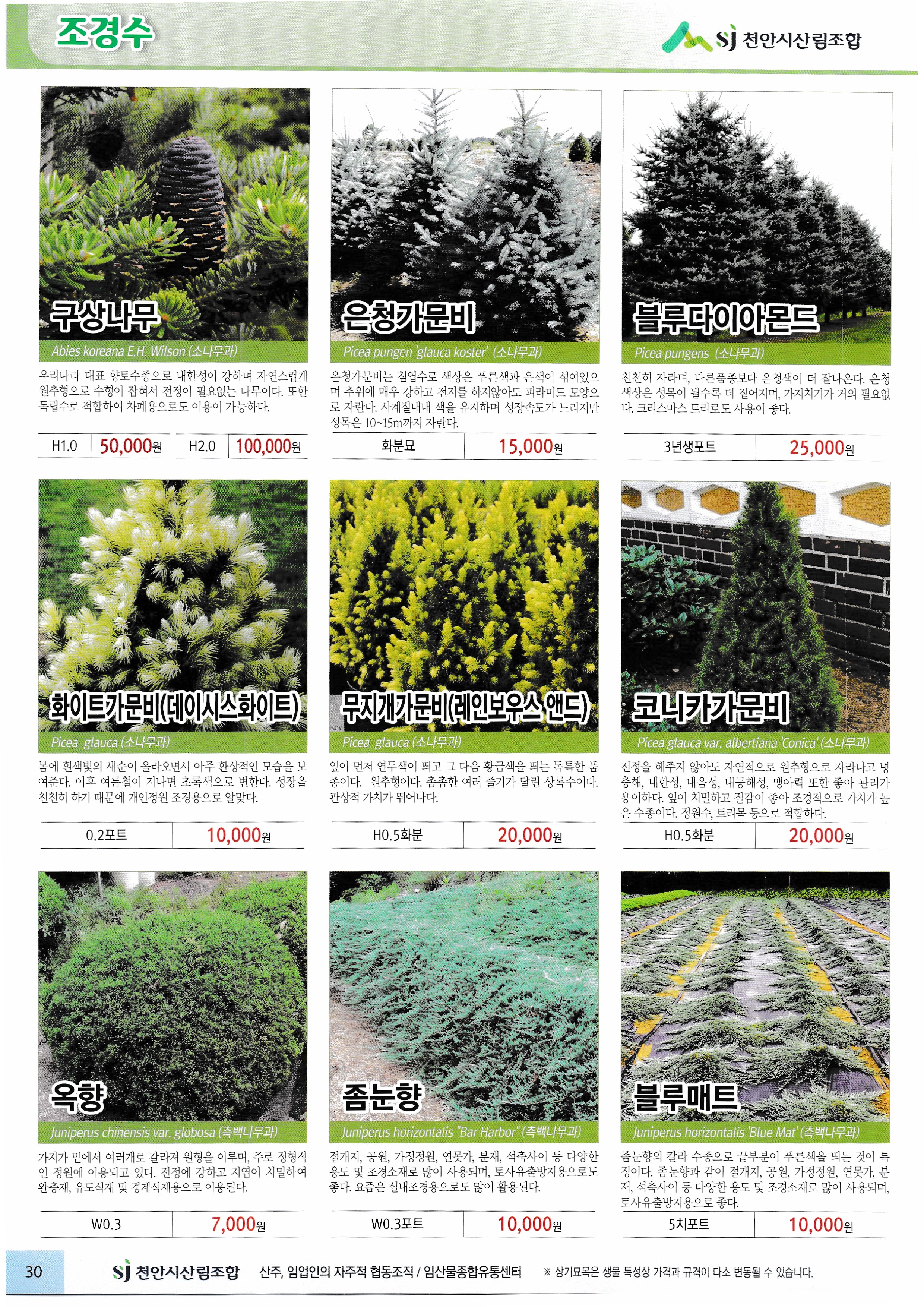 임산물, 임산 자재 가격표 : 과수, 조경수, 특용수, 조화, 야생화, 구근, 씨앗, 자재,
