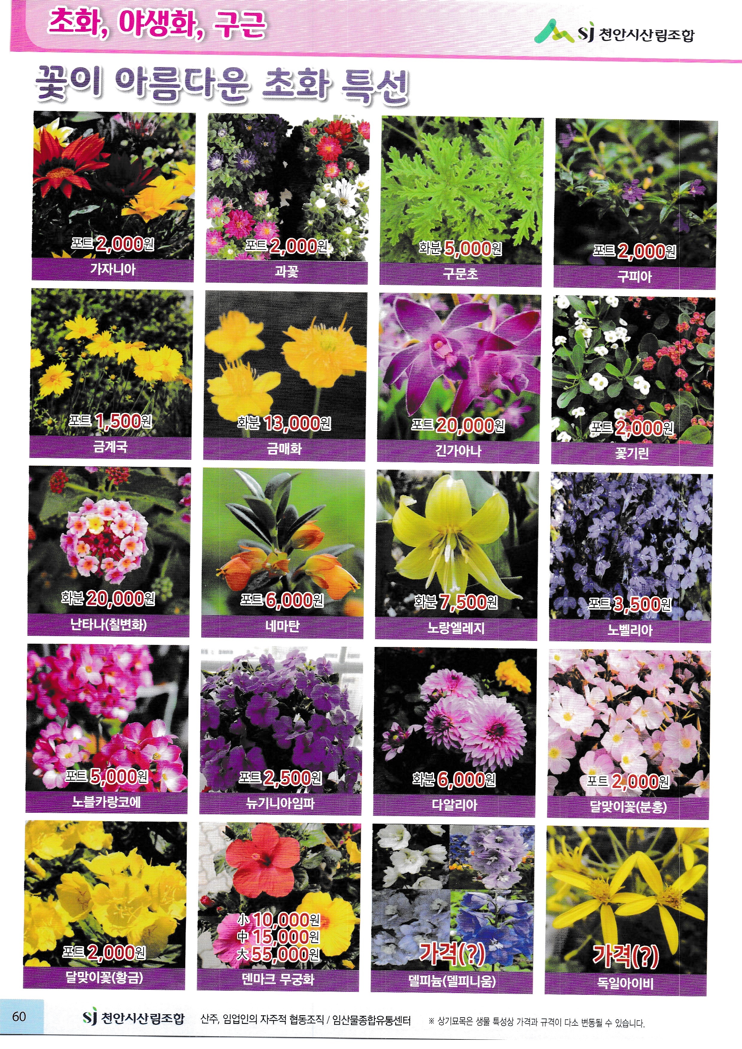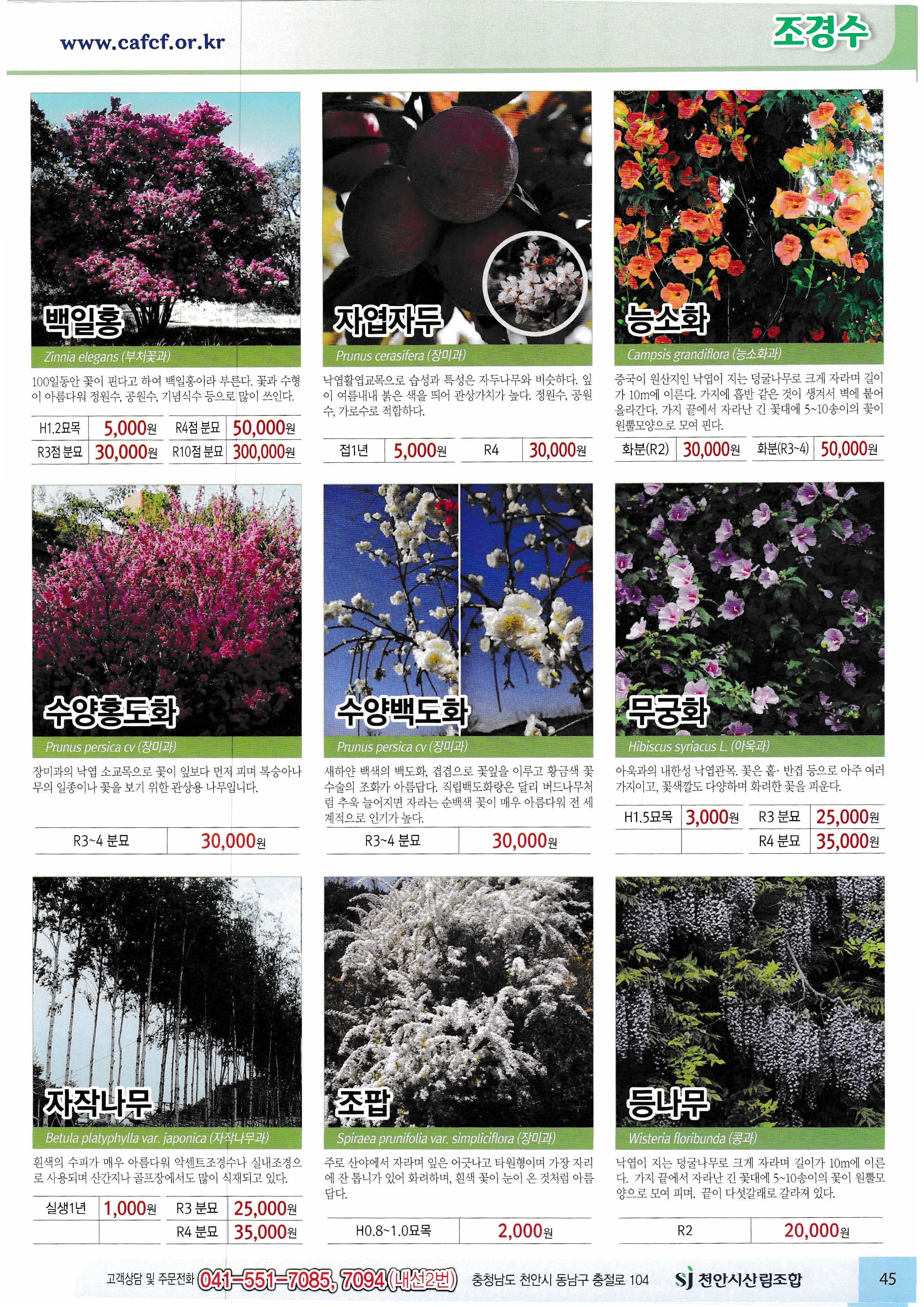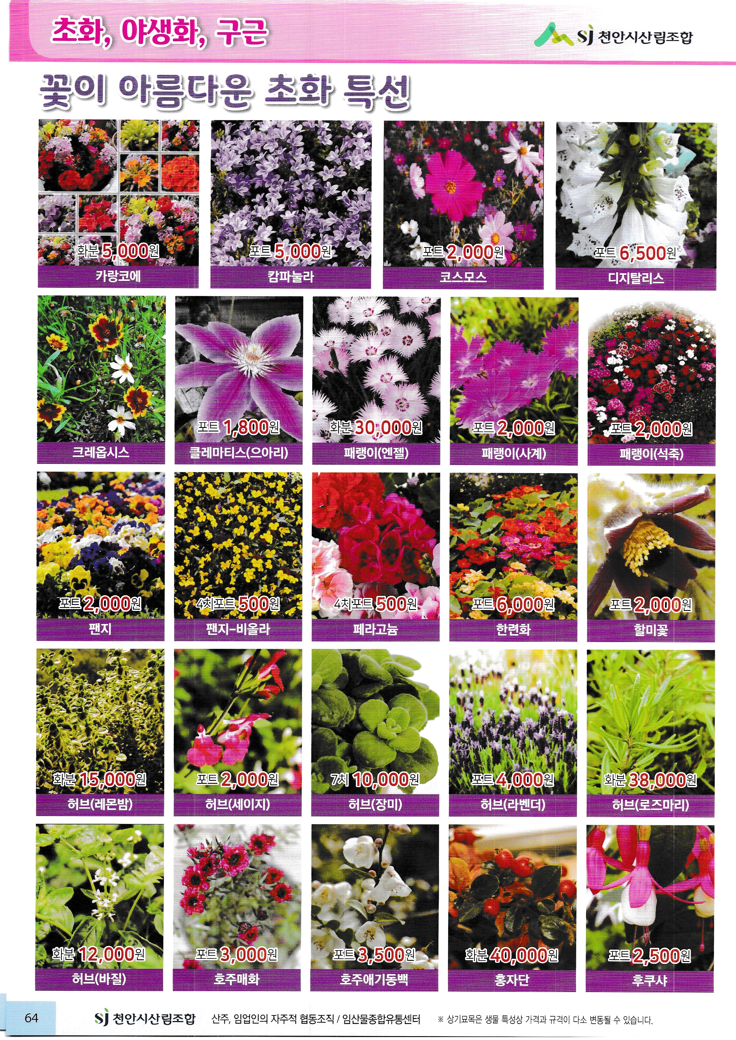 임산물, 임산 자재 가격표 : 과수, 조경수, 특용수, 조화, 야생화, 구근, 씨앗, 자재,