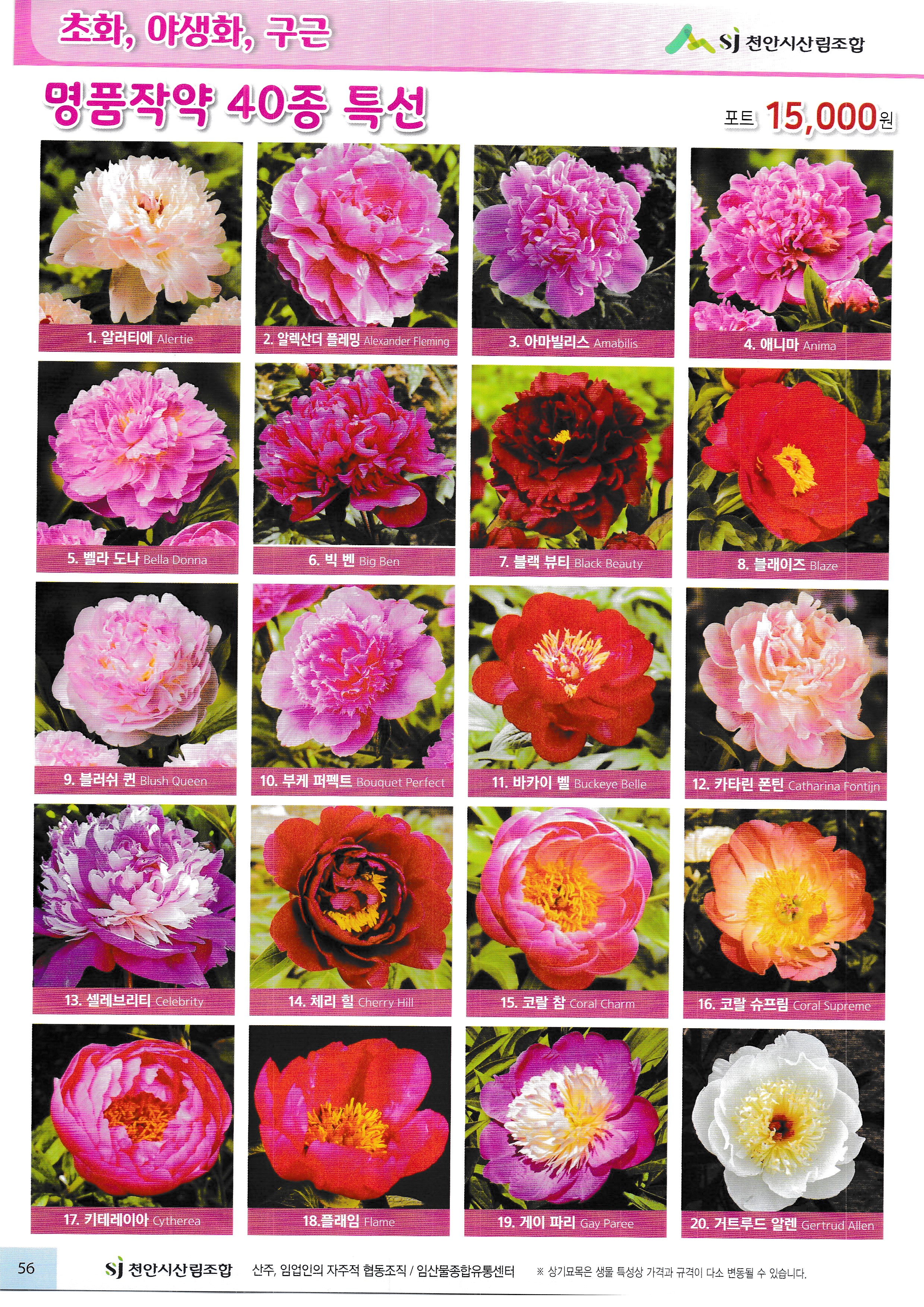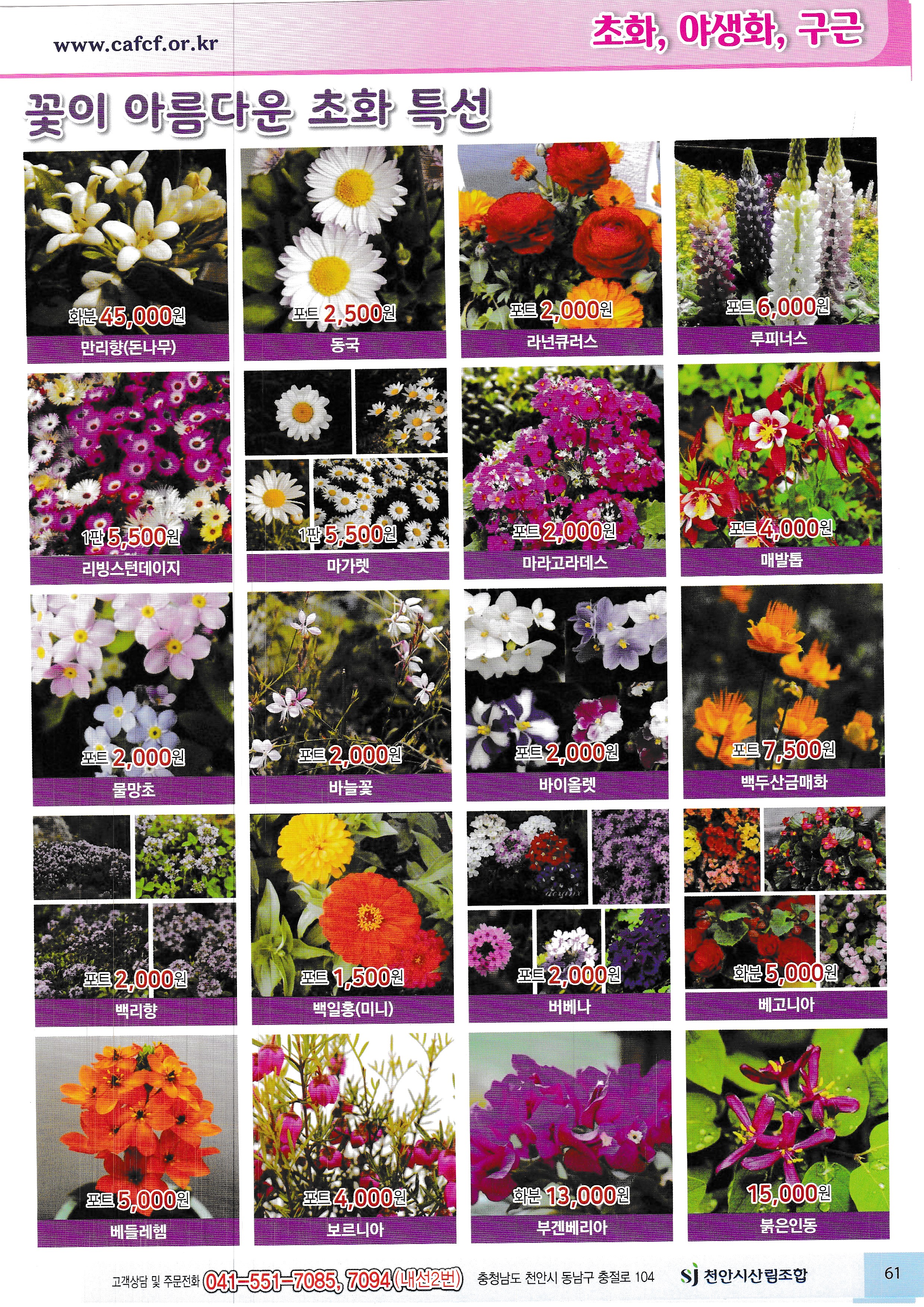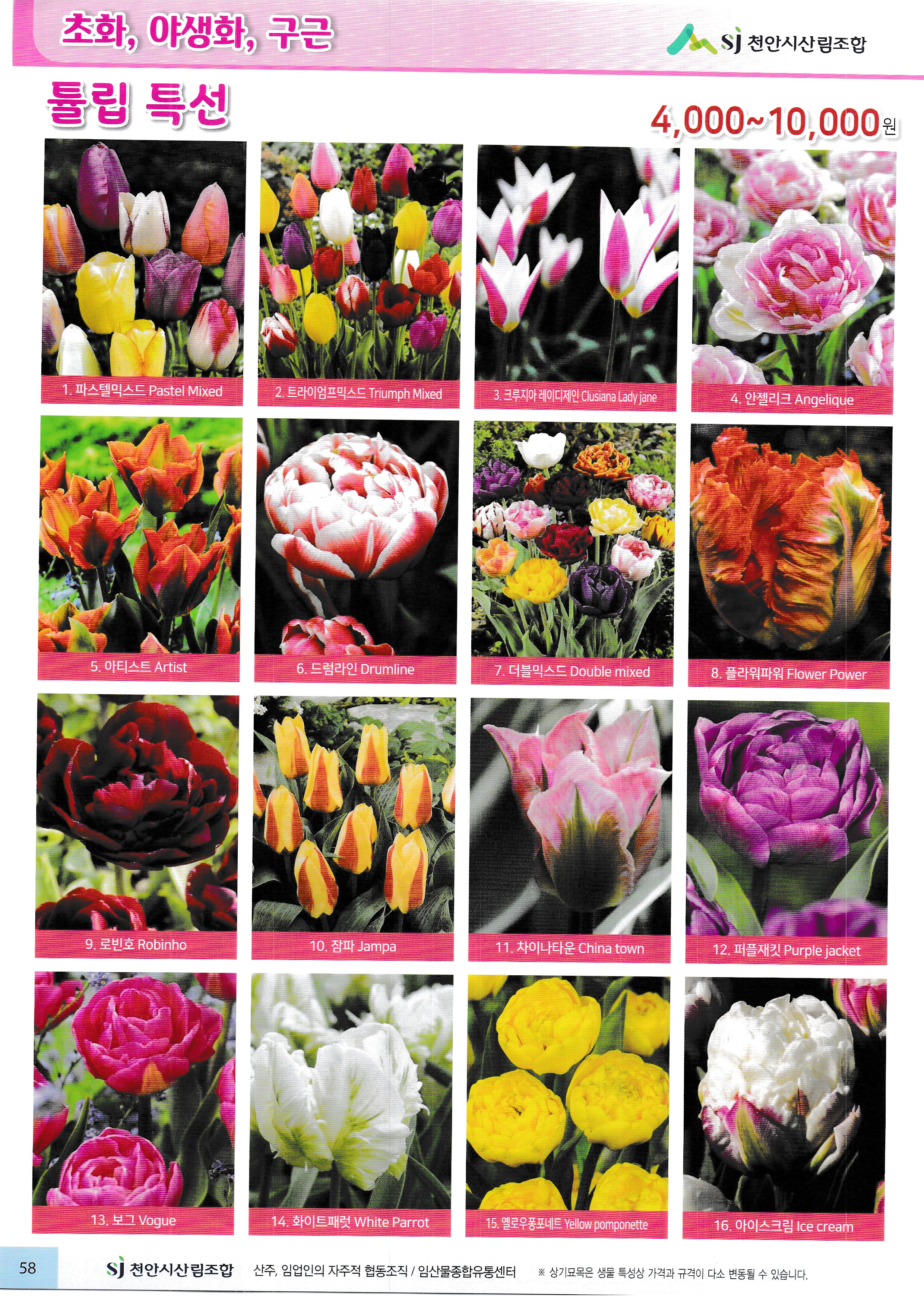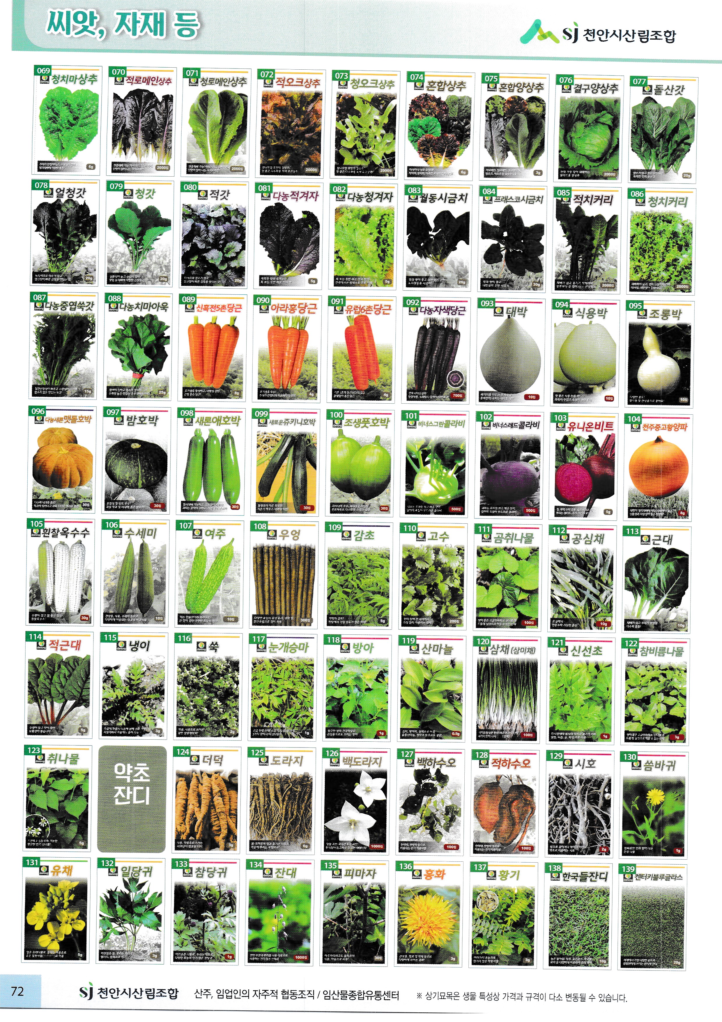 임산물, 임산 자재 가격표 : 과수, 조경수, 특용수, 조화, 야생화, 구근, 씨앗, 자재,