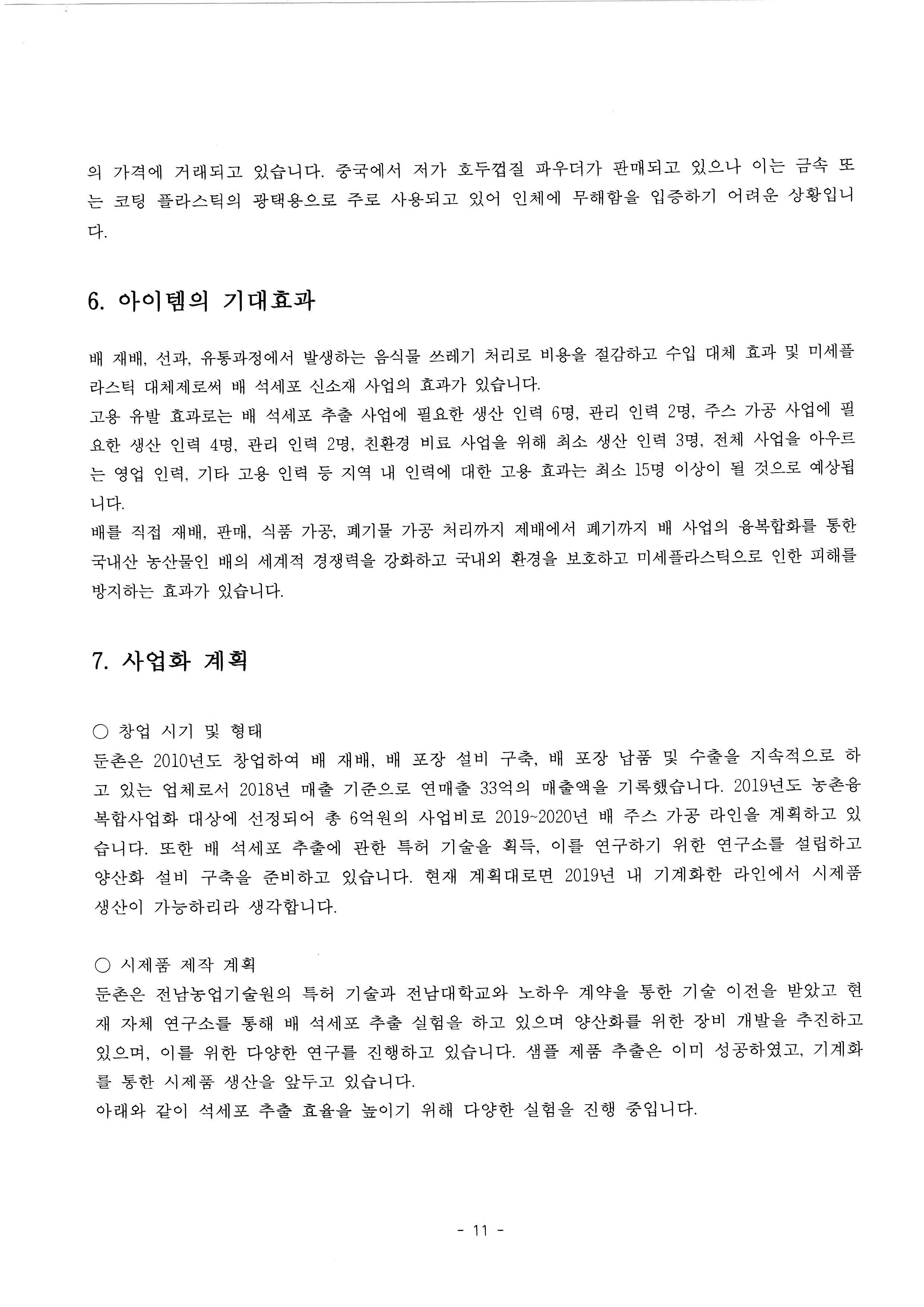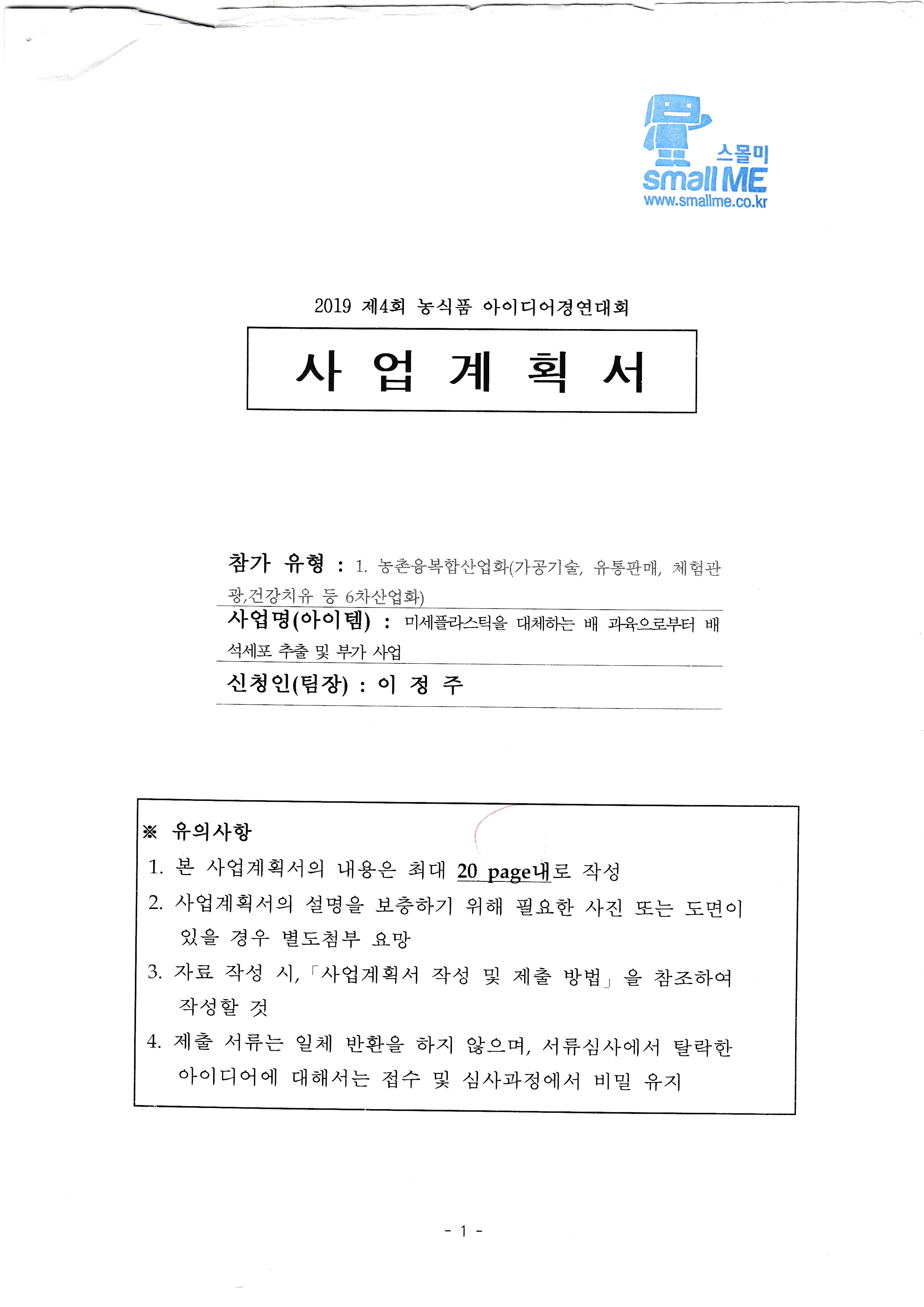 농식품 아이디어 경연대회 사업계획서 : 배석세포