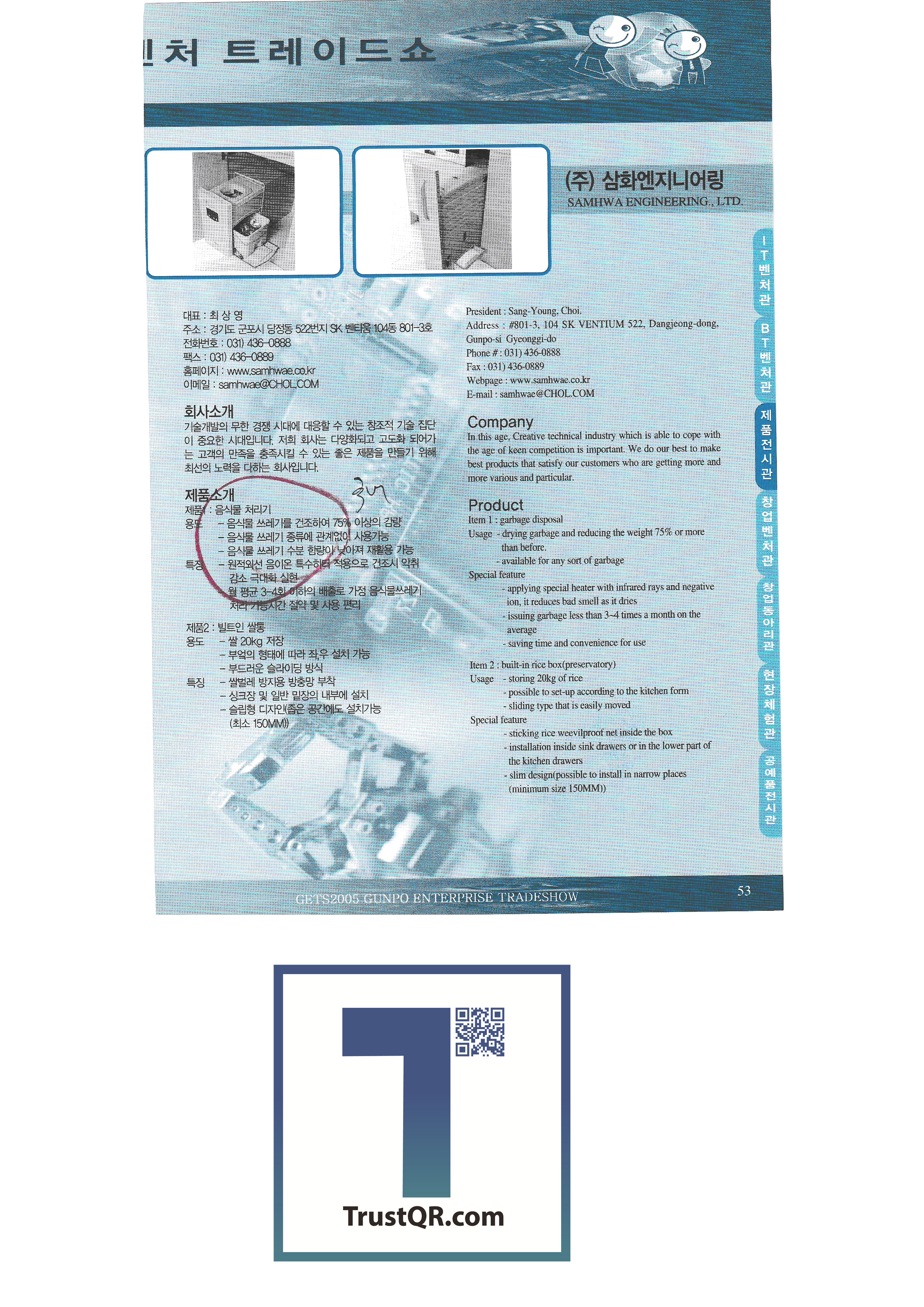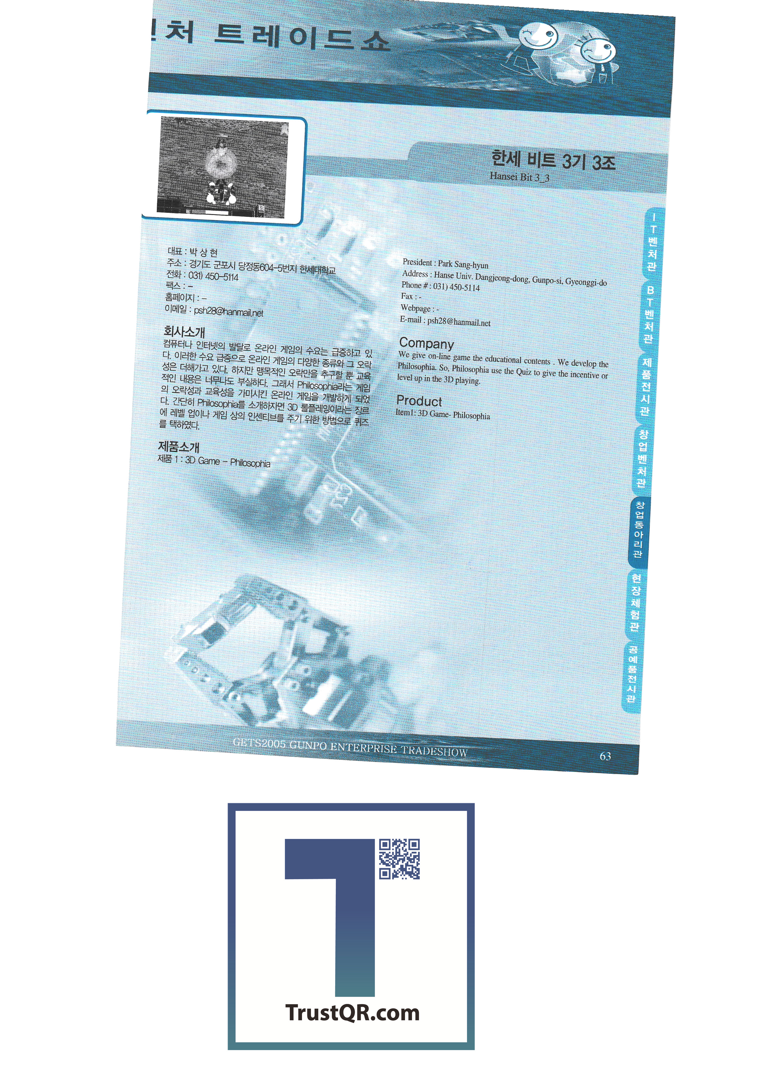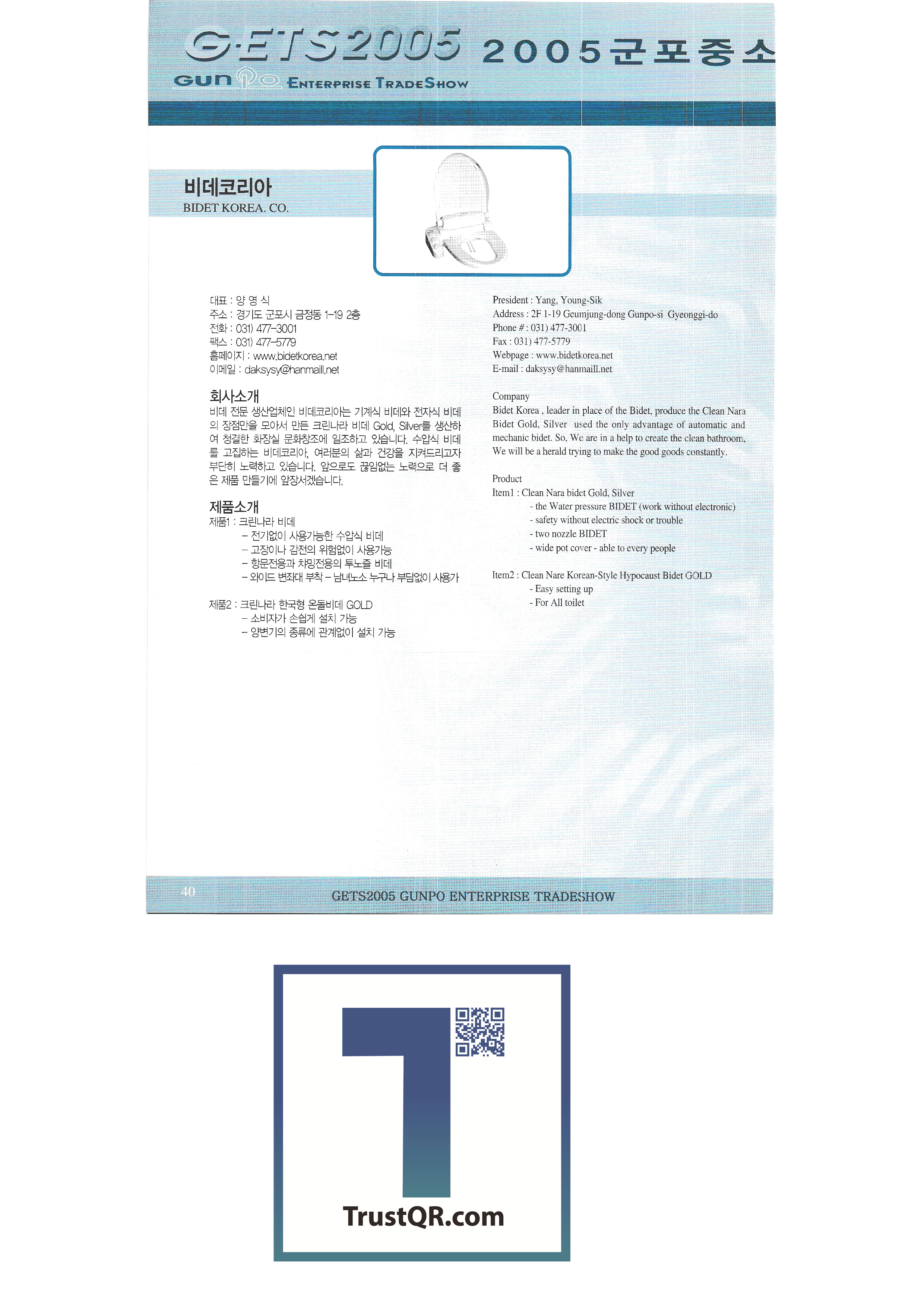 Bidet Korea SL Tech Co., Ltd. JTV Electronics Co., Ltd. Micromark Daeyong Chemical Yessung Instruments Daeyang ENC Cho Eun-I Antique Korea Daeheung Seoul Meat Processing Co., Ltd. Gongjin Co., Ltd. Vision Light Samhwa Engineering Co., Ltd. Good Feel Korea Daudi Corporation On the Sky Wooriwin Mecatec ML Easy Tech Inflation Hansebit 3G1 Hanjo Hansebit 3rd Group 3rd Hansebit 3rd Group 2nd J-Star Co., Ltd. Vacuum material Kukil Craftsman Traditional embroidery |