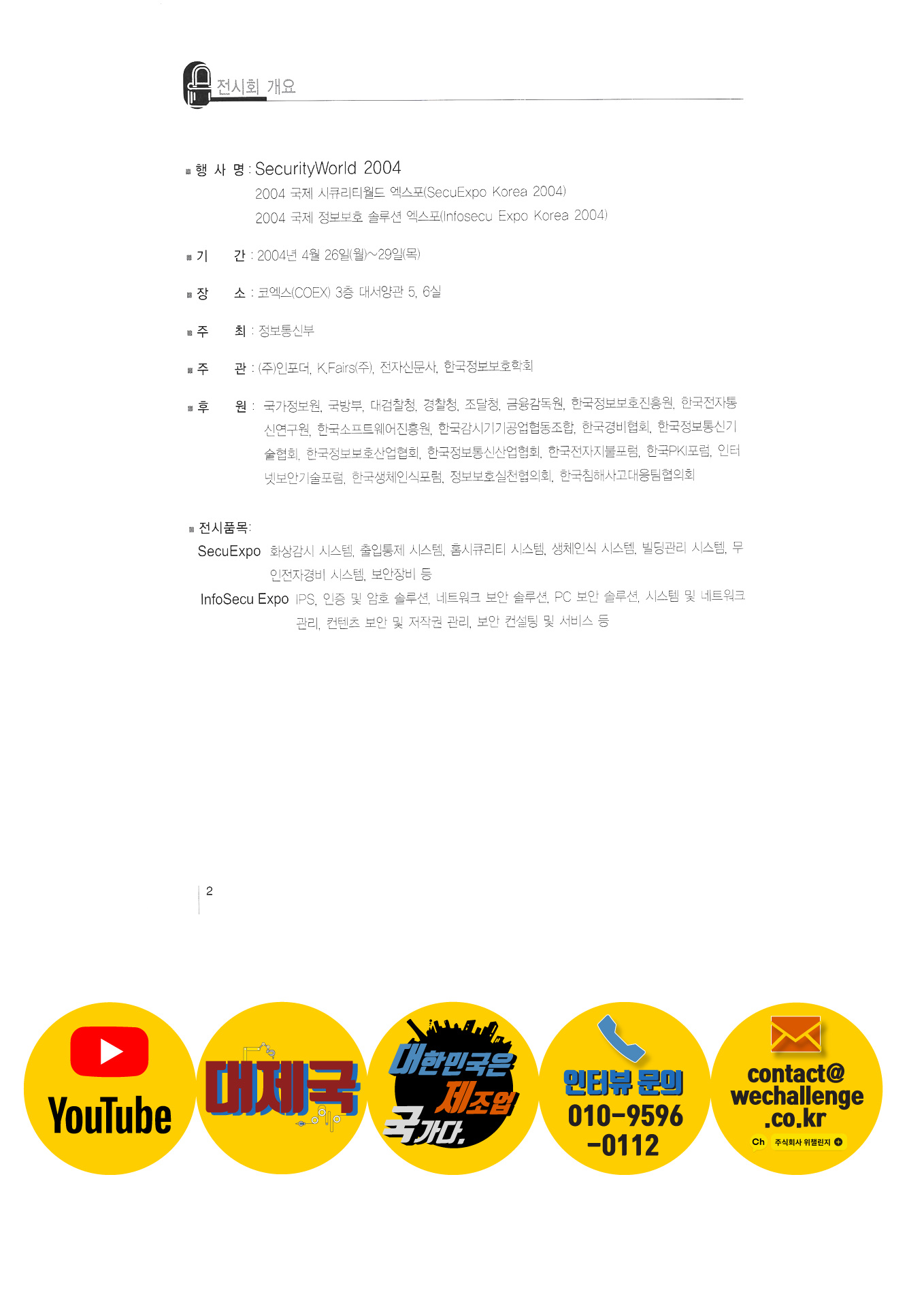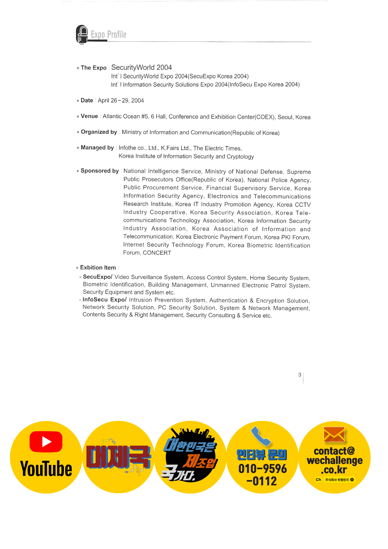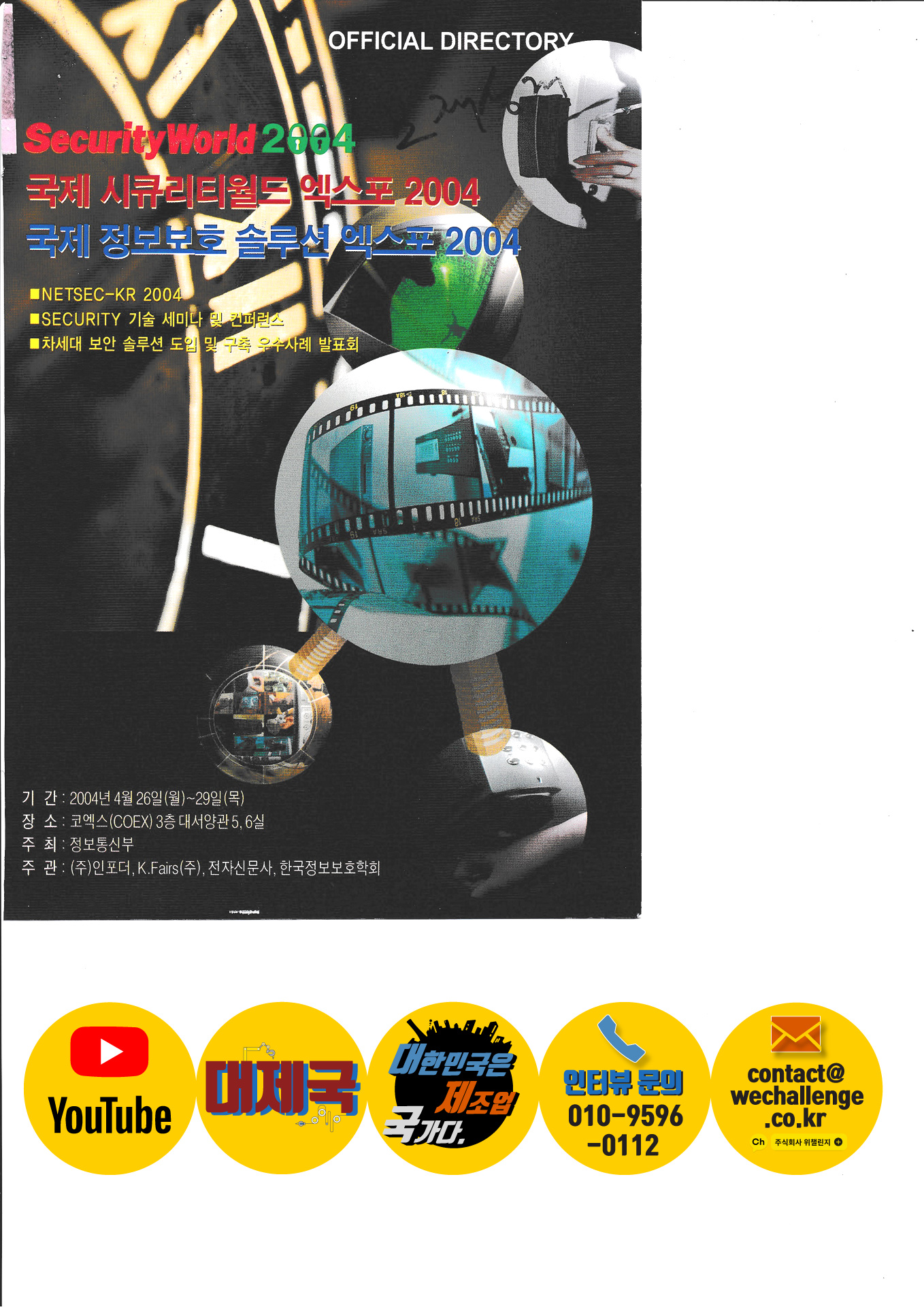 | Security World 2004 국제 시큐리티월드 엑스포/국제 정보보호 솔루션 엑스포 - 3 (0) | 2021.01.15 |