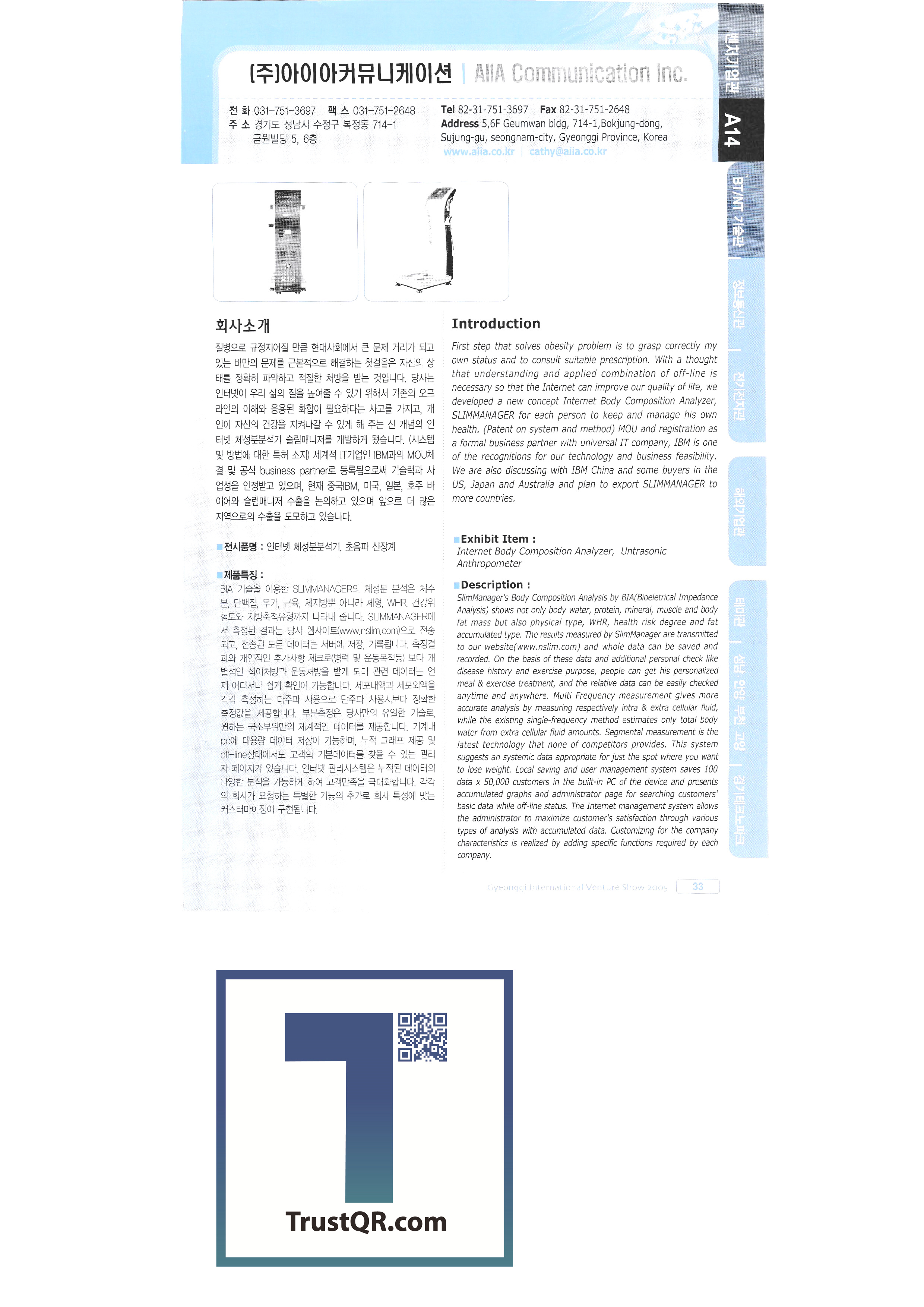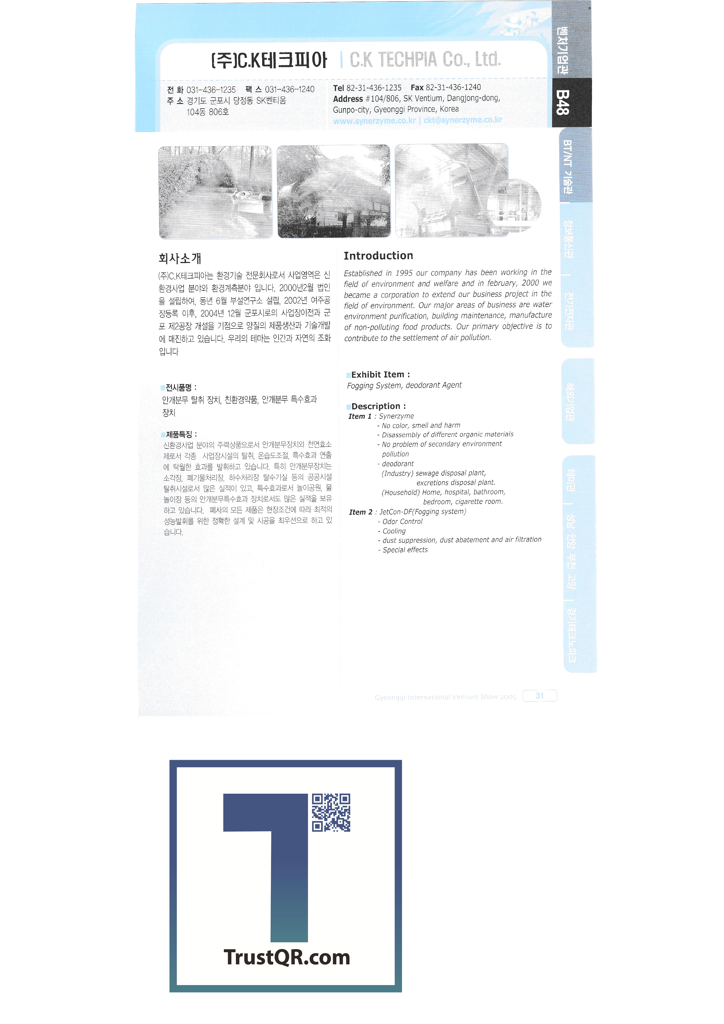 | ห้องรากโสมเกาหลี Kukje Special Paper Co. , Ltd. บจก. กิก้าแลนด์ บจก. นาโนออพติค ดีโอเทค เมอร์ชวิลล์ โมนิกาอินเตอร์เนชั่นแนล ซีลีเนียมรำข้าว Miraero System Co. , Ltd. Microcosm Dot ลูกปัด บจก. สีทรัพย์เอ็นจิเนียริ่ง ชินฮวาฟาร์มาซูติคอล บจก. ซีบีเอ็นไบโอเทค C.K Techpia IMedicom การสื่อสาร IA SA บจก. SOE บจก. เอชดีอาร์ บจก. อีโคไบโอเทค บจก. เอ็น. ซี. โพลีเทค เอ็นทีแอนด์บี Oreum Industry Co. , Ltd. โอ๊คสโตนบจก. Woosam Medical Co. , Ltd. Woongbi Trade Co. , Ltd. ยูจีนเอสแอนด์ที ยูจีน MC |