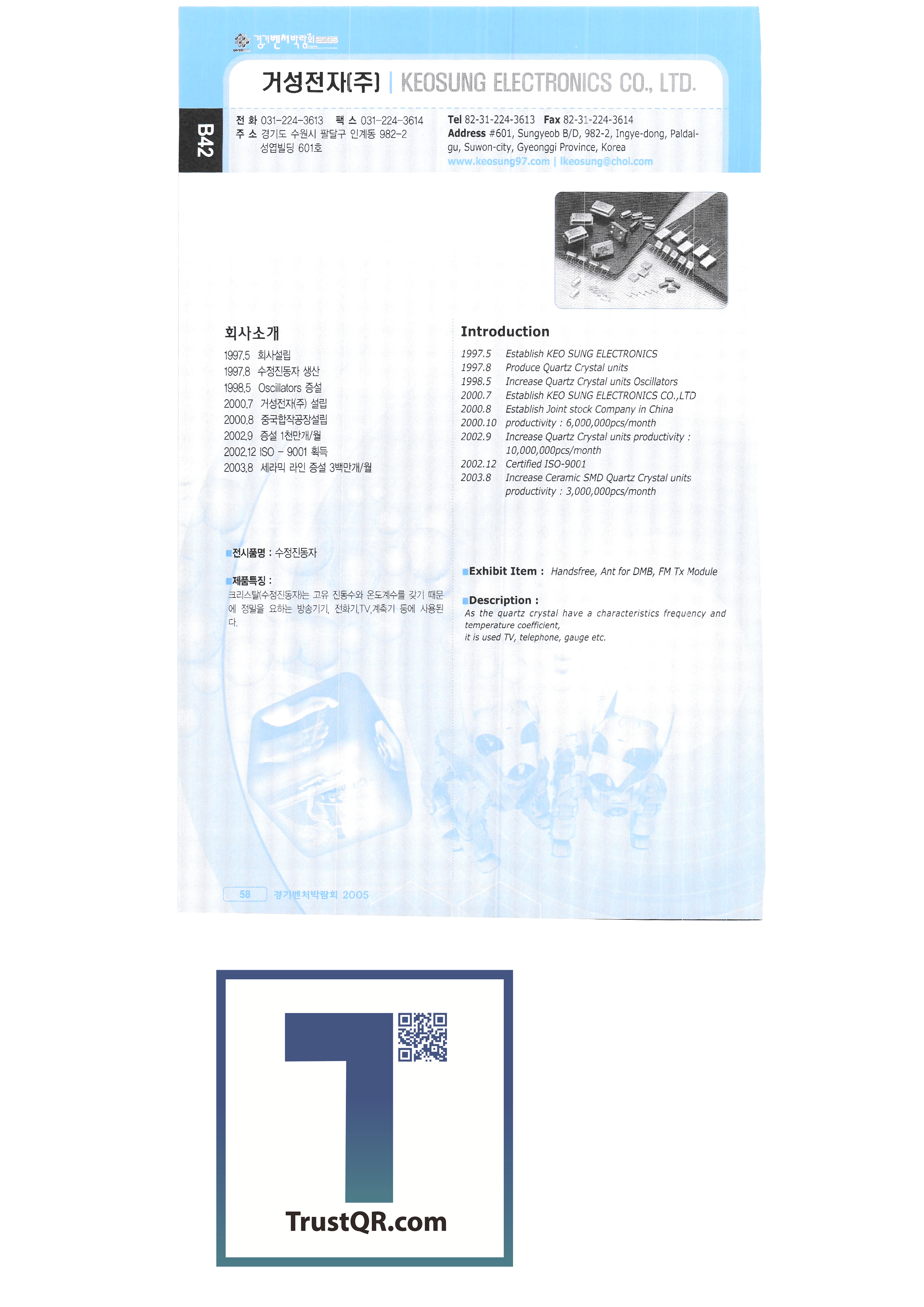 | บจก. เอ็นโซ่ บจก. อินตรอนไบโอเทคโนโลยี Ilyang Hwaseong Co. , Ltd. บจก. เจเอสแฟชั่น บจก. เจทีแอล ช่อง DM Cheoram Enterprise เคแอนด์ซี บจก. ฮาน่าไบโอเทค เฮอร์บินัสบจก. Geosung Electronics กรีนซอฟท์ บจก. นาวี Needtech Co. , Ltd. ดาร์วินโซลูชั่น บริษัท แดยางไฮเทค จำกัด Dowoo Tech Co. , Ltd. ดูอัล - ไอ EMC แบบดิจิทัล บริษัท เรเดียนเทค จำกัด Memsware All Mode Plaza บริษัท เมียร์เทคโนโลยี จำกัด โบเรย์แอนด์ซี การสื่อสารสะพาน เซฮวาพีแอนด์ซี Selgino Telecom SOI Electronics บจก. ซินดังโอเปีย ชิลลาเกาหลี บริษัท ซันนี่เทคเทรดดิ้ง จำกัด 3EP บจก. บจก. ไอ. ซี. เอ็ม. มันไป RF ภายใน การสื่อสาร ATS N คอมพิวเตอร์ แอลซีคอร์ปอเรชั่น |