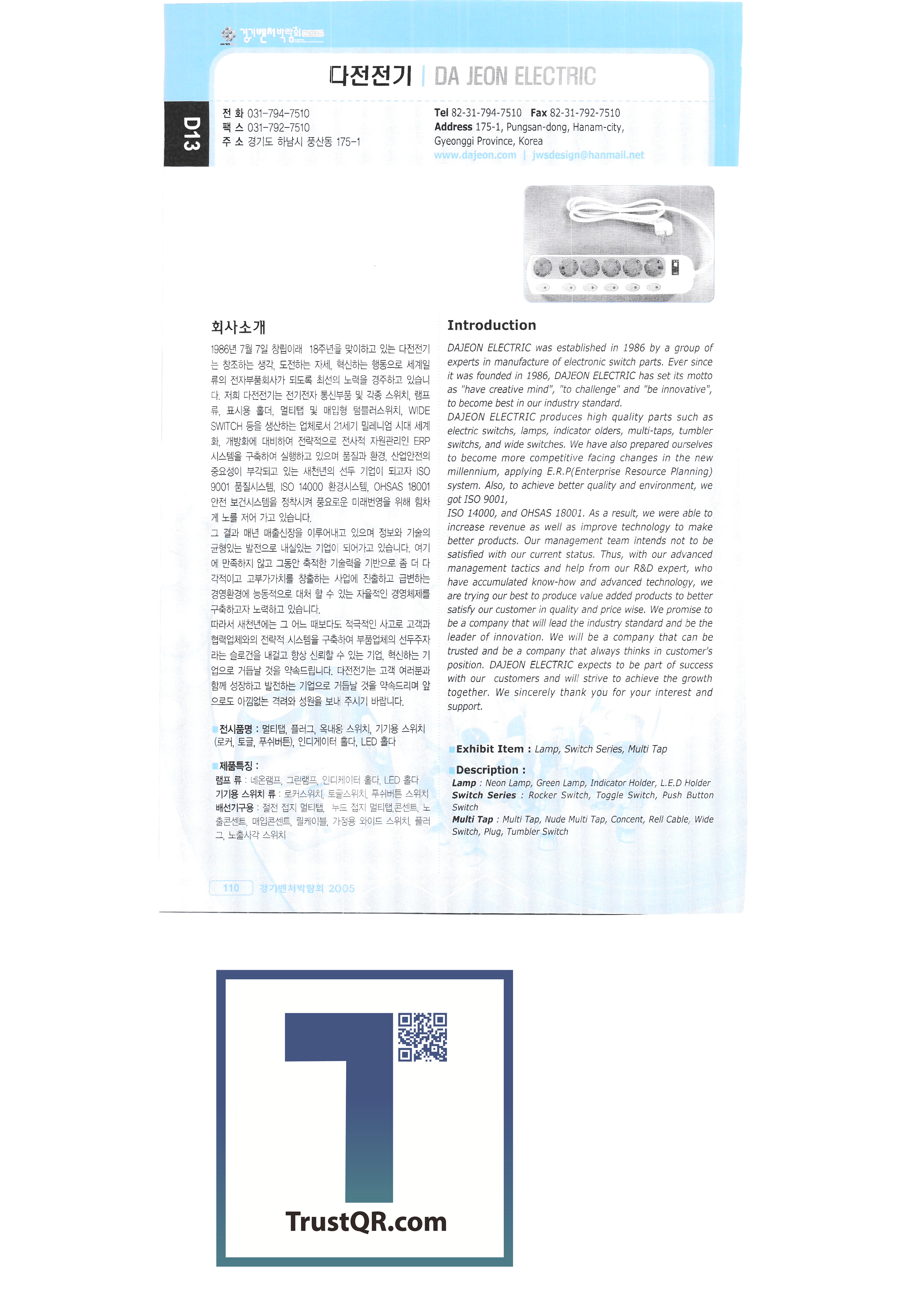 MI Semiconductor Co., Ltd. M2 Fiber Co., Ltd. Wow Tech Co., Ltd. Wontech Inno Telecom Ire Co., Ltd. Lee Chae Geo Cube Co., Ltd. Jinyoung Major Chamvision Co., Ltd. K-Tech K-Protech Codytech Kimtel Telecom Link Co., Ltd. Telon Twix Co., Ltd. Passwatch Inc. Penji Co., Ltd. Forbes PLM Co., Ltd. Geumgang Elevator Co., Ltd. Evergreen Industry Dajeon Electric Doori Gyejeon Co., Ltd. Digital Teletech Loop System Co., Ltd. Meat Co., Ltd. maximum Maxian Inc. Moksan Electronics Co., Ltd. Vesco Inc. Youil Tech Vision Semicon SamS Co., Ltd. Sangun Traco Seoul Electric Machinery Co., Ltd. Sein Electronics Co., Ltd. Sejin Tech Co., Ltd. |