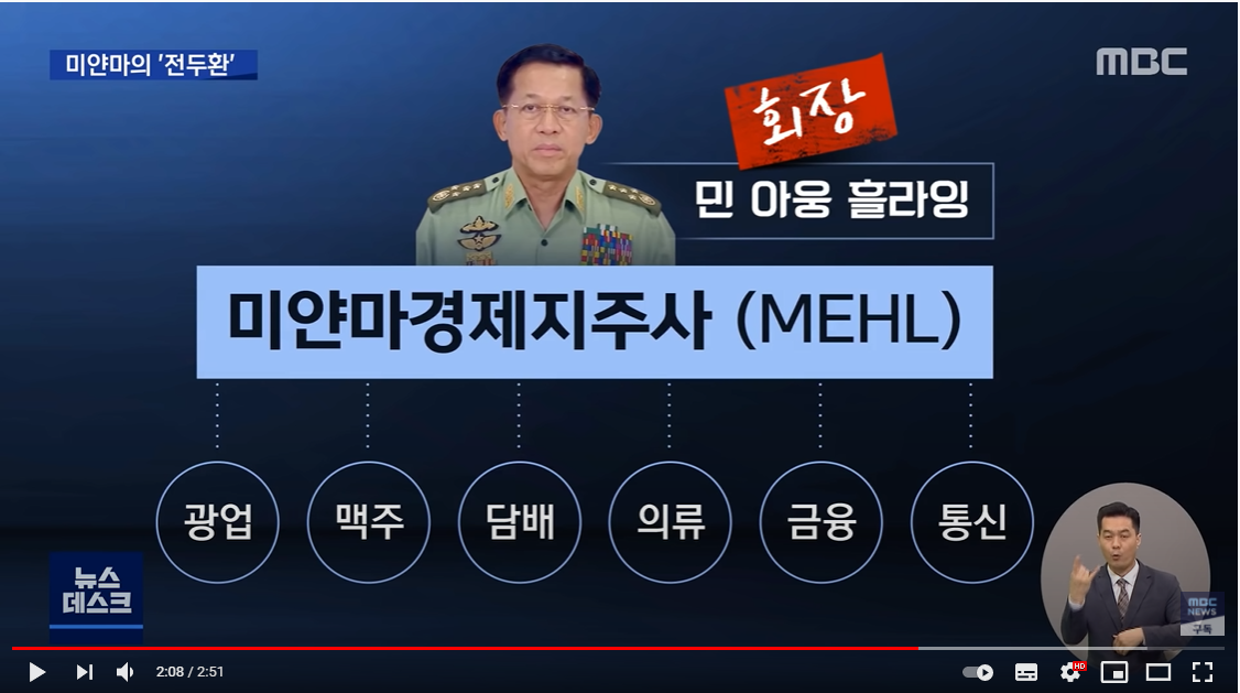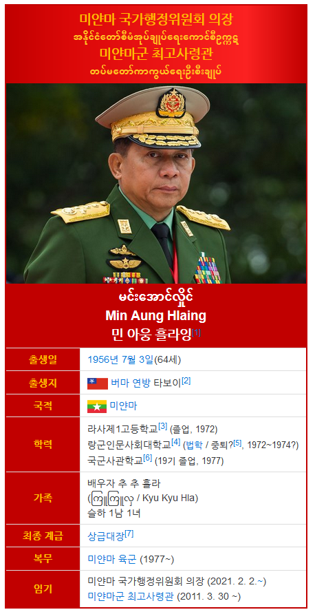 민 아웅 흘라잉 회장 = 현 군부 총사령관 = 미얀마 쿠테타의 주범