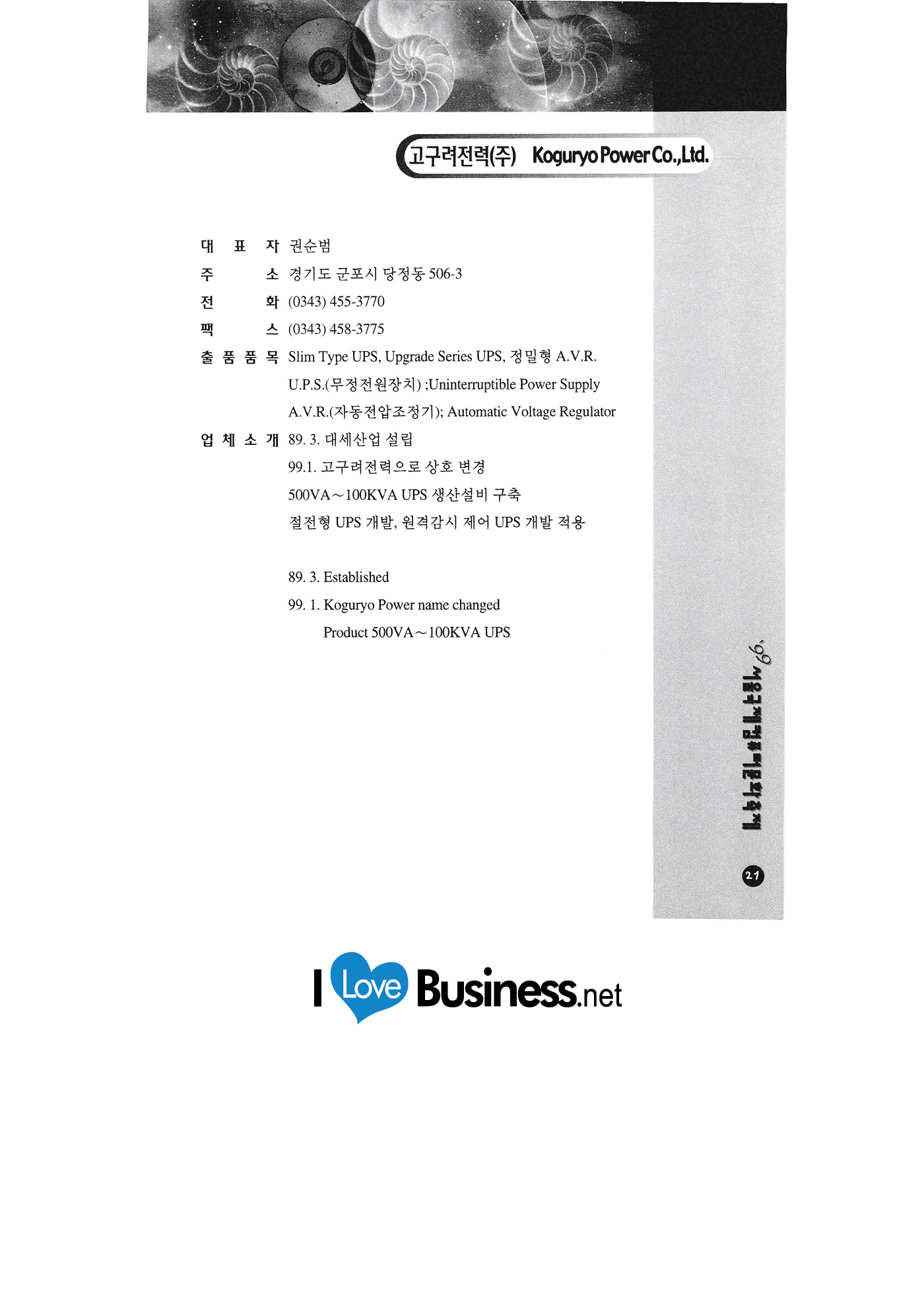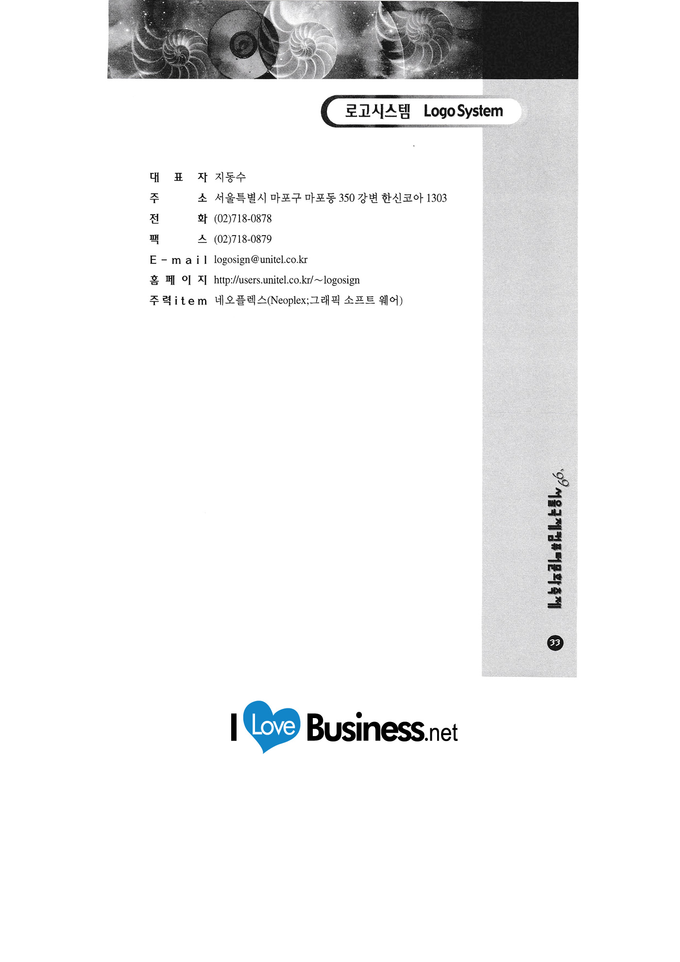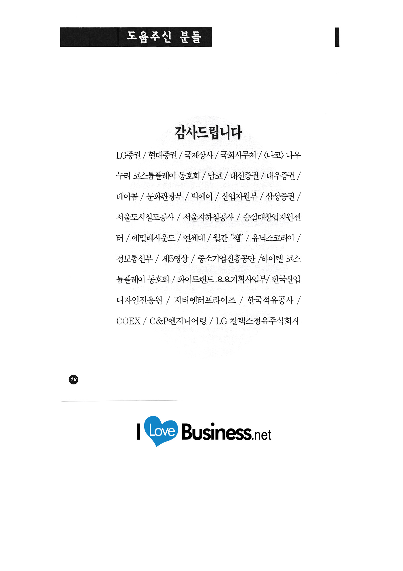 | 경북대학교 고구려전력 국회사무처 그린컴퓨터아트스쿨 나눔기술 나이스코퍼레이션 NEED정보뱅크 대신증권 대아산업정보 대우증권 두리텔레토피아 드림씨엔씨 디지털라이프 로고시스템 메스텍 미디어마트 |