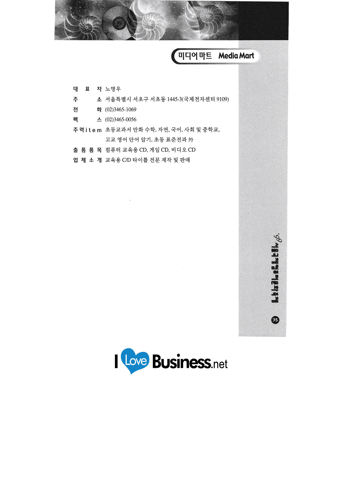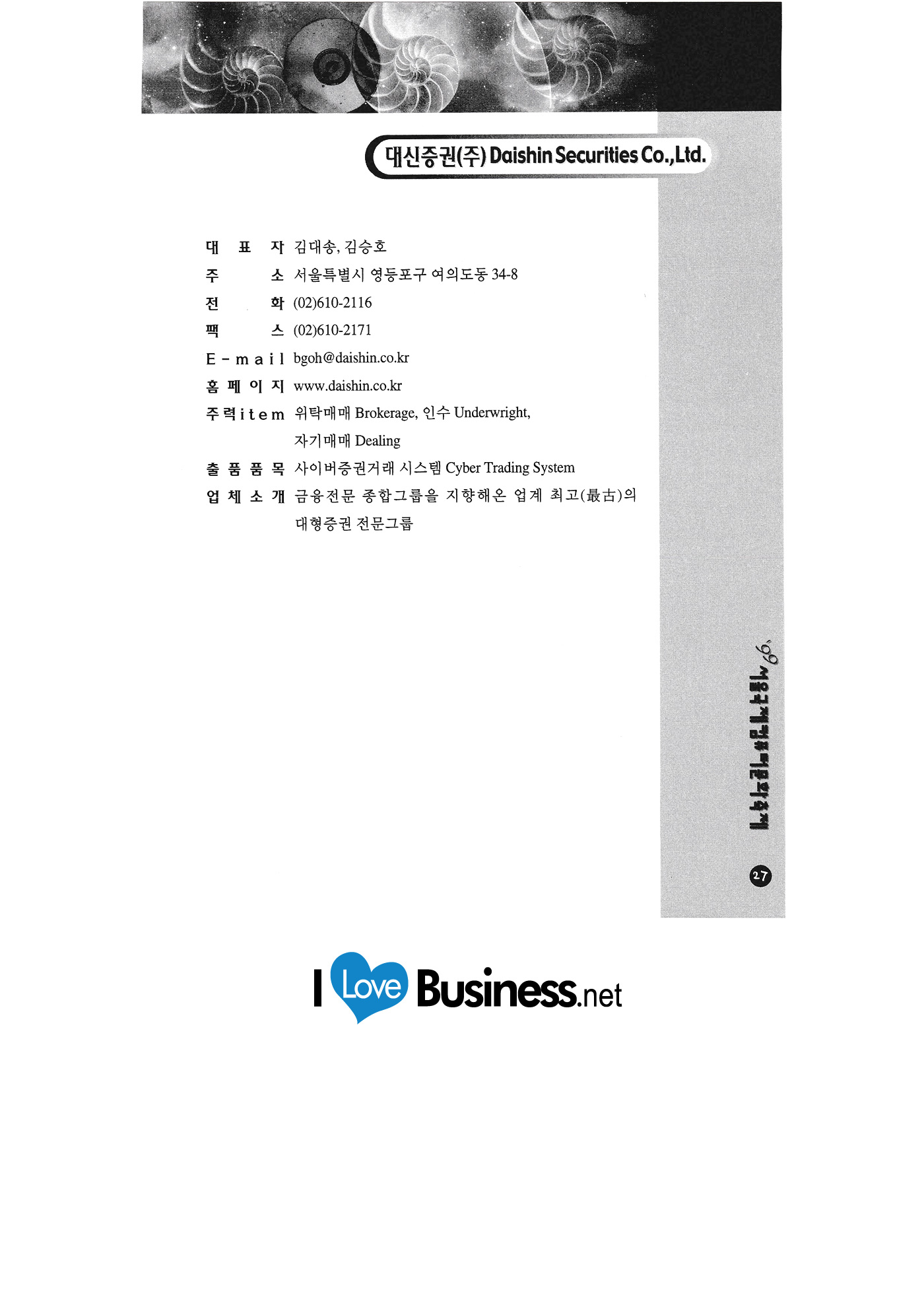 Kyungpook National University Goguryeo Electric Power Government office Green Computer Art School Sharing technology Nice Corporation NEED Information Bank Daishin Securities Daea Industry Information Daewoo Securities Dooriteletopia Dream C&C Digital Life Logo system Mestech Media Mart |
