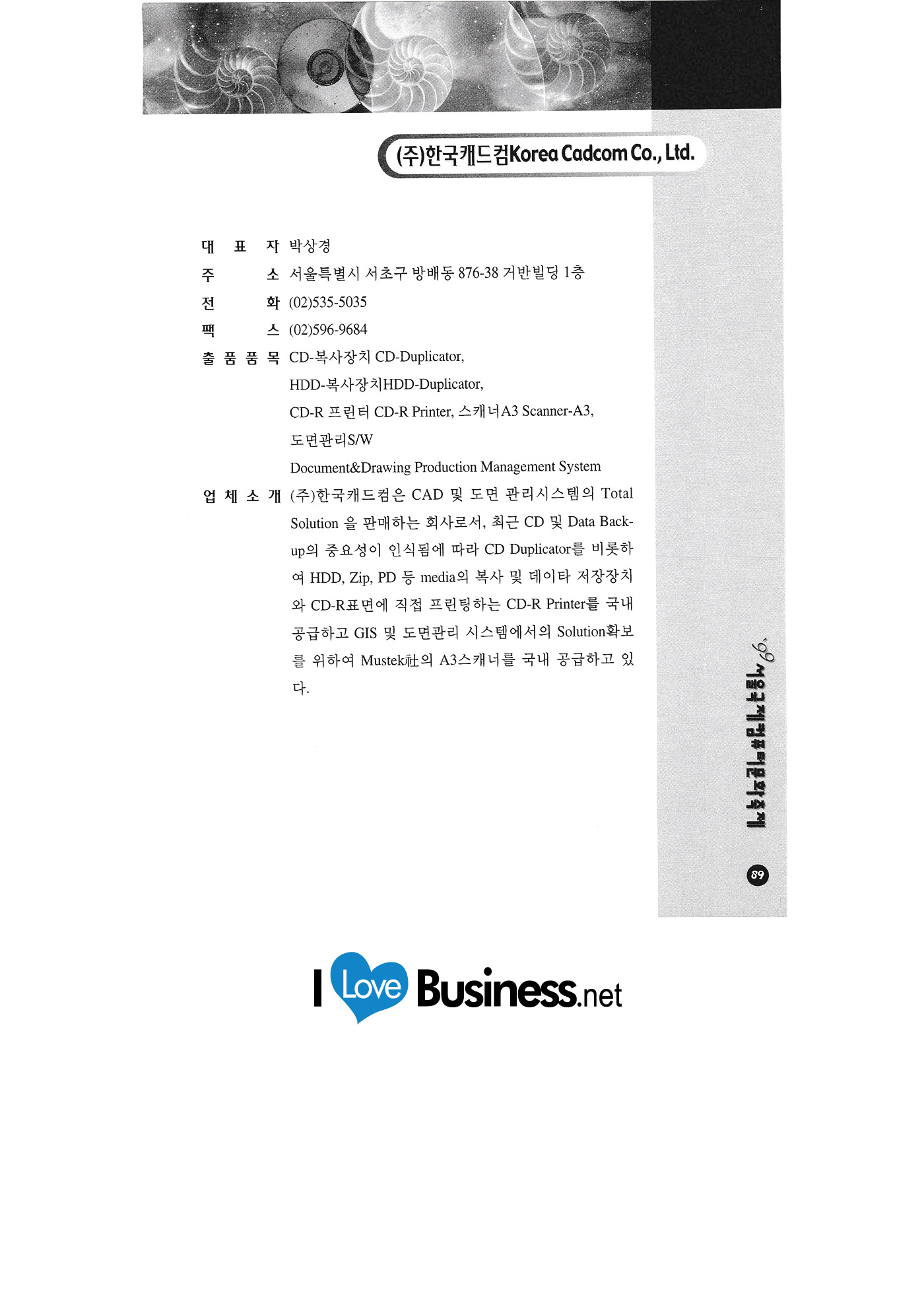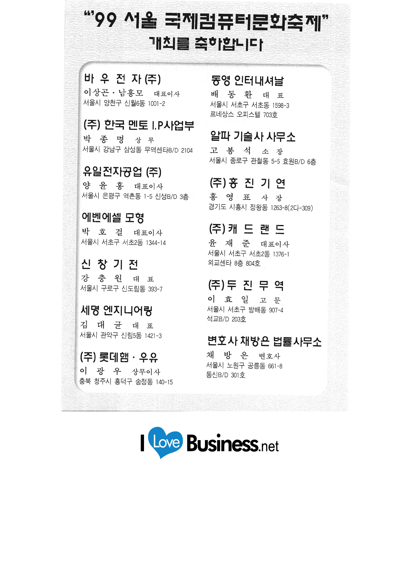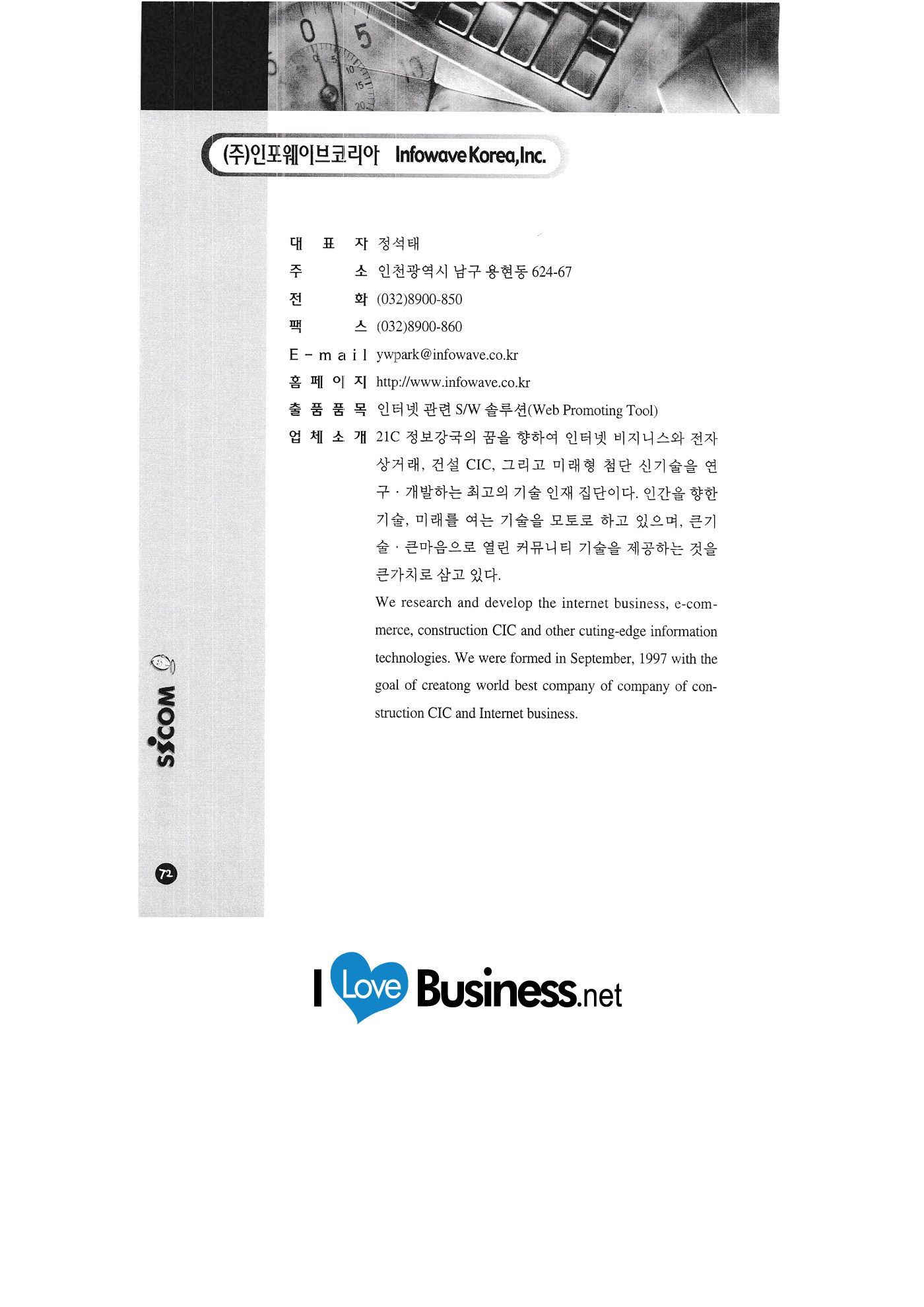 Internet auction Infowave Korea Chaoyang Information & Communication JoongAng Electronics & Publishing GT Enterprise Jinsung Solution Advanced Engineering Software Research Center Chunggang University of Culture and Industry Billing computer system Chungcheong University Character Bank Character Korea Cleantech Philos Hana Trade Korea Industrial Design Promotion Agency Korea National Oil Corporation Korea Isotech Hanmaeum Cadcom Hanmaeum Soft Hanyang University Hyundai Securities Hancom Education Country |
