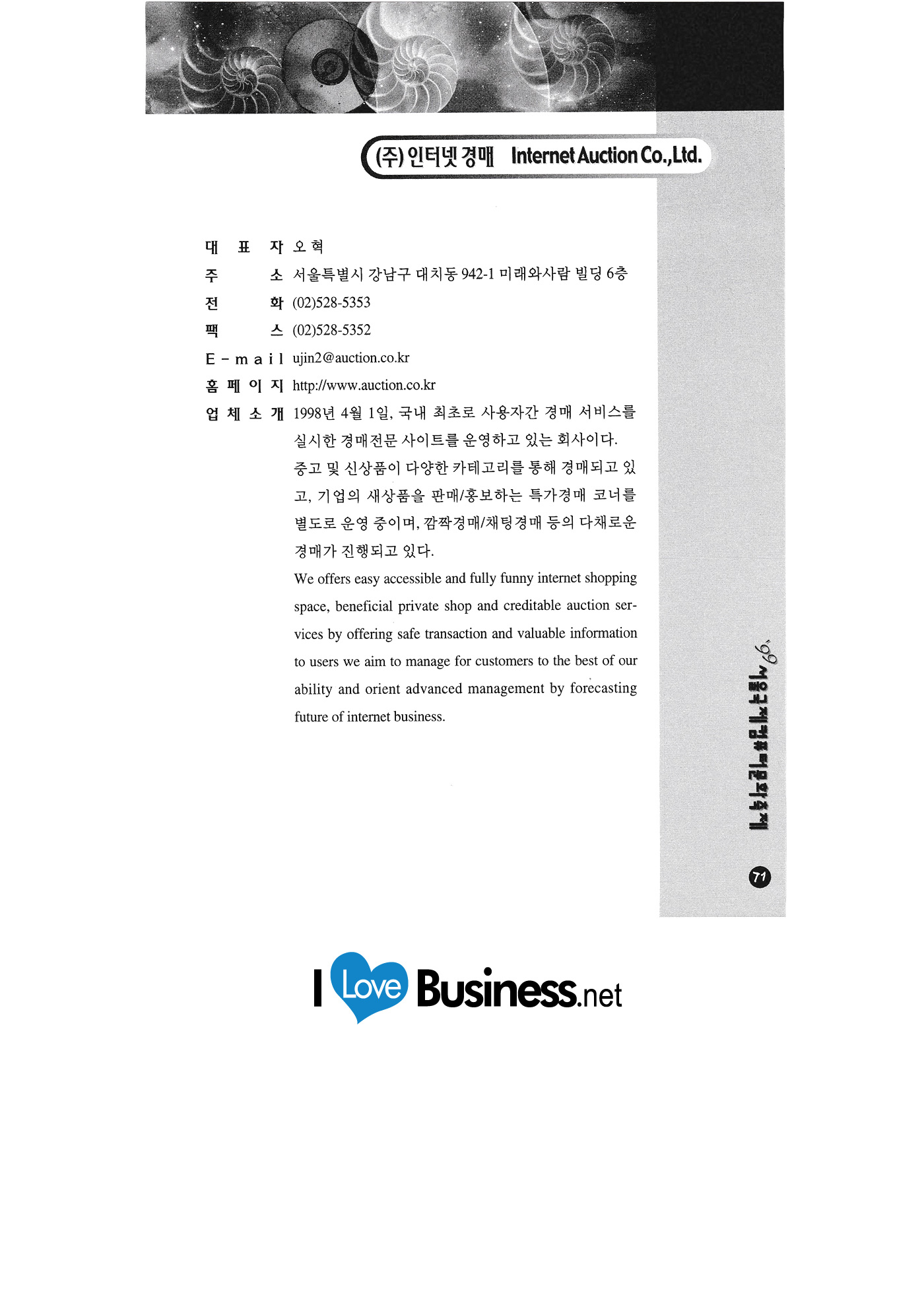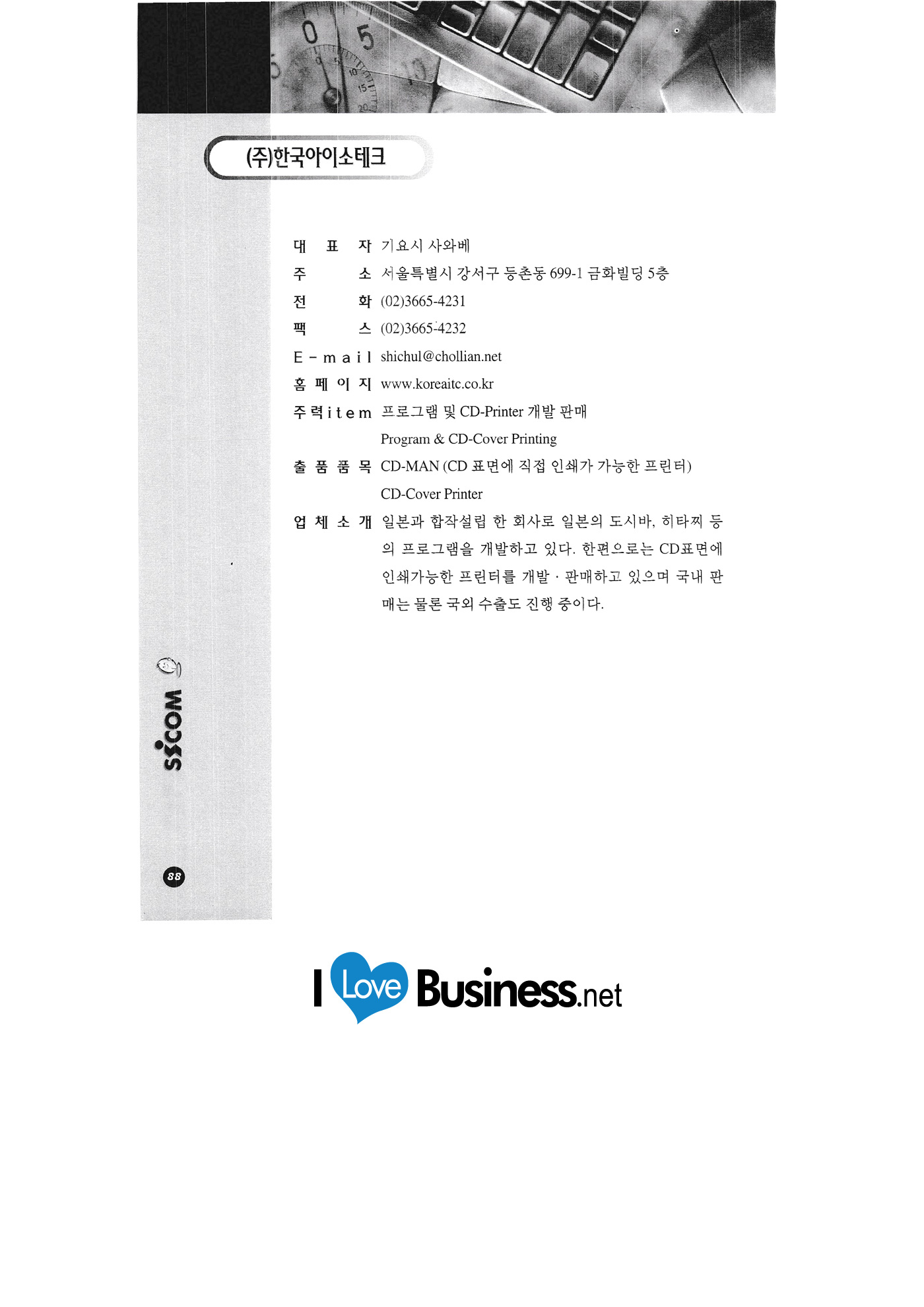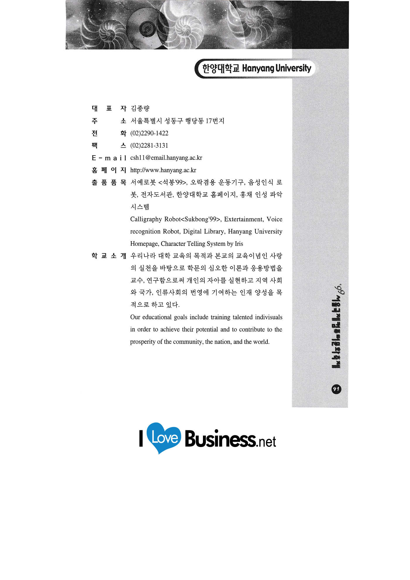 Internet auction Infowave Korea Chaoyang Information & Communication JoongAng Electronics & Publishing GT Enterprise Jinsung Solution Advanced Engineering Software Research Center Chunggang University of Culture and Industry Billing computer system Chungcheong University Character Bank Character Korea Cleantech Philos Hana Trade Korea Industrial Design Promotion Agency Korea National Oil Corporation Korea Isotech Hanmaeum Cadcom Hanmaeum Soft Hanyang University Hyundai Securities Hancom Education Country |