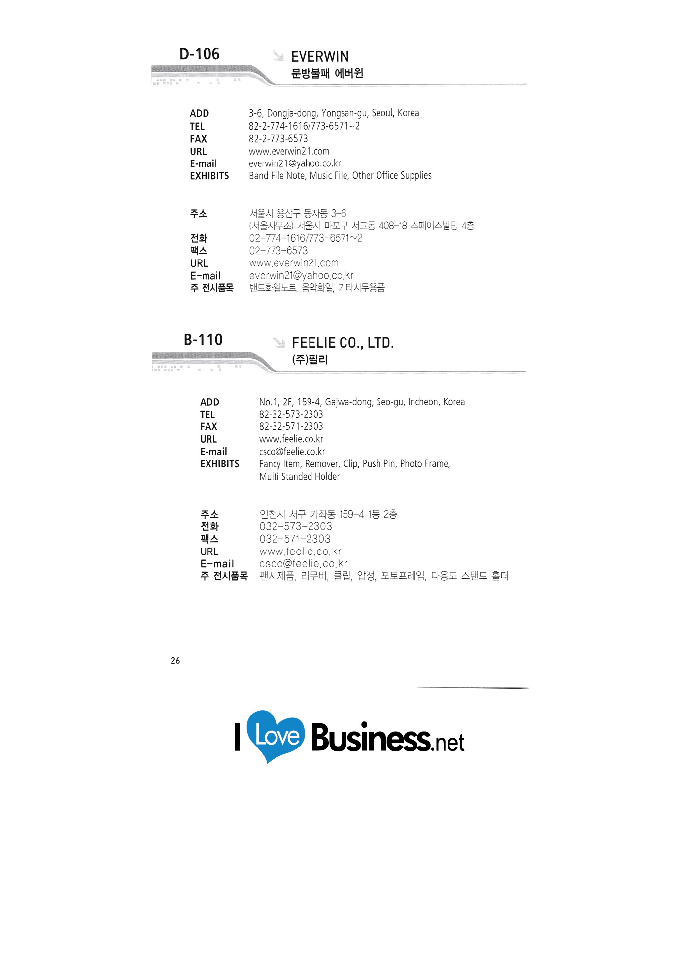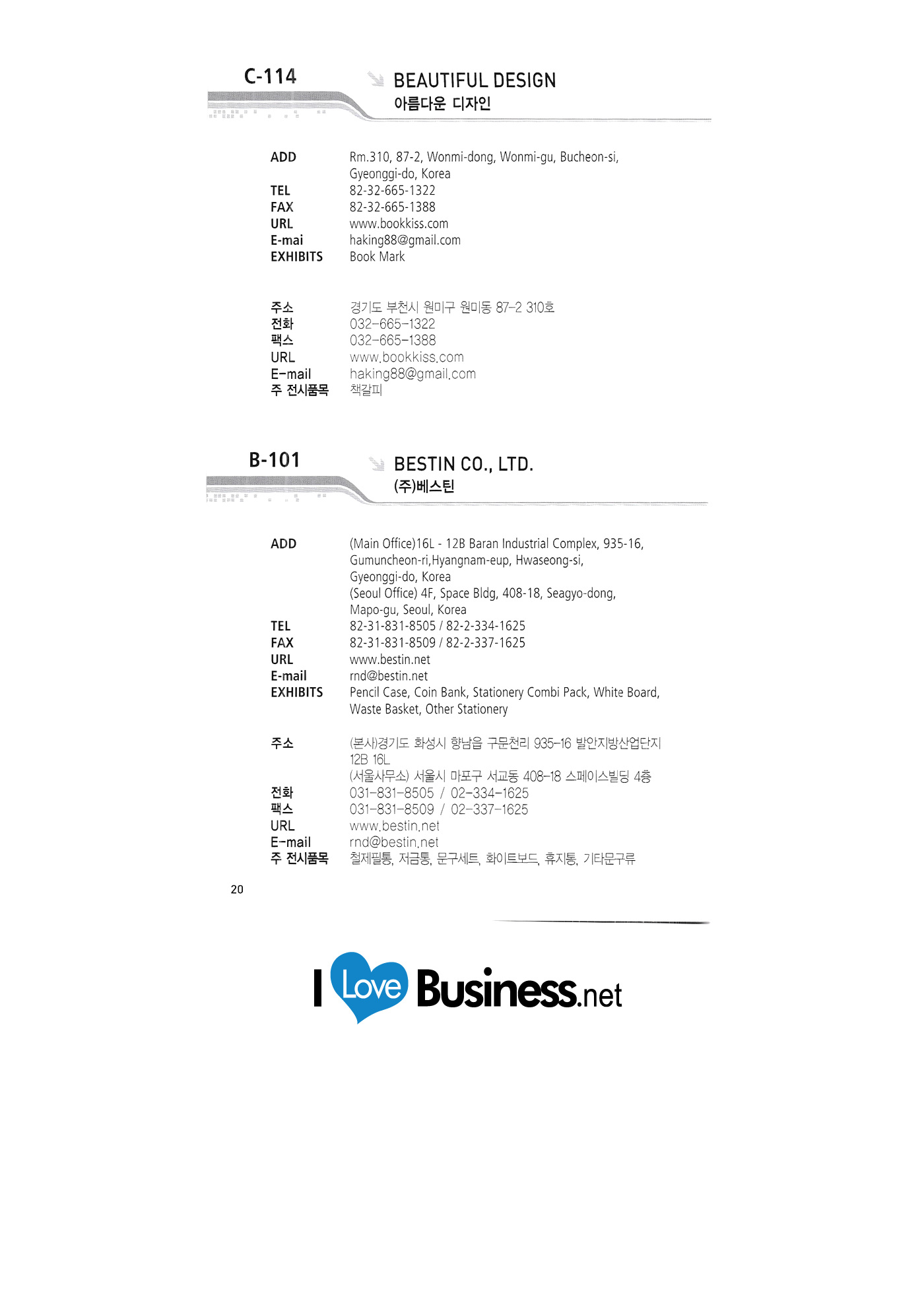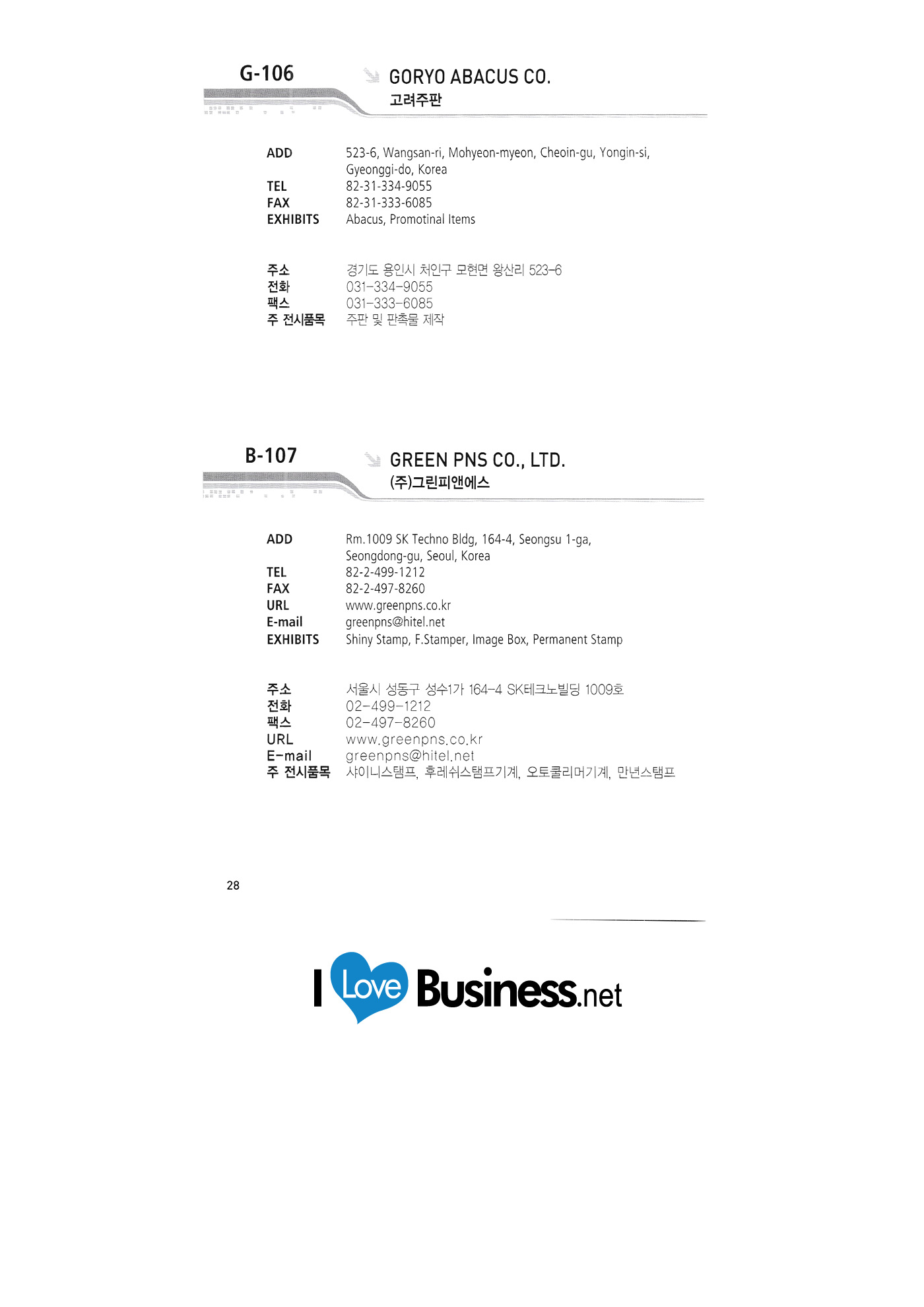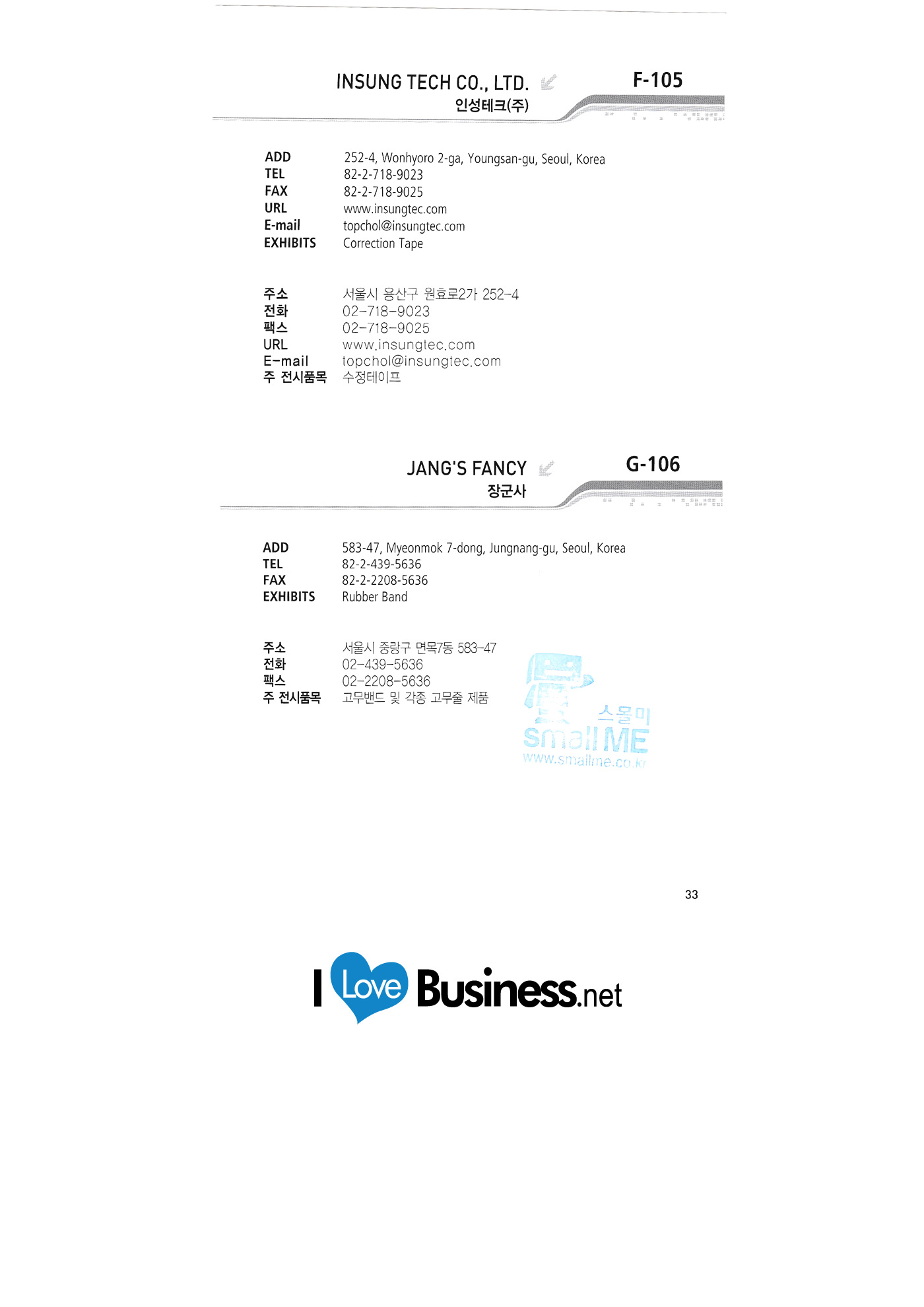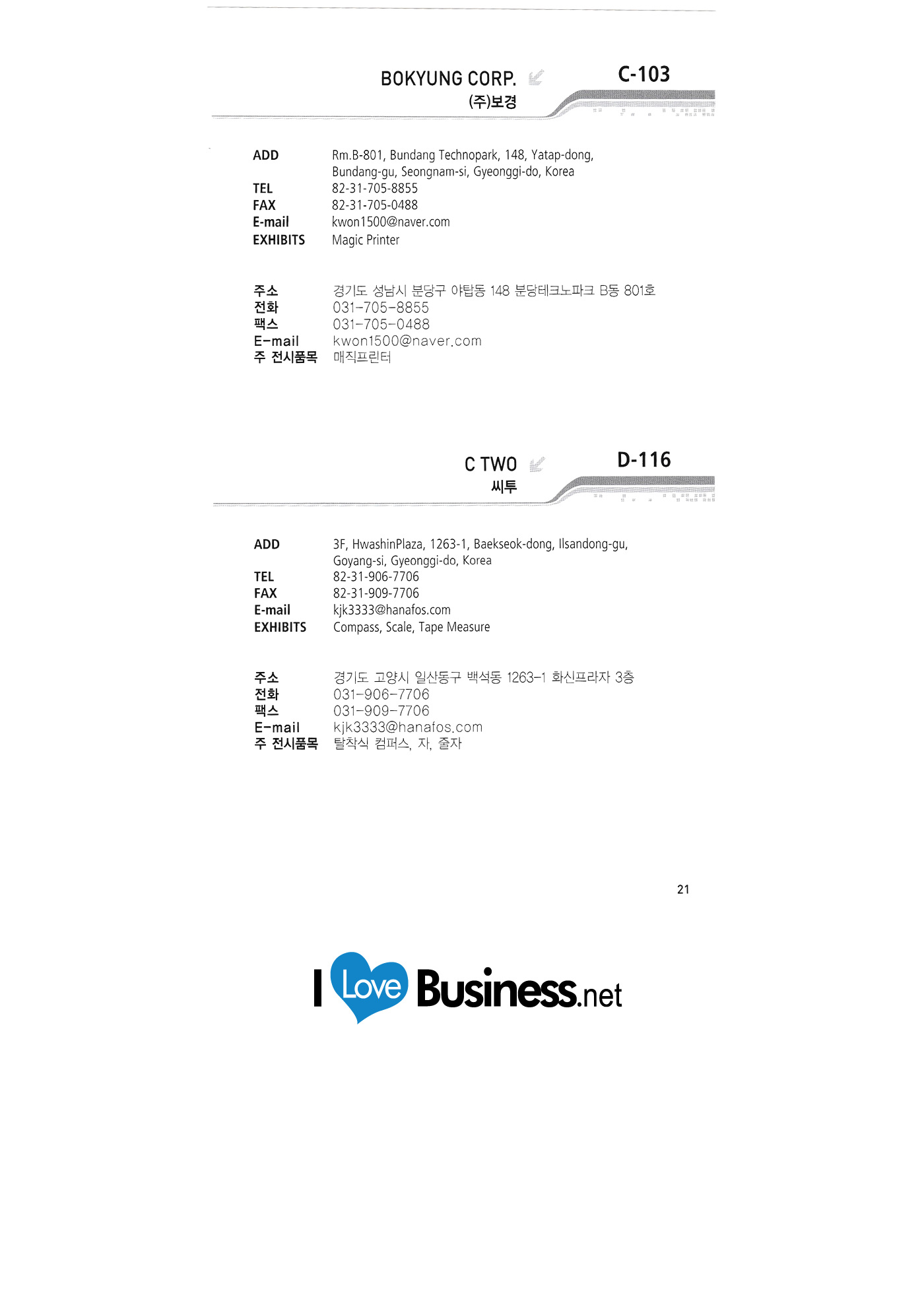 33Butterfly Culture History A Art Line Alpha Color Co., Ltd. Angel Tech Co., Ltd. Art Sign Co., Ltd. balance Beautiful design Vestin Co., Ltd. Bokyung Co., Ltd. C2 C. R. K distribution Changshin Precision Industry COEX Chunggang University of Culture and Industry, Character Industry Design Department Doner Land Co., Ltd. Donggi Industrial Co., Ltd. Dream Office Co., Ltd. Irala International Co., Ltd. Everwin Philly Co., Ltd. Kunhwa Machine Co., Ltd. Good Feel Korea Co., Ltd. Goryeo Abacus Green P&S Drawing Co., Ltd. Korea Biochoke Co., Ltd. Hankuk Paper Co., Ltd. Hope File Co., Ltd. Hyunjin Art Co., Ltd. Hyeonpoong Industrial Company IJ Industry Indreamtech Insung Tech Co., Ltd. General |