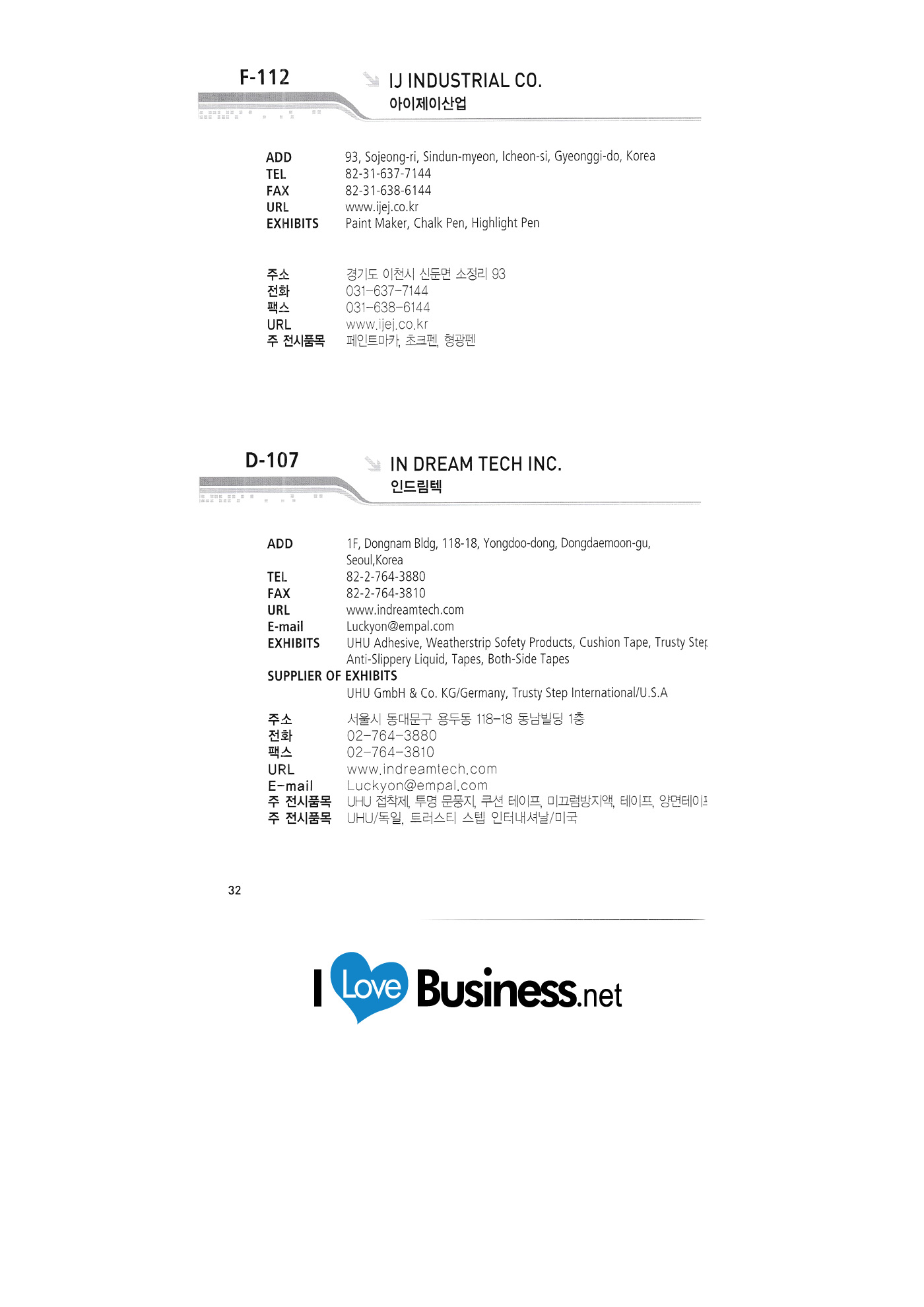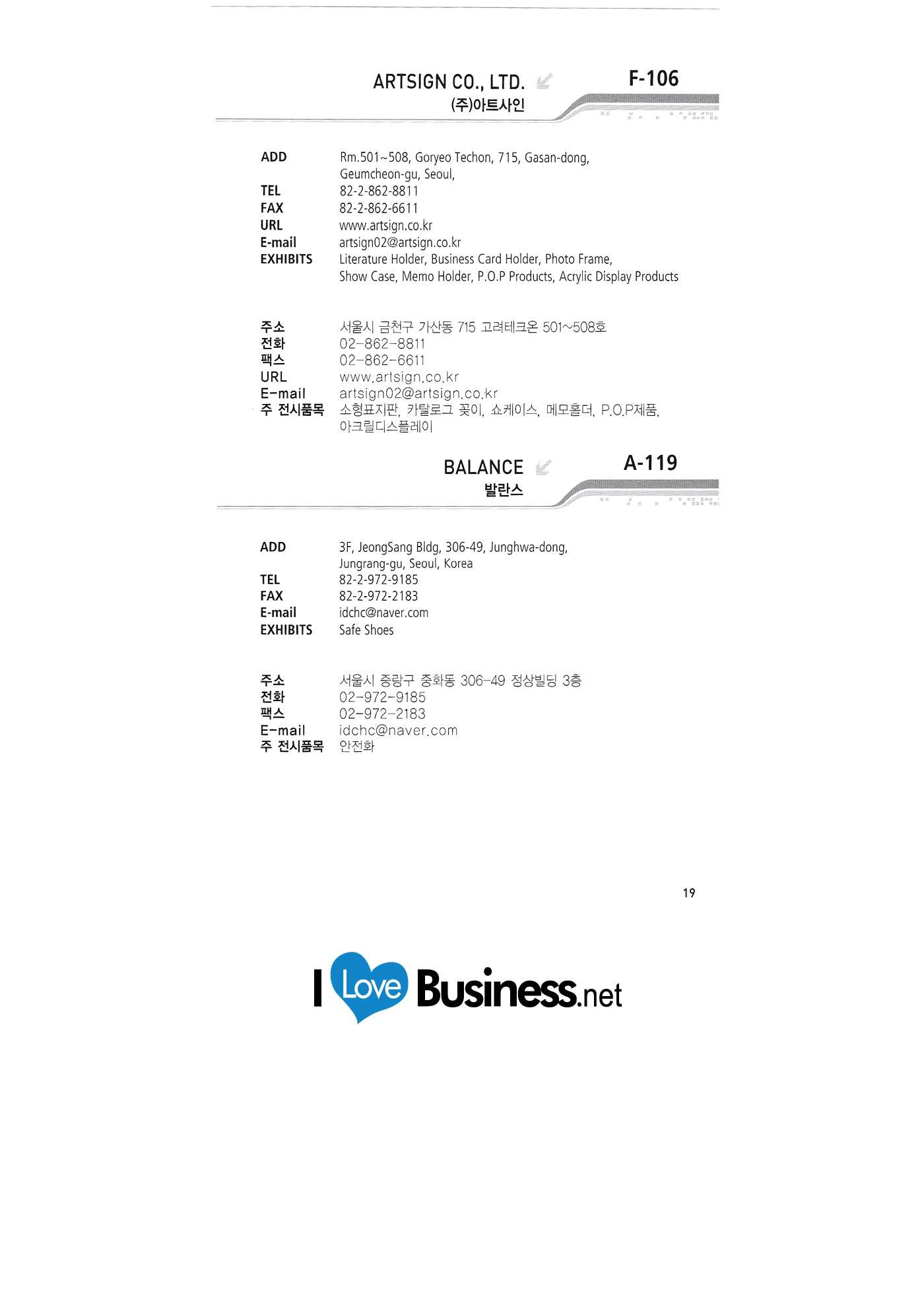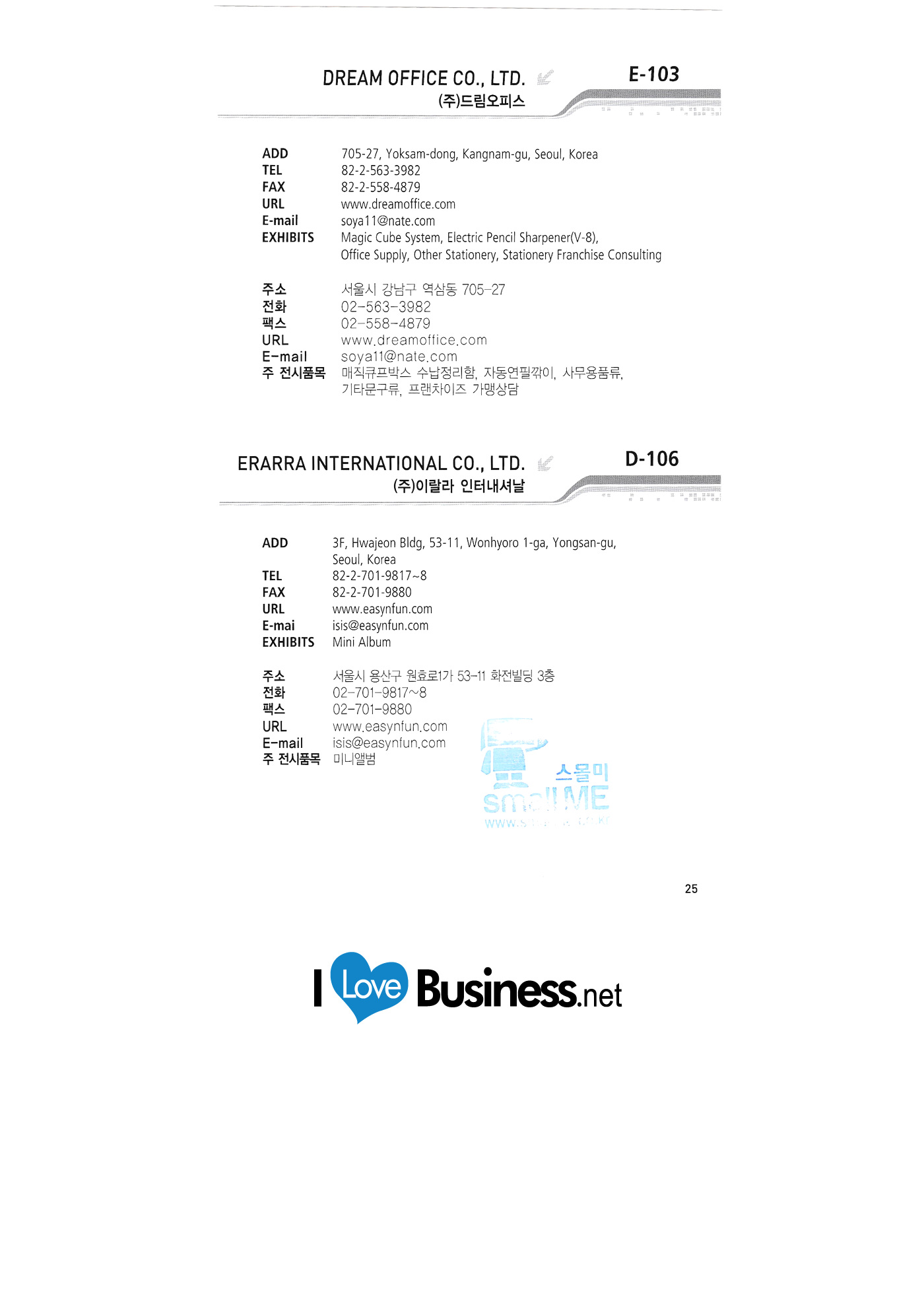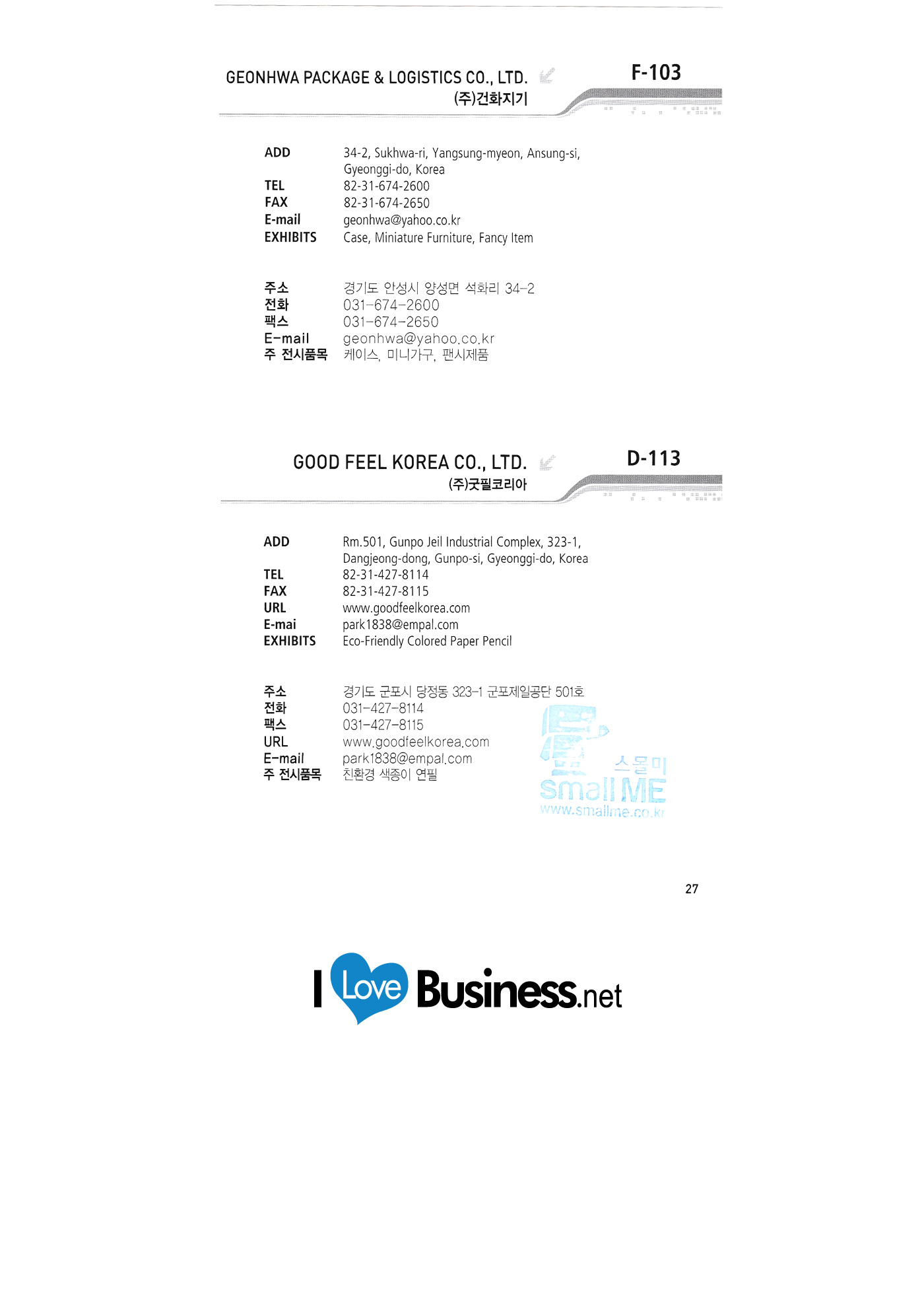 33Butterfly Culture History A Art Line Alpha Color Co., Ltd. Angel Tech Co., Ltd. Art Sign Co., Ltd. balance Beautiful design Vestin Co., Ltd. Bokyung Co., Ltd. C2 C. R. K distribution Changshin Precision Industry COEX Chunggang University of Culture and Industry, Character Industry Design Department Doner Land Co., Ltd. Donggi Industrial Co., Ltd. Dream Office Co., Ltd. Irala International Co., Ltd. Everwin Philly Co., Ltd. Kunhwa Machine Co., Ltd. Good Feel Korea Co., Ltd. Goryeo Abacus Green P&S Drawing Co., Ltd. Korea Biochoke Co., Ltd. Hankuk Paper Co., Ltd. Hope File Co., Ltd. Hyunjin Art Co., Ltd. Hyeonpoong Industrial Company IJ Industry Indreamtech Insung Tech Co., Ltd. General |