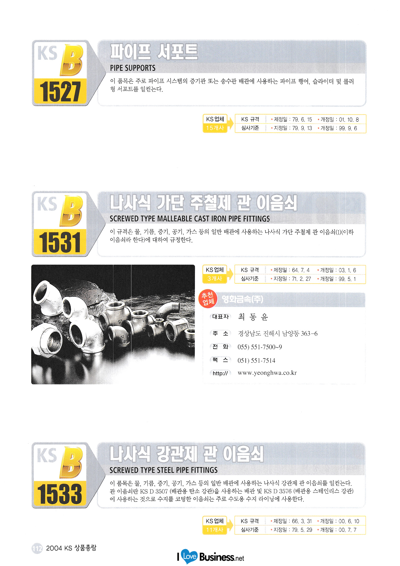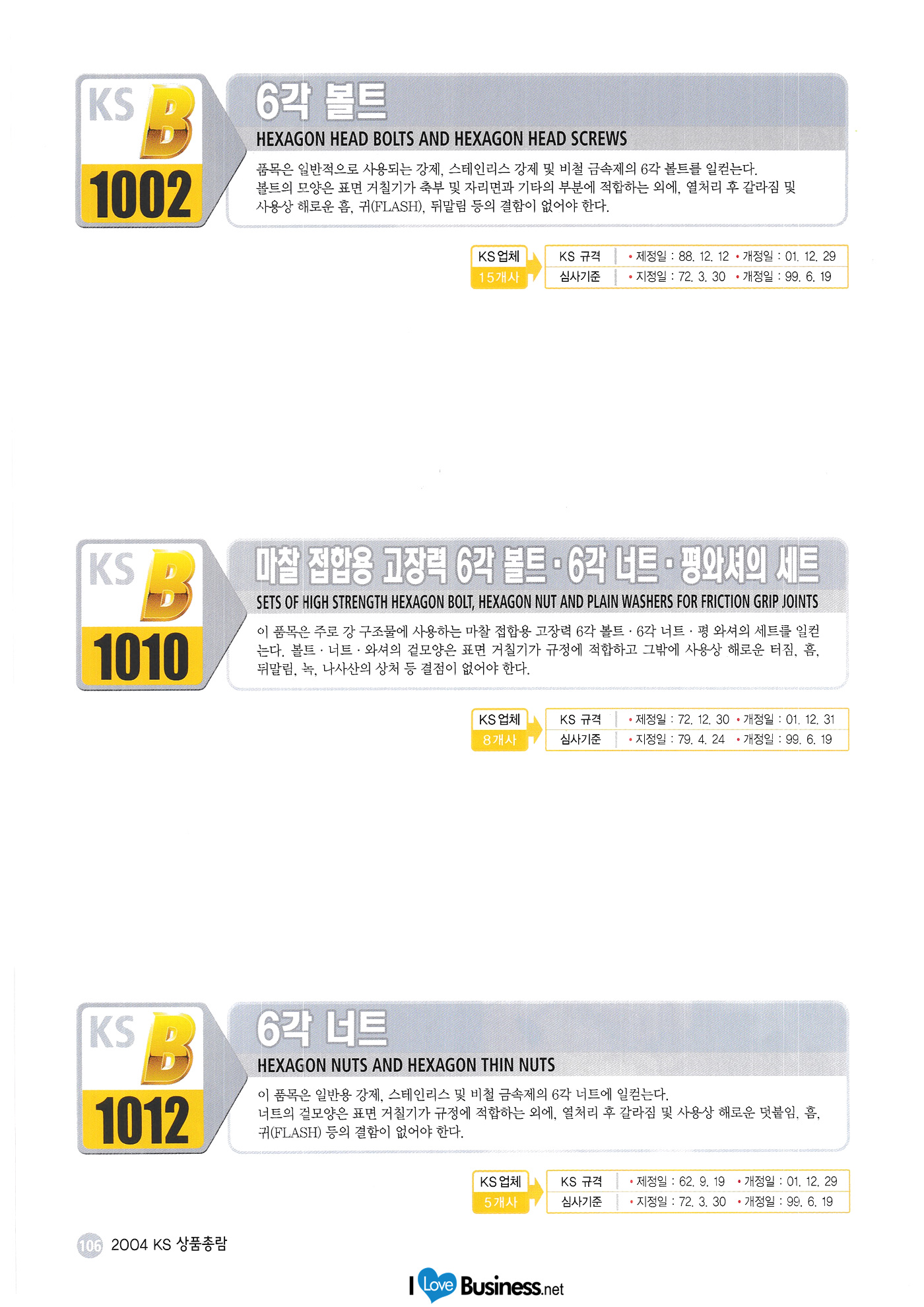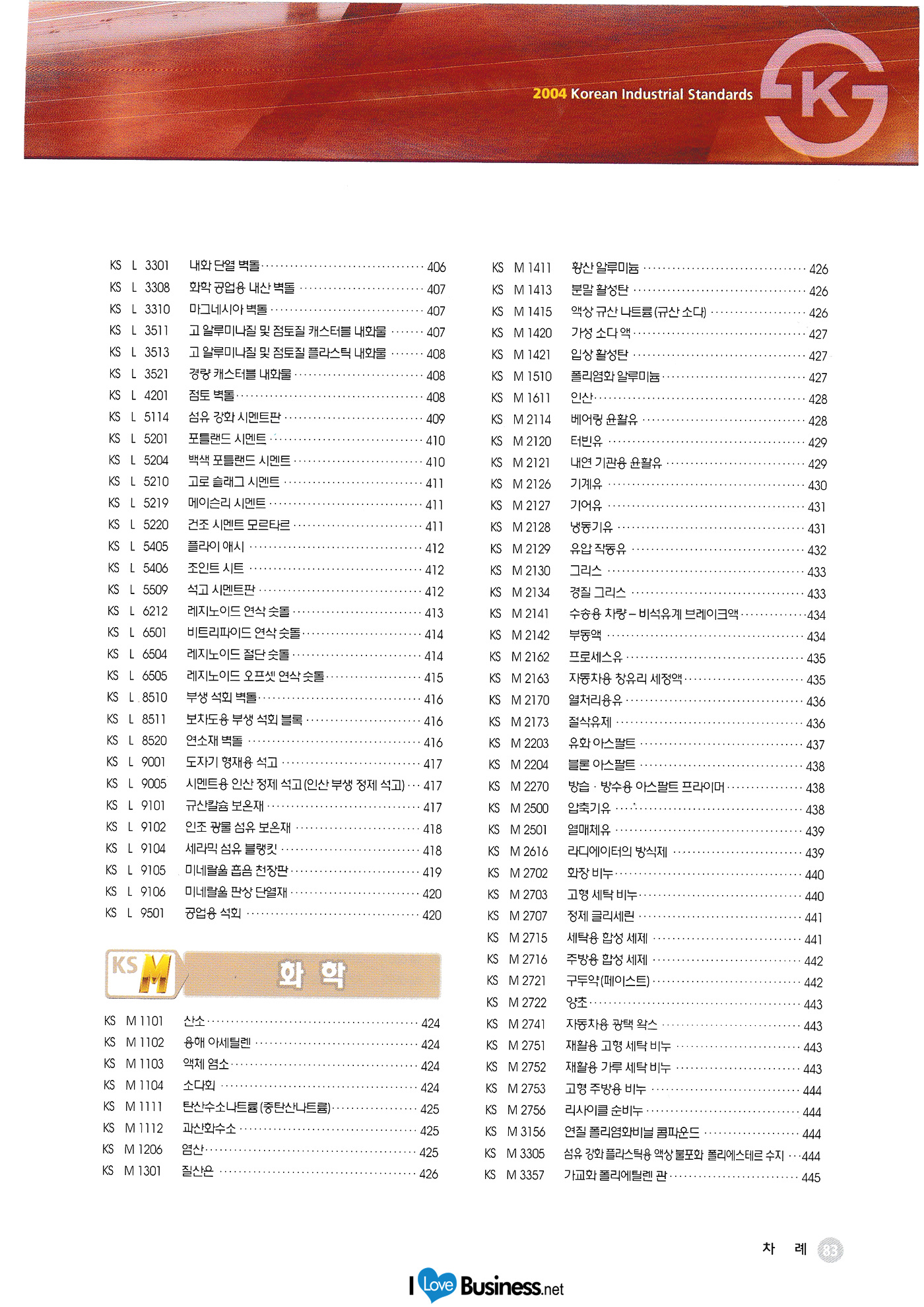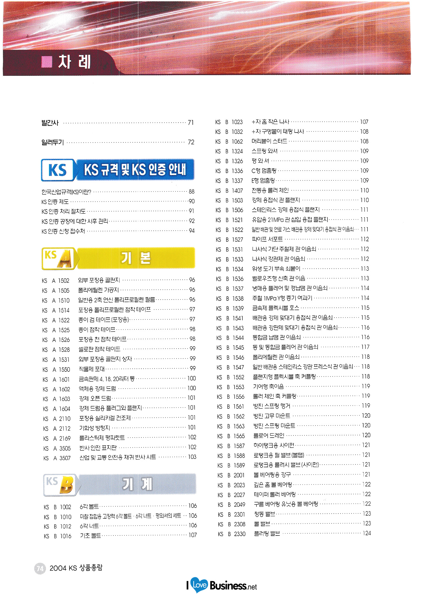 | 2004 한국 상품총람 <기본> 외부 포장용 골판지 폴리에틸렌 가공지 일반용 2축 연신 폴리프로필렌 필름 포장용 폴리프로필렌 점차 ㄱ테이프 종이 검 테이프(포장용) 종이 검 테이프 포장용 천 점착 테이프 외부 포장용 골판지 상자 직물제 포대 금속판4, 18, 20리터 통 액체용 강제 드럼 강제 오픈 드럼 강제 드럼용 플러그와 플랜지 포장용 실리카겔 건조제 기화성 방청지 플라스틱제 평파렛트 반사 안전 표지판 산업 및 교통 안전용 재귀 반사 시트 <기계> 6각 볼트 마찰 접합용 고장력 6각볼트, 6각너트, 평와셔의 세트 6각 너트 기초 볼트 +자 홈 작은 나사 +자 구멍붙이 태핑 나사 머리부티 스터드 스프링 와셔 평 와셔 C형 멈춤링 E형 멈춤링 전동용 롤러 체인 강제 용접식 관플랜지 스테인리스 강제 용접식 플랜지 유압용 21MPa 관 삽입 용접 플랜지 일관 배관 및 연료 가스 배관용 강제 맞대기 용접식 이음쇠 파이프 서포트 나사식 기단 주철제 관 이음쇠 나사식 강관제 관이음쇠 |