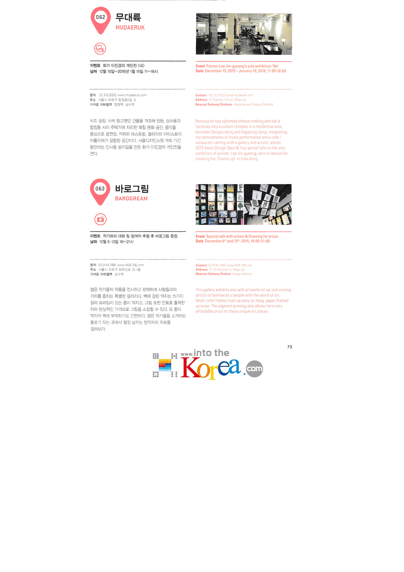 | <와우산길> 머쉬룸메이트 모나미콘셉트스토어 무대륙 바로그림 뮤제 드 스컬프 베로니카이펙트 보부상회 디자인 협동조합 소소문구 소쿠리 스탠다드에이&아키트 아이헤이트먼데이 에이에이디자인뮤지엄 엔디자이너스 오드갤러리 자리 오브젝트 갤러리 잔다리 정원이 있는 국민책방 제이에스픽쳐스 KT&G상상마당 시네마 프렌테 필름포럼 힐링필링협동조합 |