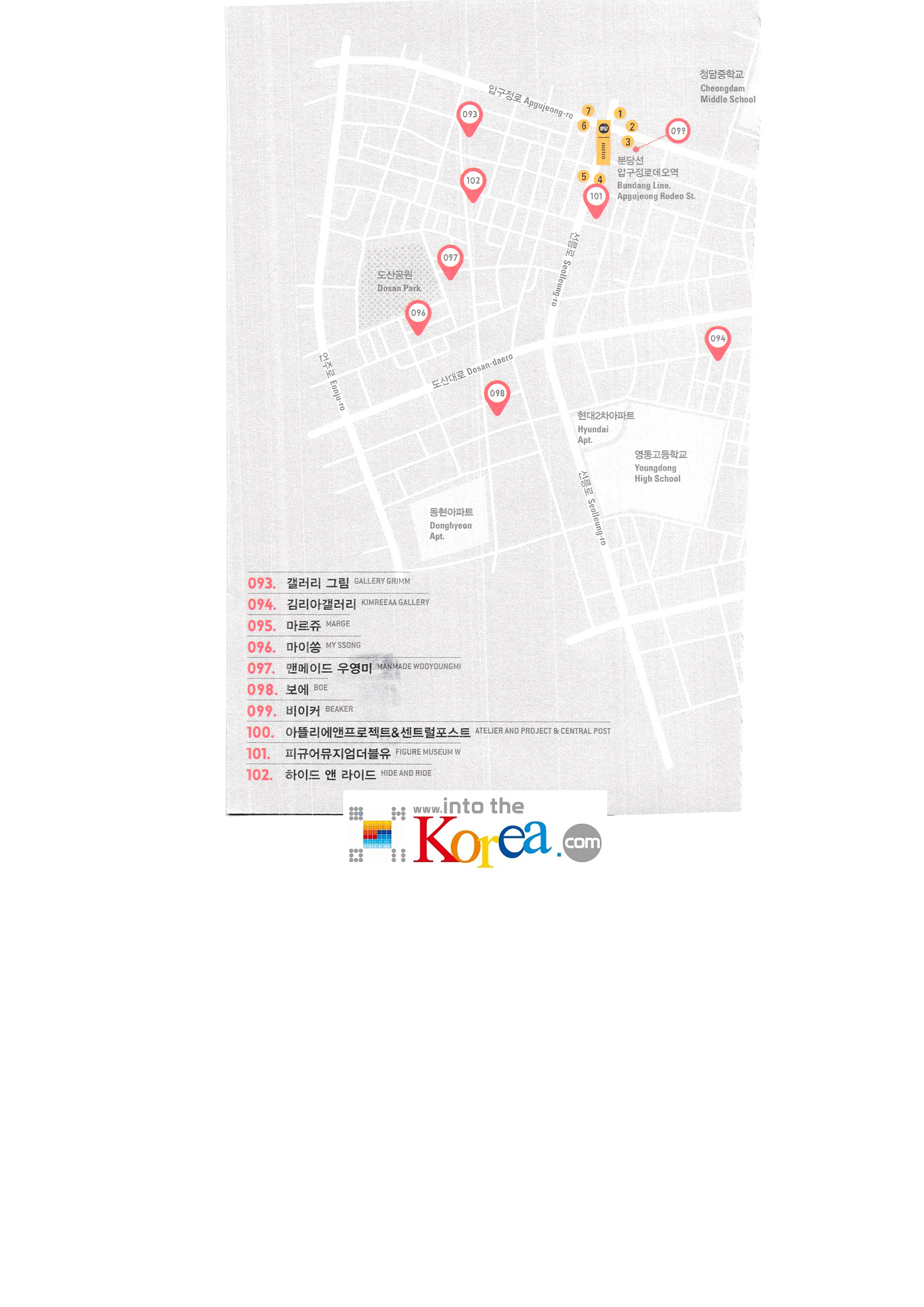 | <도산대로길> 갤러리 그림 김리아갤러리 마르쥬 마이쏭 맨메이드 우영미 보에 비이커 아뜰리에앤프로젝트&센트럴포스트 피규어뮤지엄더블유 하이드 앤 라이드 |