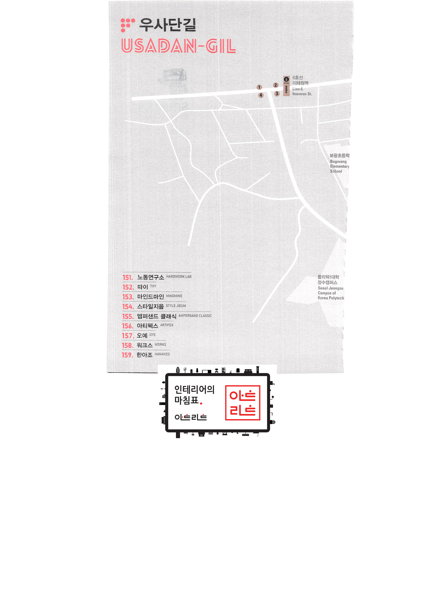 | <우사단길> 노동연구소 따이 마인드마인 스타일지음 앰퍼센드 클래식 아티펙스 오예 워크스 한아조 |