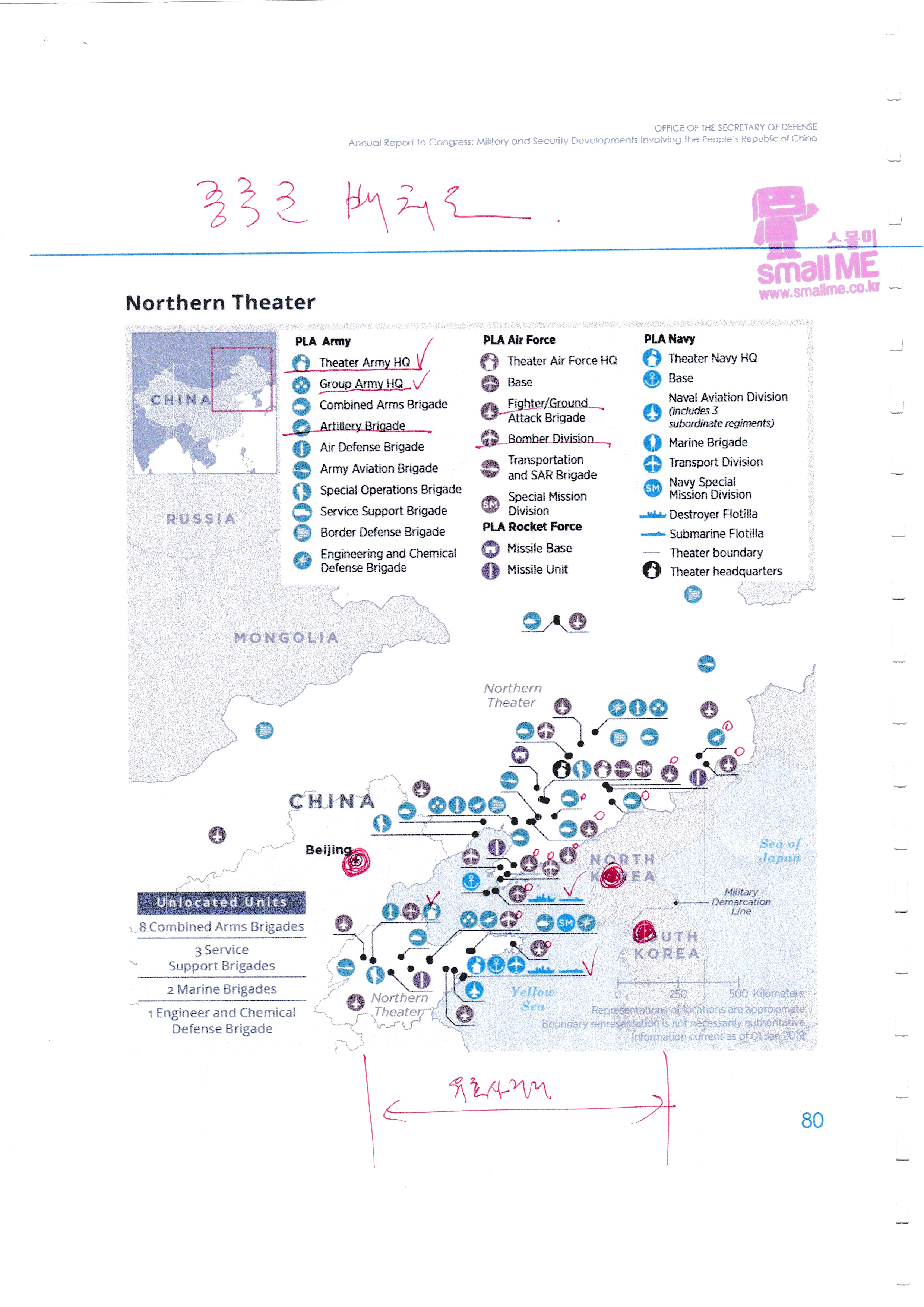 미국의 RAND 연구소 리포트에 나와있는 중국군 배치도이다.