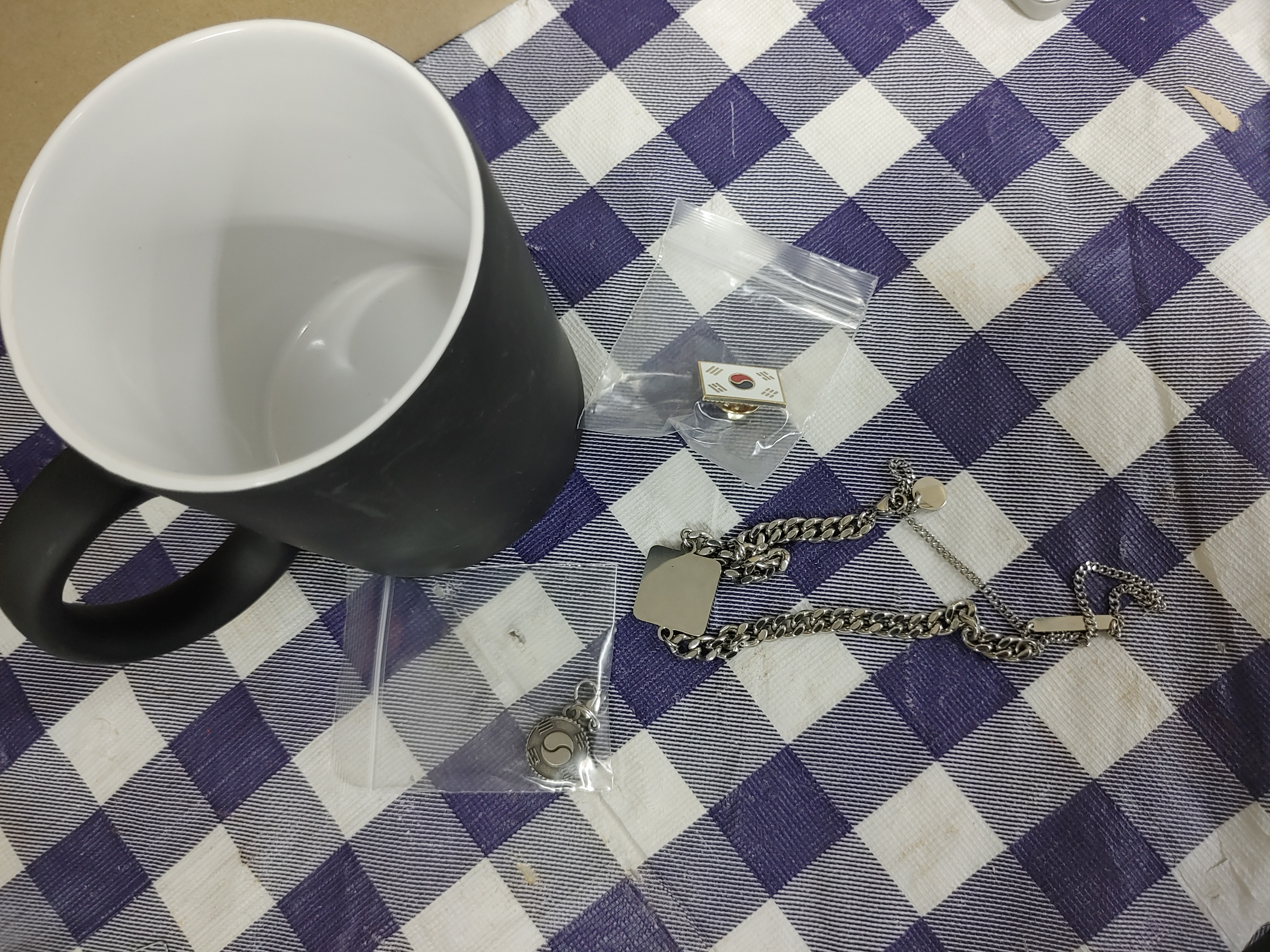 네모난 철판에 태극기라도 있으면 이해가 되겠으나...그것도 아니고 그냥 평평한 작은 철판을 중심으로 팔찌의 형태를 하고 있다. 건강팔찌인가? 게르마늄 팔찌???