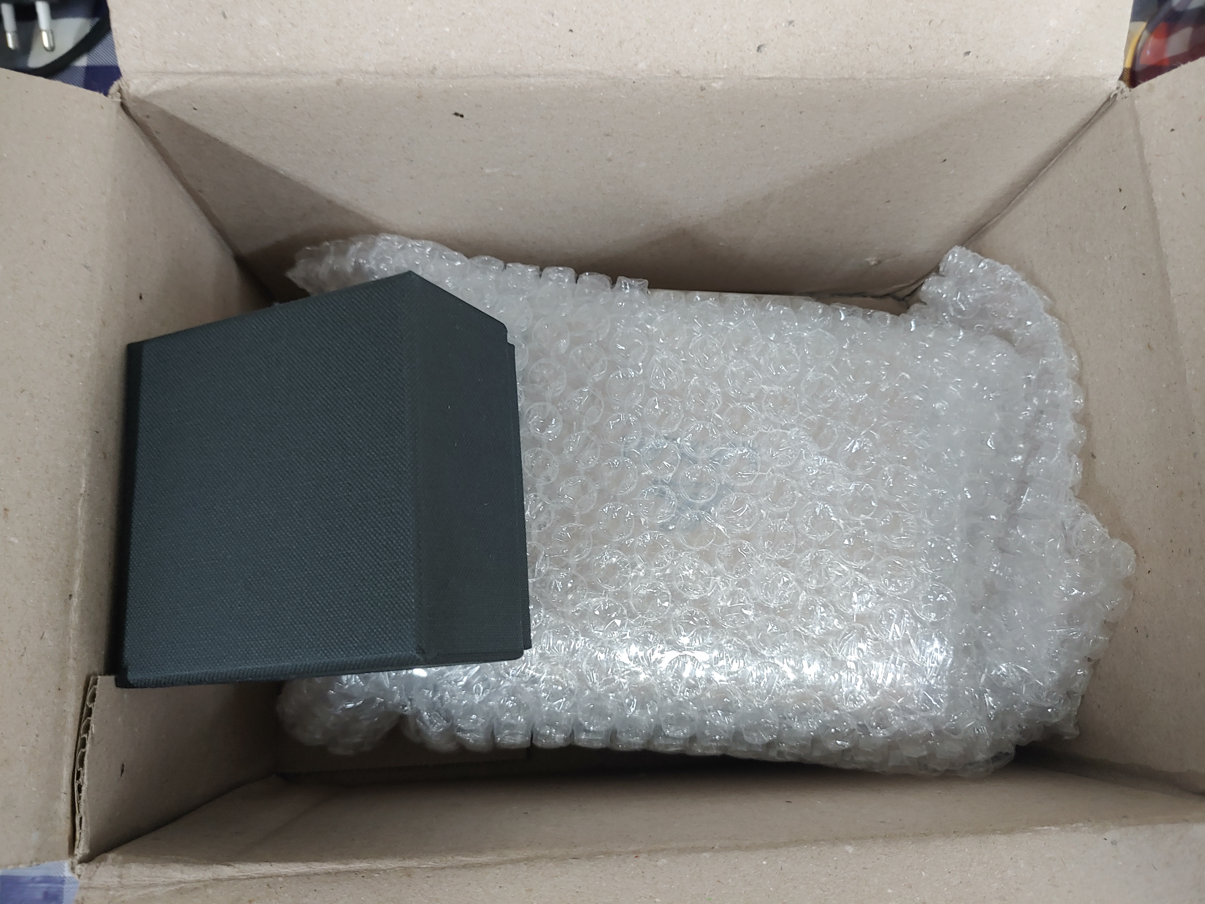 박스를 열었더니 검은 박스와 골판지 박스 두개가 있다.