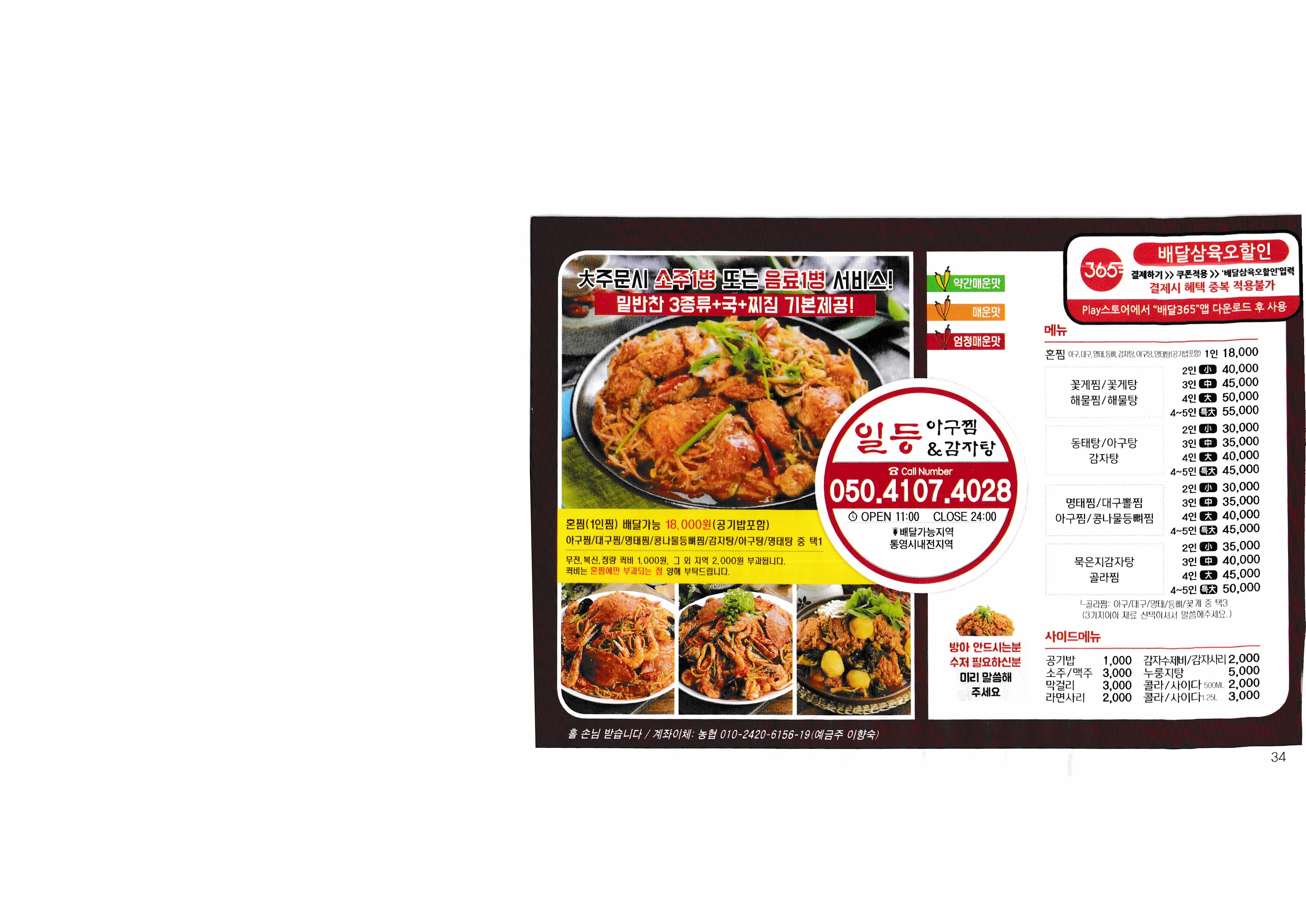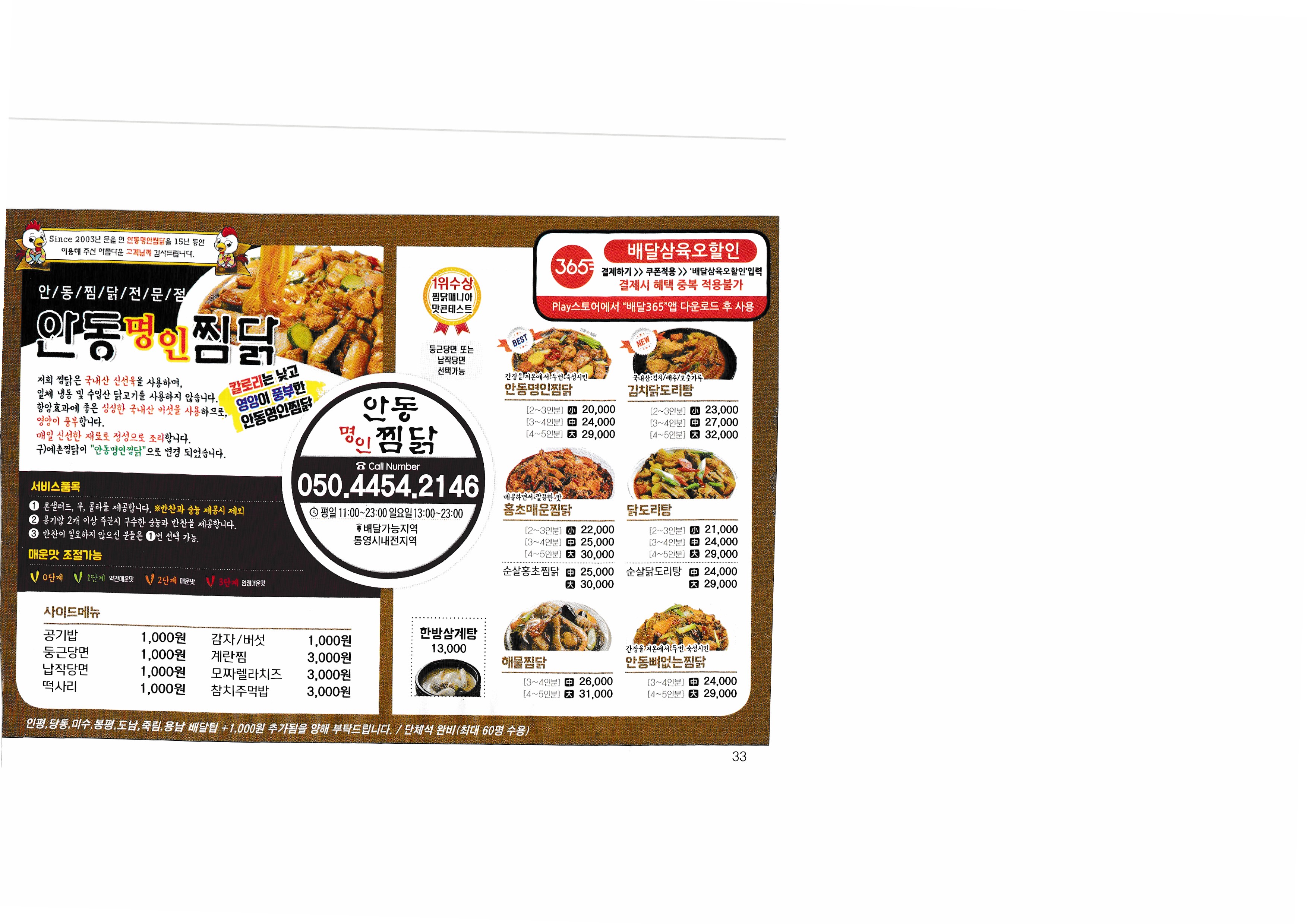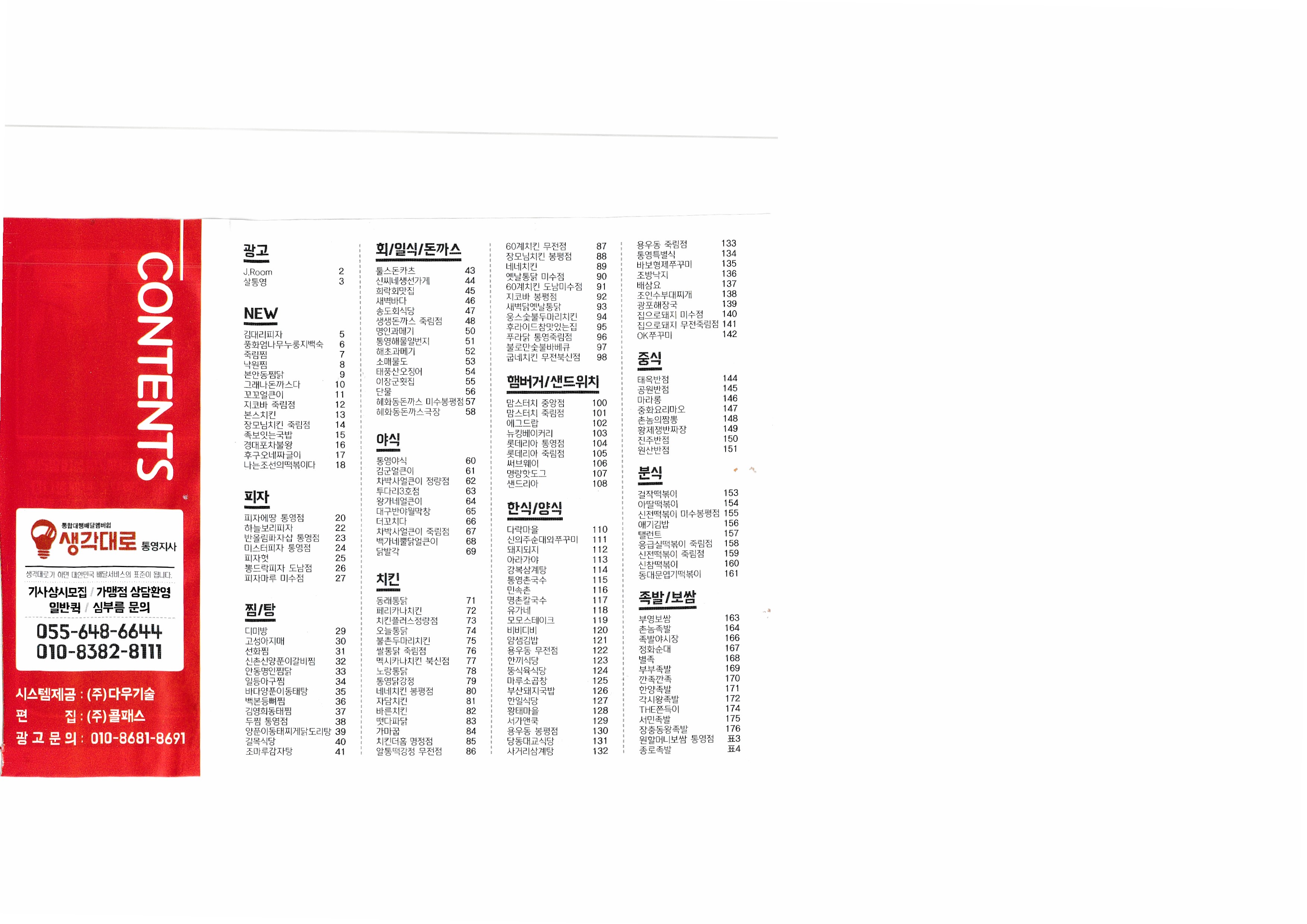 | [배달 365] 김대리 피자 풍화 엄나무 누룽지 백숙 죽림찜 낙원찜 본안동찜닭 그래나 돈까스다 꼬꼬얼큰이 지코바 죽림점 본스치킨 장모님치킨 죽림점 족보있는 국밥 경대포차불왕 후구오네짜글이 나는조선의떡볶이다 피자에땅 통영점 하늘보리피자 반올림파자샵 통영점 미스터피자 통영점 피자헛 뽕드락피자 도남점 피자마루 미수점 디미방 고성 아지매 선화찜 신촌 신양푼이갈비찜 안동명인찜닭 일등 아구찜 바다 양푼이 동태탕 |