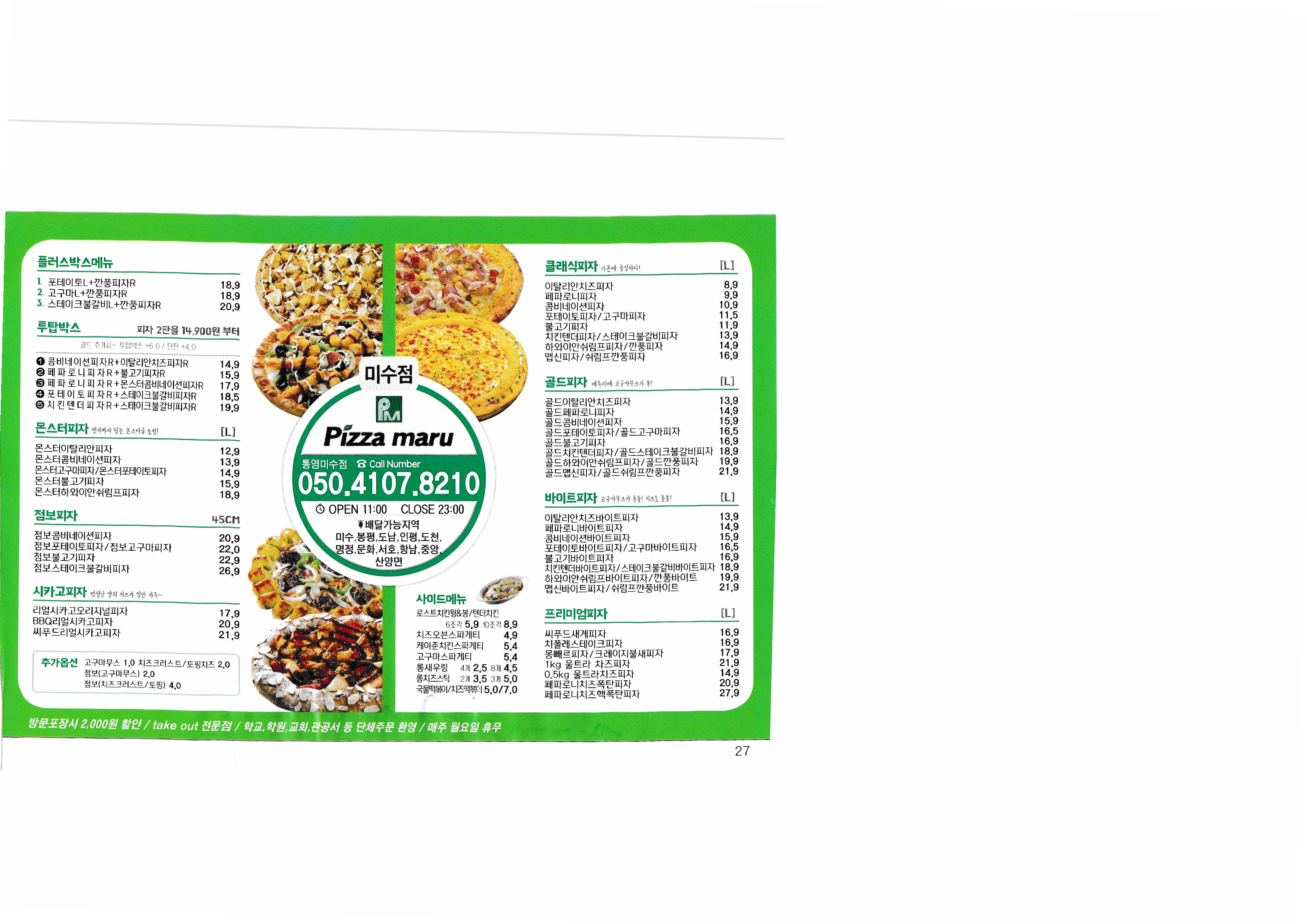 [Delivery 365] Kim's Pizza Weathered mulberry fermented rice Steamed bamboo shoots Nakwon Steamed Bonandong Steamed Chicken yes it's pork cutlet little one Zikova Bamboo Grove Bone's Chicken Mother-in-law Chicken Jukrim Soup with genealogy King of Gyeongdae Pocha Whoops one zagul I am a Korean tteokbokki Pizza et tang Tongyeong Sky Barley Pizza Banollim Paja Shop Tongyeong Mr Pizza Tongyeong Pizza Hut Pong Drak Pizza Donam Branch Pizza Maru Misu Dimibang Goseong sister-in-law Steamed Sunflower Sinchon Sinyang Puni Galbijjim Andong Myeongin Steamed Chicken First-class stew Sea spoon dongtaetang |