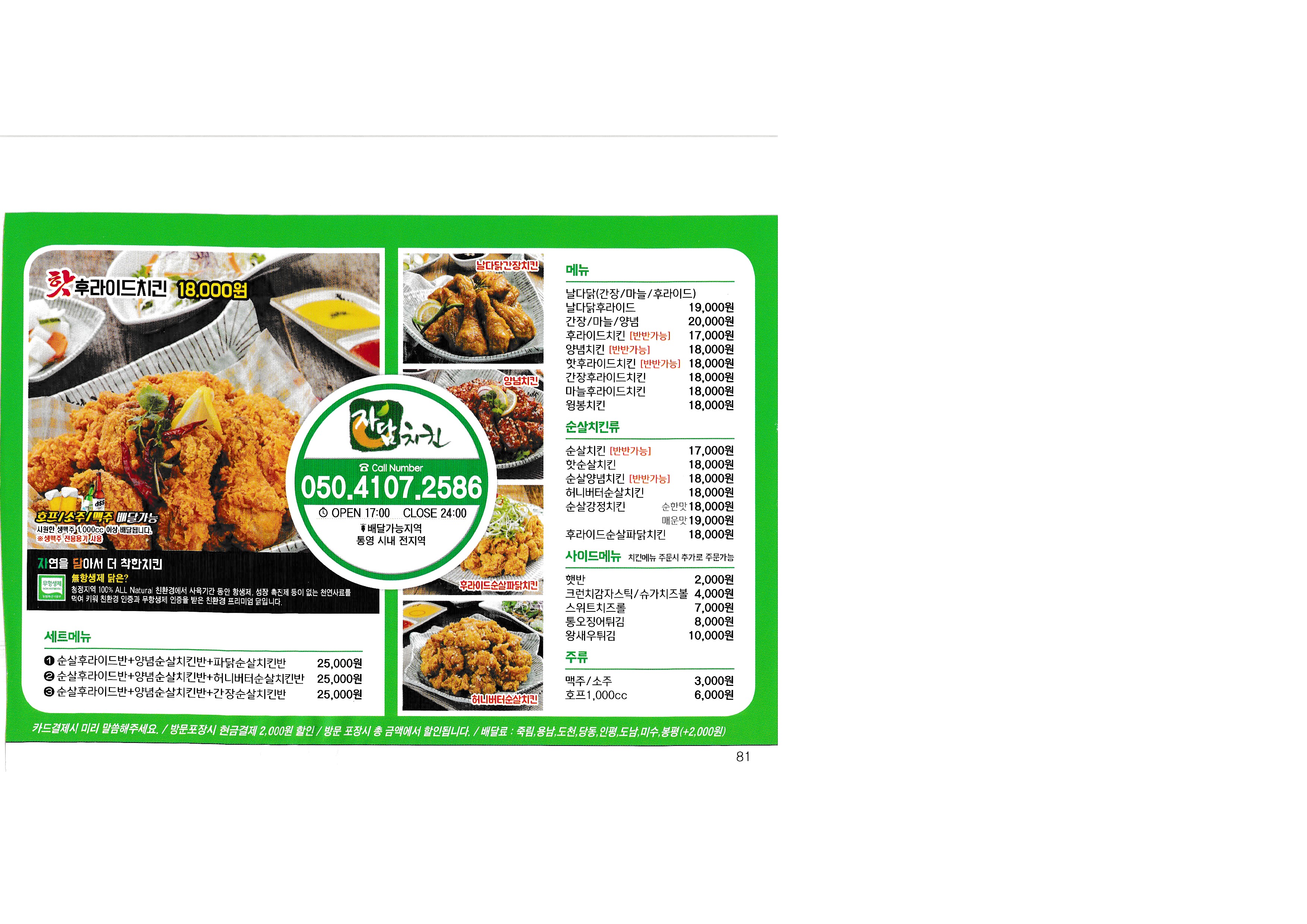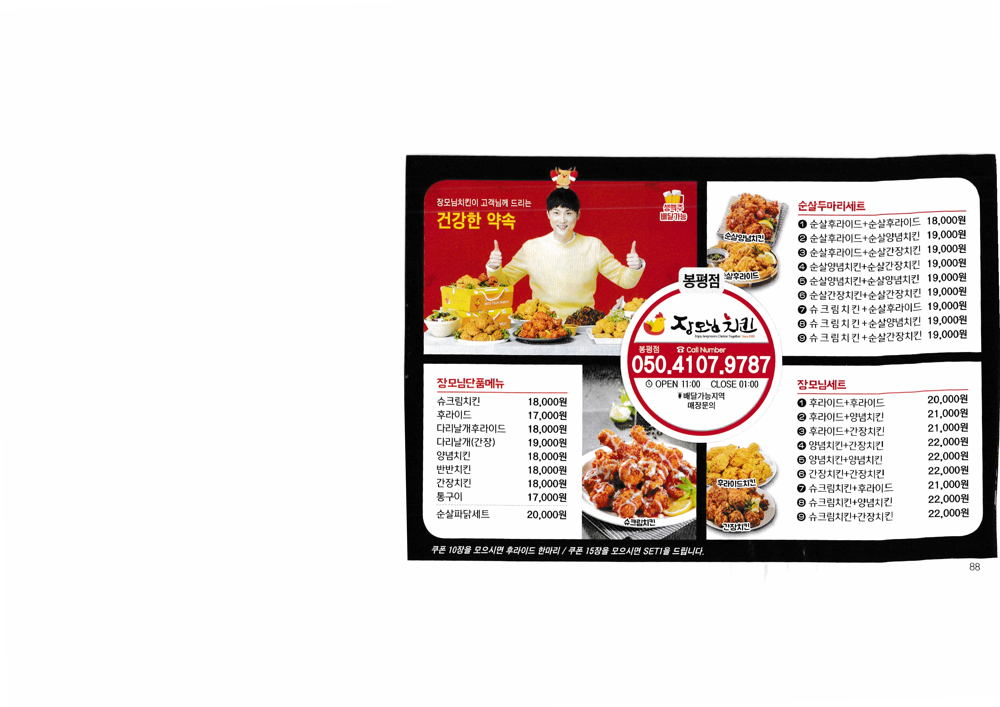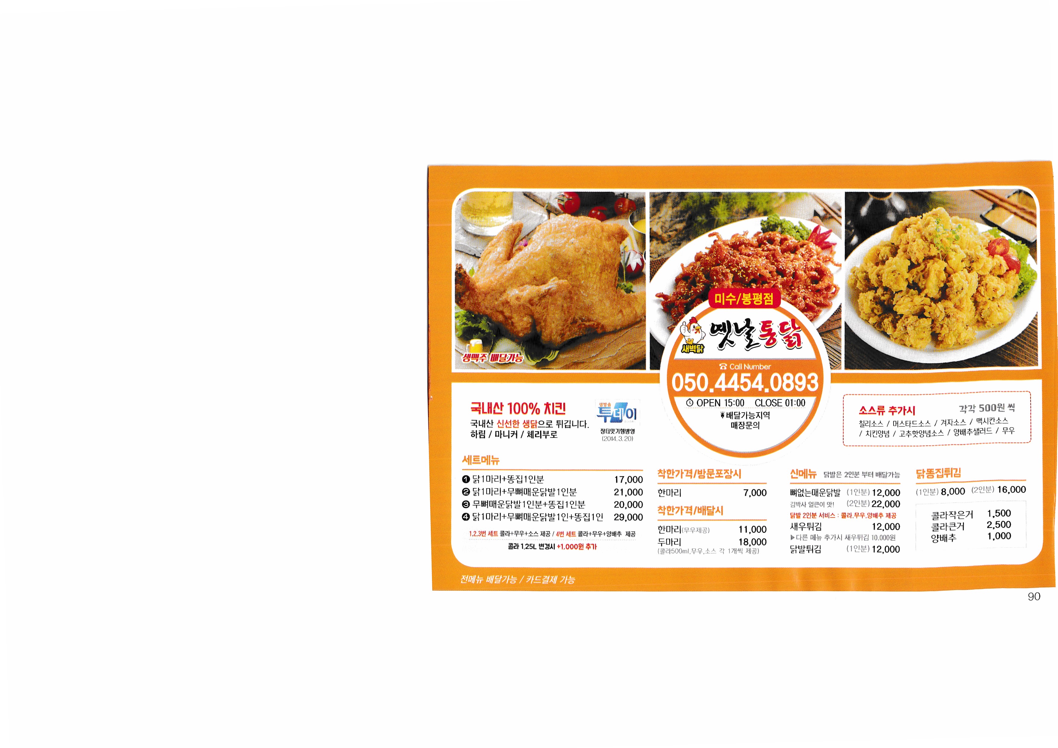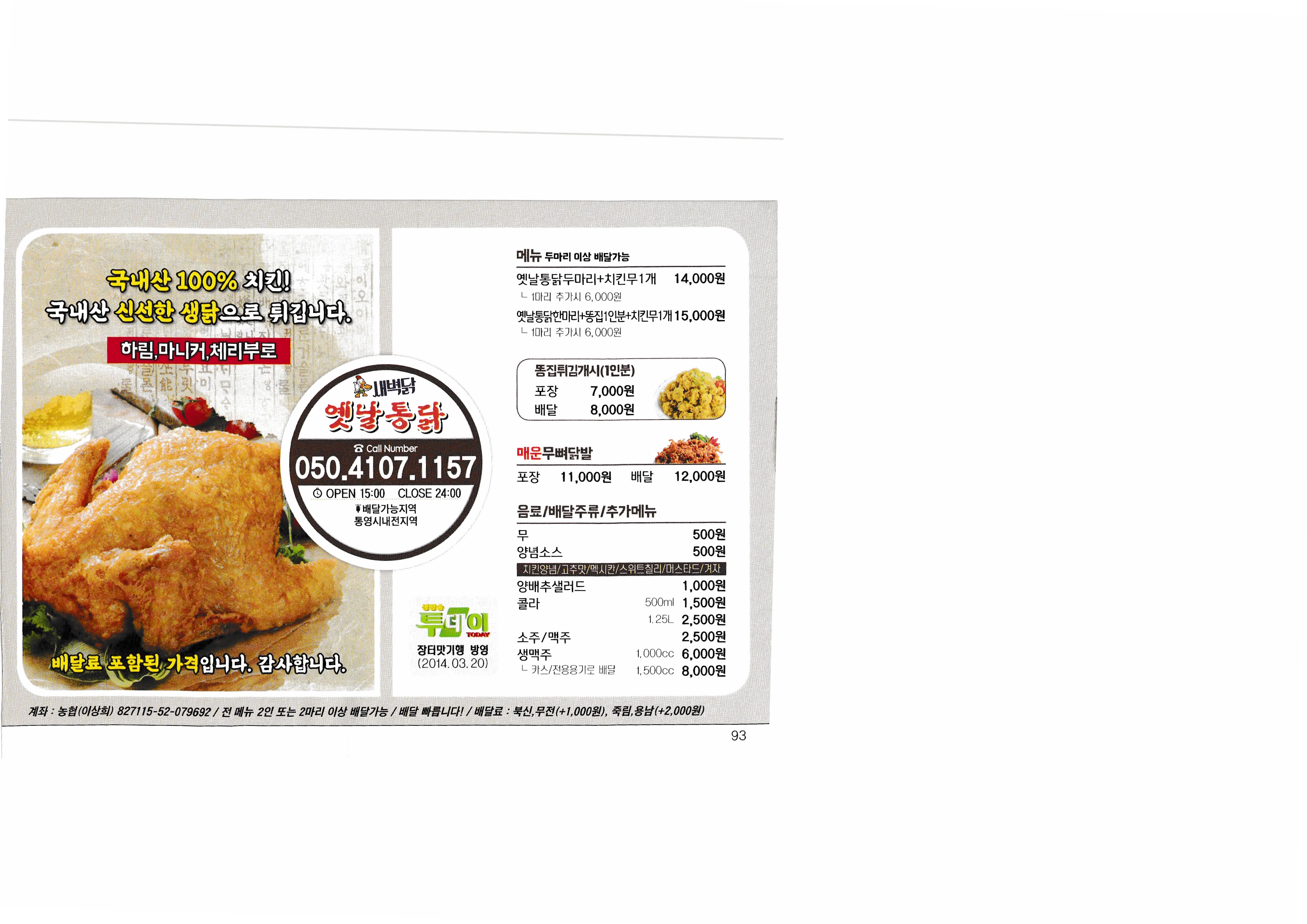 [Delivery 365] Real-time market price to check the price of Korea in 2018...^^ --------------------------------------------- Nene Chicken Tongyeong Jadam Chicken Barun Chicken fresh chicken kiln house Chicken the Home Myeongjeong Altong Tteokgangjeong Mujeon 60 Chicken Mujeon Mother-in-law Chicken Bongpyeong Nene Chicken Old-fashioned Chicken Misu 60 Chicken Donam Misu Zikoba Bongpyeong Dawn Chicken Old-fashioned Chicken Woongs Charcoal Grilled Chicken Delicious fried food Fura Chicken Tongyeong Jukrim Charcoal Barbecue only Goobne Chicken Mujeonbuk New Mom's Touch Central Mom's Touch Juknim egg drop New King Bakery Lotteria Tongyeong Lotteria Jukrim Branch Subway Myeongnyang Hot Dog Sandria Darak Village Sinuiju Sundae and Zucchini not a pig Aragaya Gangbok Samgyetang Tongyeongchon Noodles Folk Village Myeongchon Kalguksu Yugane Momo Steak bbdb Yum Sam Gimbap |