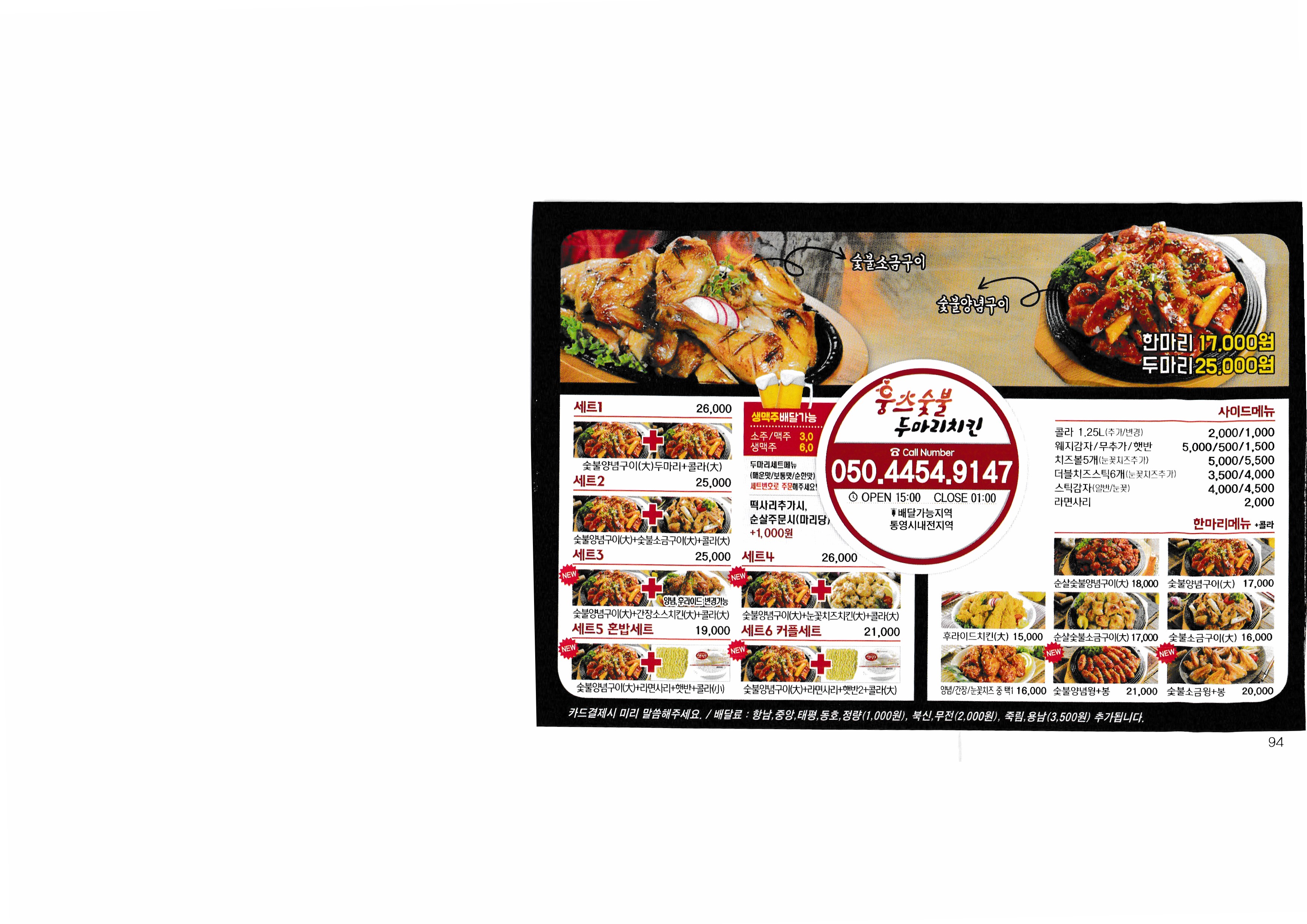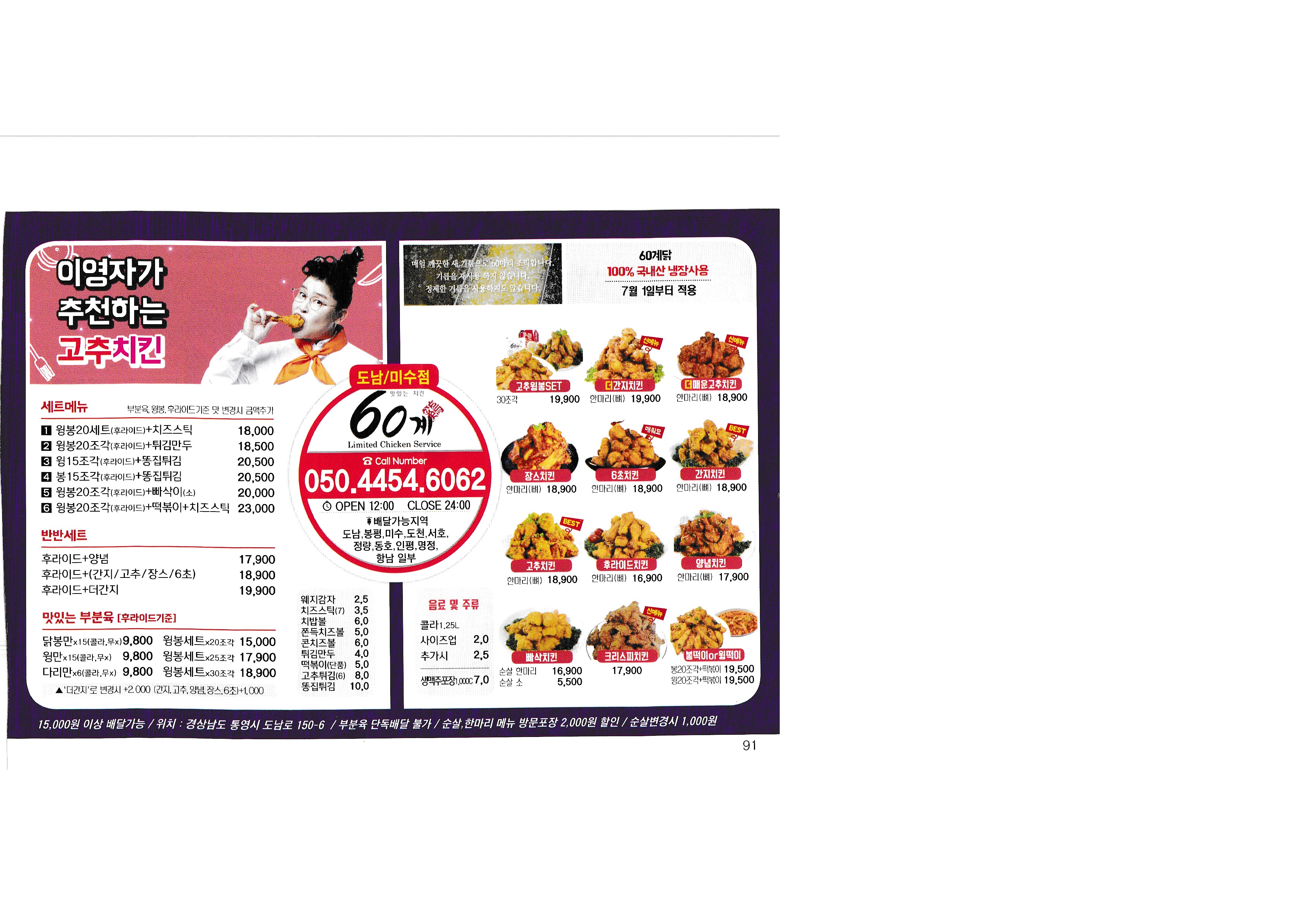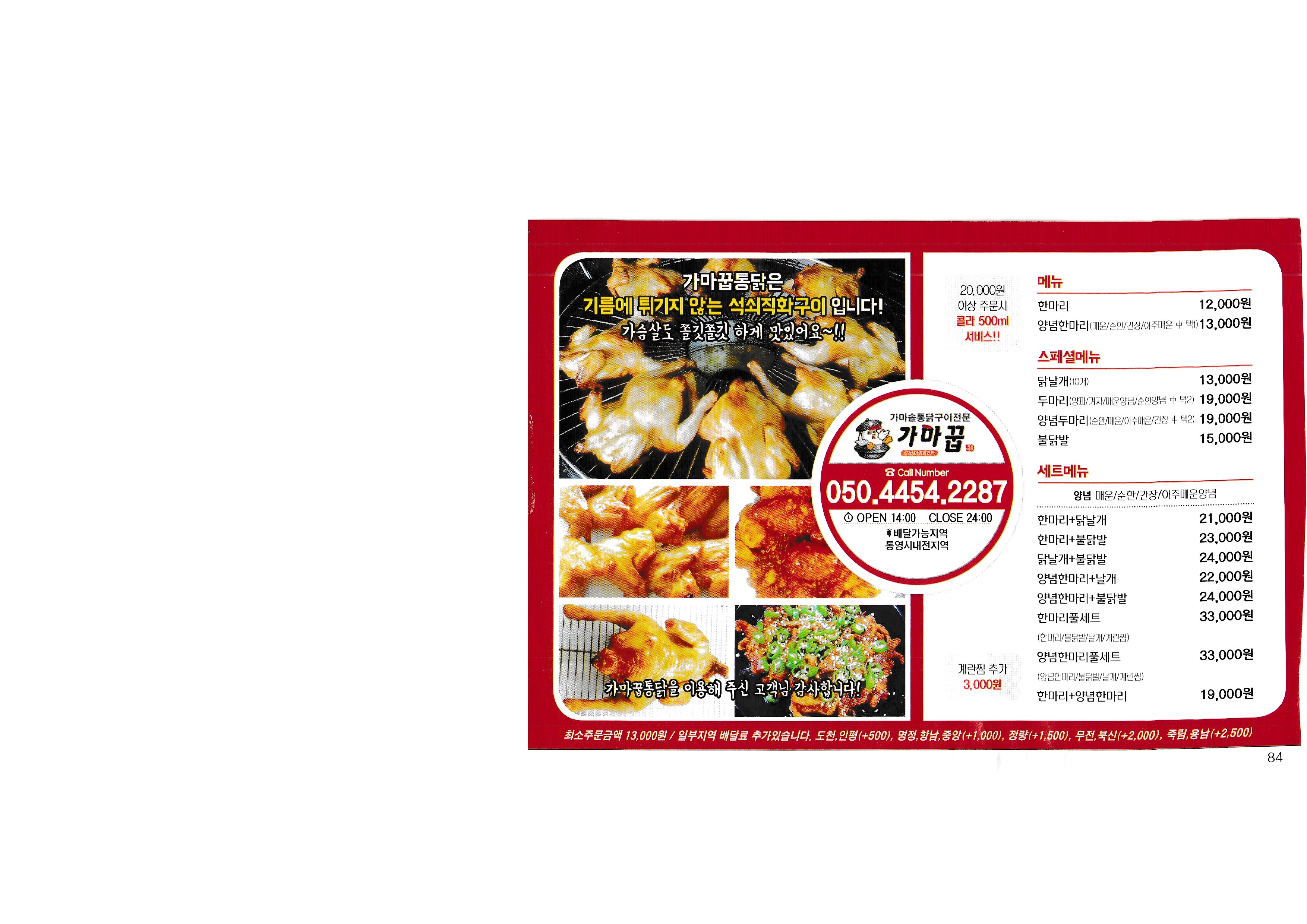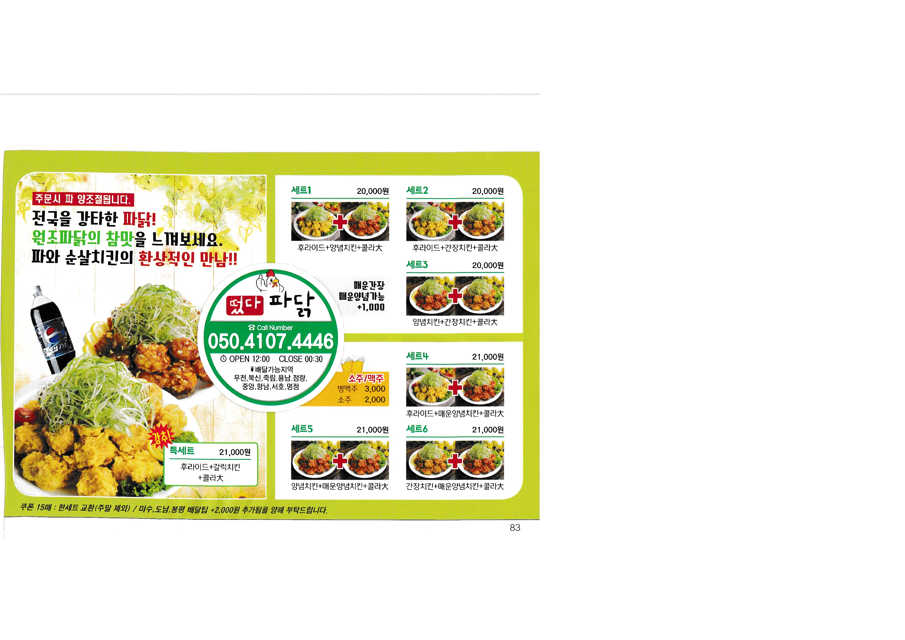 [Delivery 365] Real-time market price to check the price of Korea in 2018...^^ --------------------------------------------- Nene Chicken Tongyeong Jadam Chicken Barun Chicken fresh chicken kiln house Chicken the Home Myeongjeong Altong Tteokgangjeong Mujeon 60 Chicken Mujeon Mother-in-law Chicken Bongpyeong Nene Chicken Old-fashioned Chicken Misu 60 Chicken Donam Misu Zikoba Bongpyeong Dawn Chicken Old-fashioned Chicken Woongs Charcoal Grilled Chicken Delicious fried food Fura Chicken Tongyeong Jukrim Charcoal Barbecue only Goobne Chicken Mujeonbuk New Mom's Touch Central Mom's Touch Juknim egg drop New King Bakery Lotteria Tongyeong Lotteria Jukrim Branch Subway Myeongnyang Hot Dog Sandria Darak Village Sinuiju Sundae and Zucchini not a pig Aragaya Gangbok Samgyetang Tongyeongchon Noodles Folk Village Myeongchon Kalguksu Yugane Momo Steak bbdb Yum Sam Gimbap |