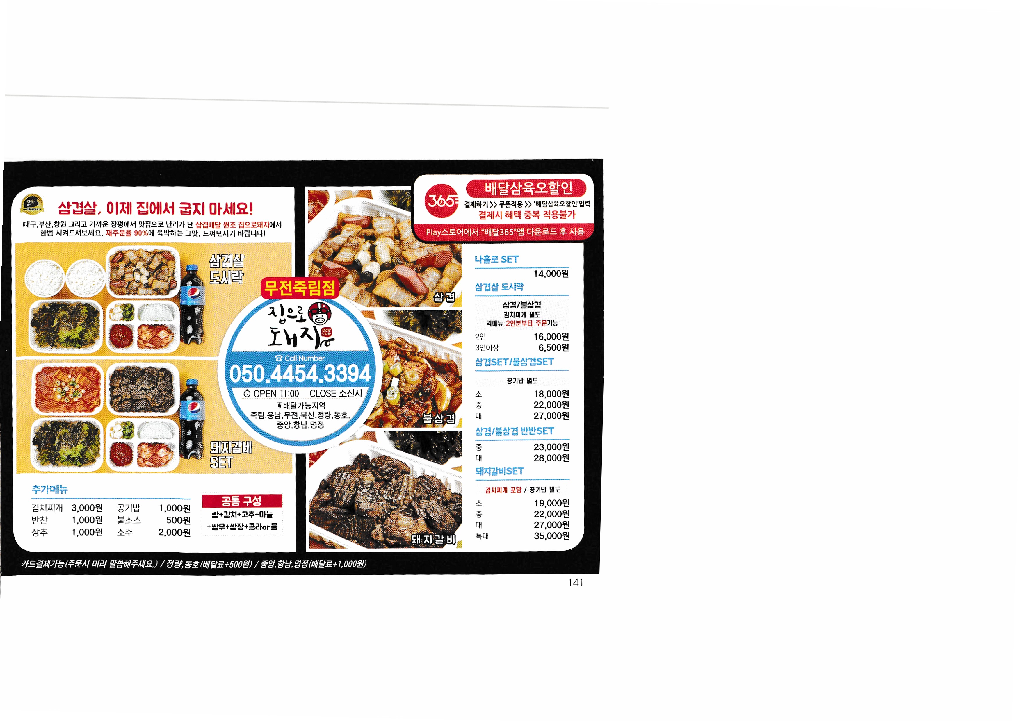 [Delivery 365] Real-time market price to check the price of Korea in 2018...^^ --------------------------------------------- Yongwoo-dong Mujeon Branch one meal restaurant fat meat restaurant Maru Gopchang Busan pork soup Korean-Japanese restaurant Hwaltae Village Seoga & Cook Yongu-dong Bongpyeong Branch Dangdong Bridge Restaurant Sageori Samgyetang Yongu-dong Juknim Branch Tongyeong special meal stupid brother zucchini Jobang Octopus Bae Samyo Jo In-soo bag stew Gwangpo Haejangguk Home Pork Misu OK Zucchini Tae-ok spot park spot marathon Chinese cuisine Mao Villager's Jjamppong Emperor Tray Jjajang pearl spot Wonsan spot Masterpiece Tteokbokki Atal Tteokbokki Shinjin Tteokbokki Baby Gimbap Talent Emergency room tteokbokki Sinjeon Tteokbokki Juknim Rookie Tteokbokki Dongdaemun Yeopgi Tteokbokki Booyoung Bossam |