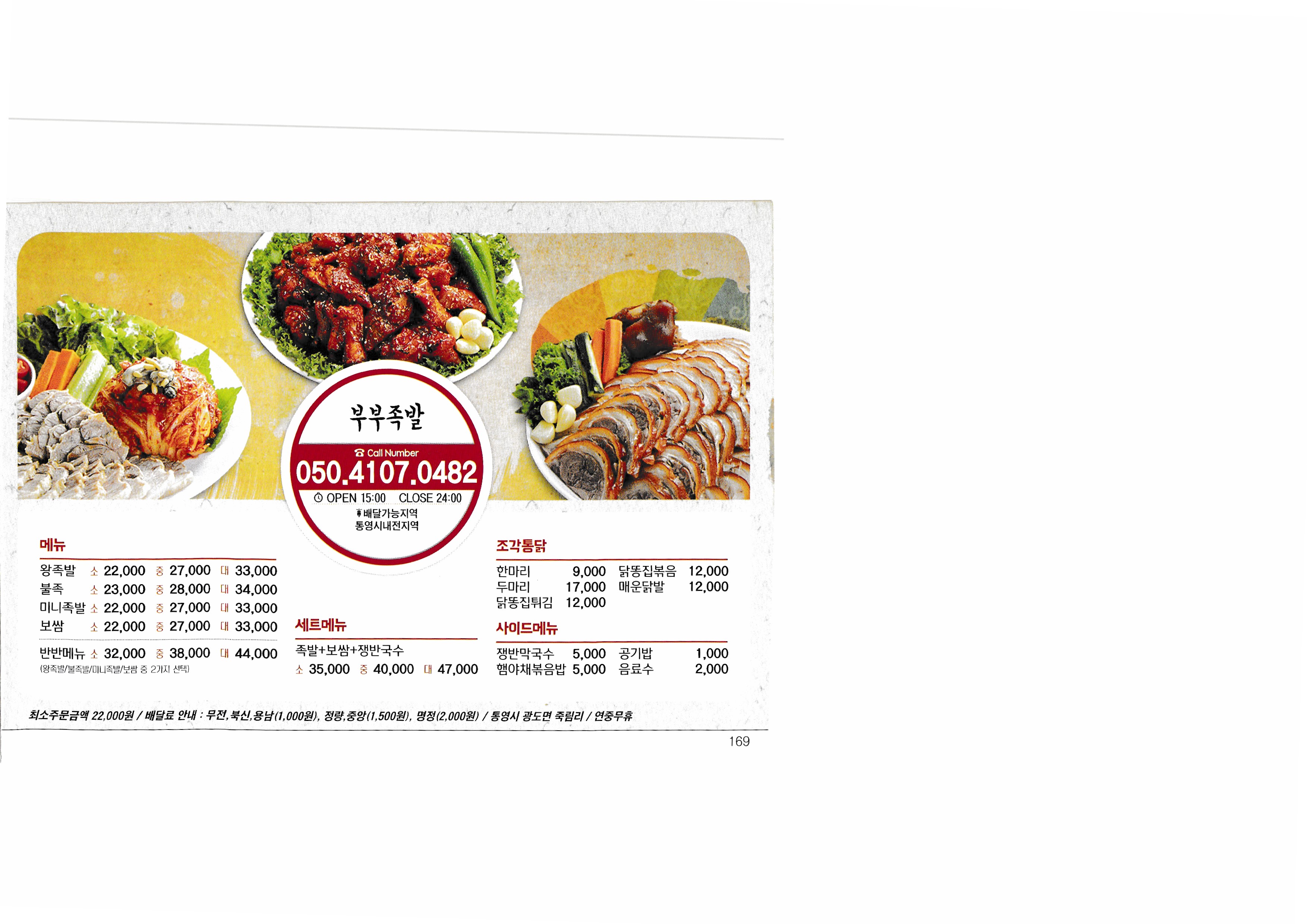 | [배달 365] 2018년 대한민국의 물가를 알아볼 수 있는 실시간 시장가격...^^ --------------------------------------------- 촌놈 족발 족발 야시장 정화순대 별족 부부족발 깐족깐족 한양족발 각시왕 족발 THE쫀득이 서민족발 장충동 왕족발 원할머니보쌈 통영점 종로족발 |