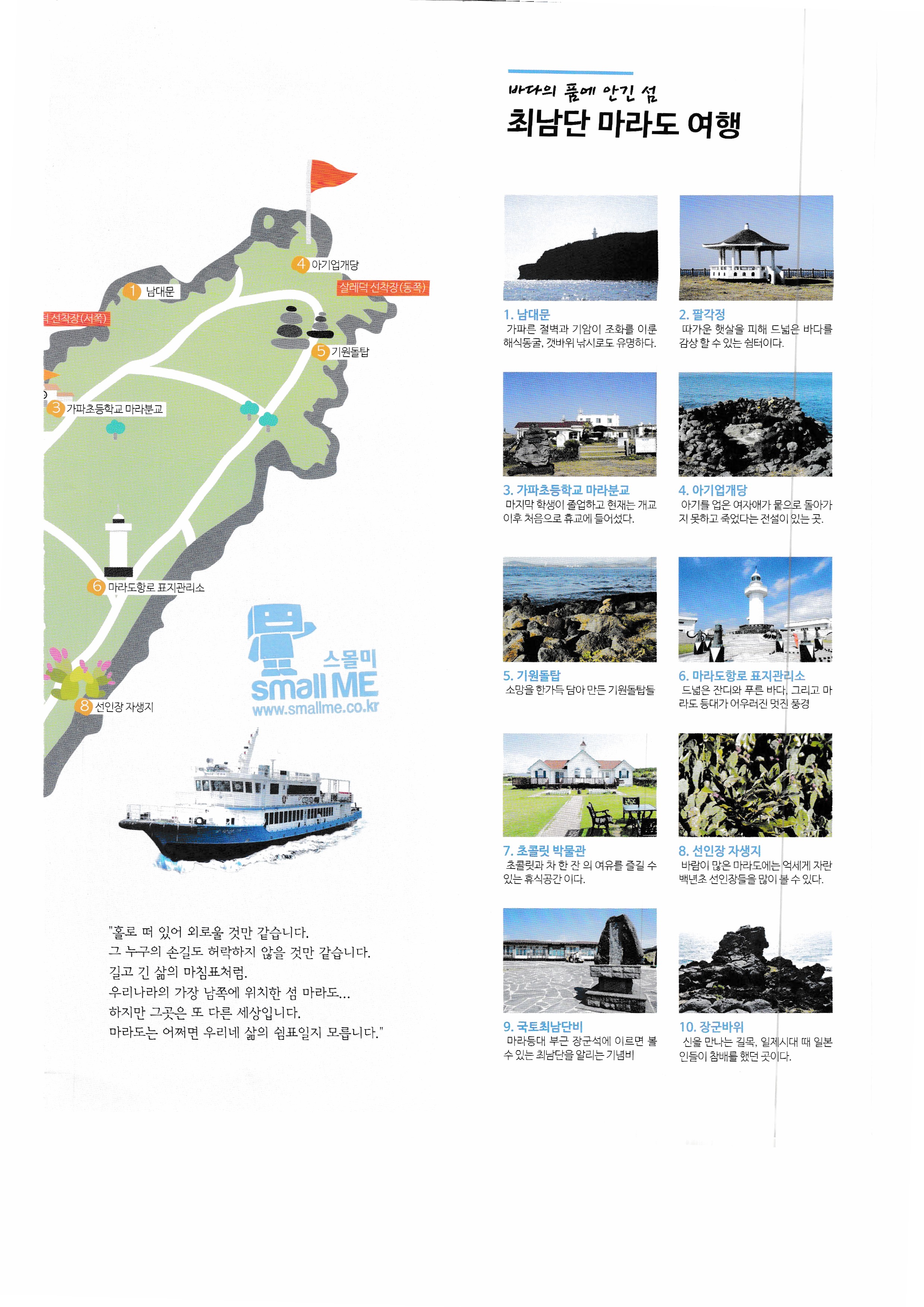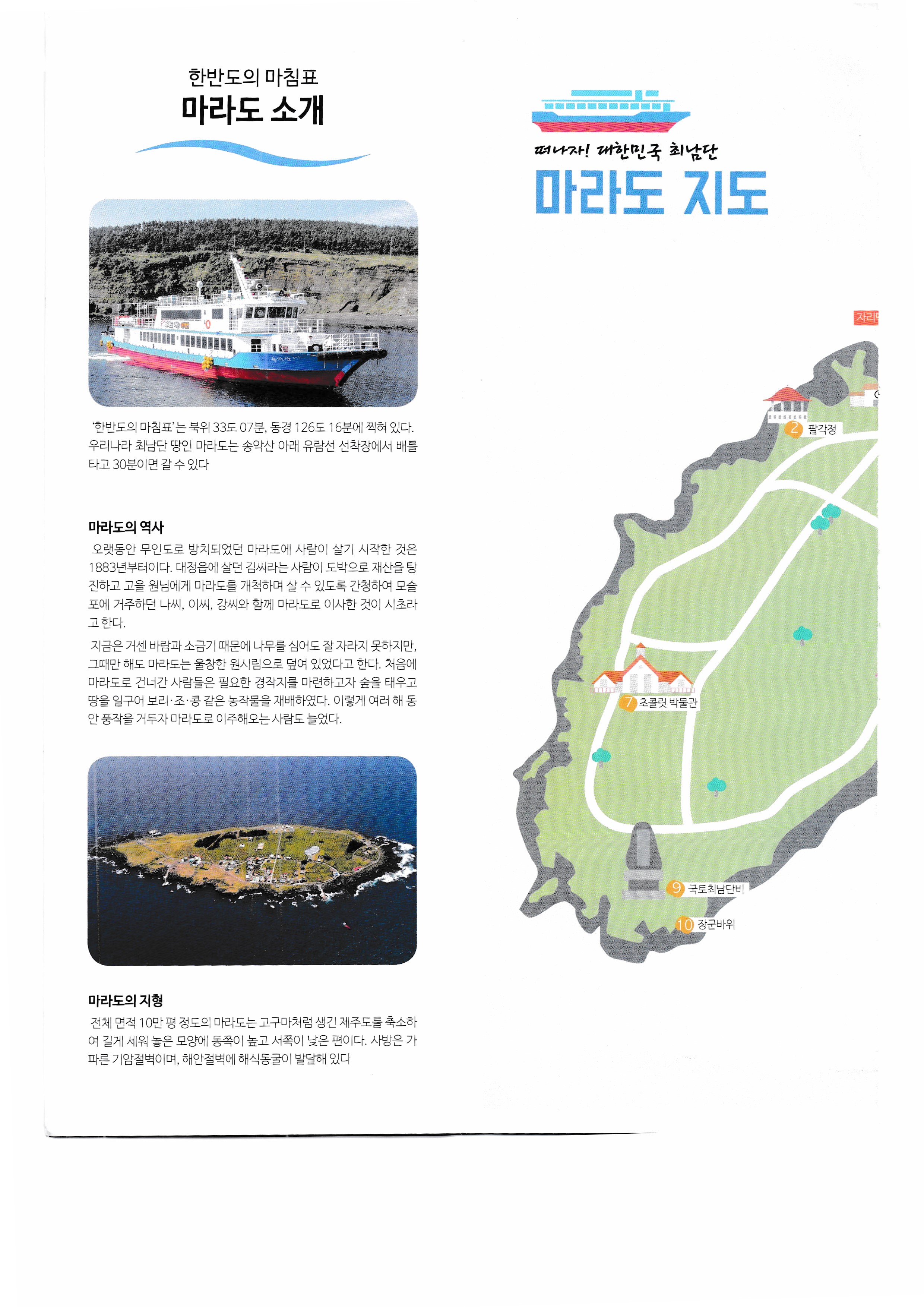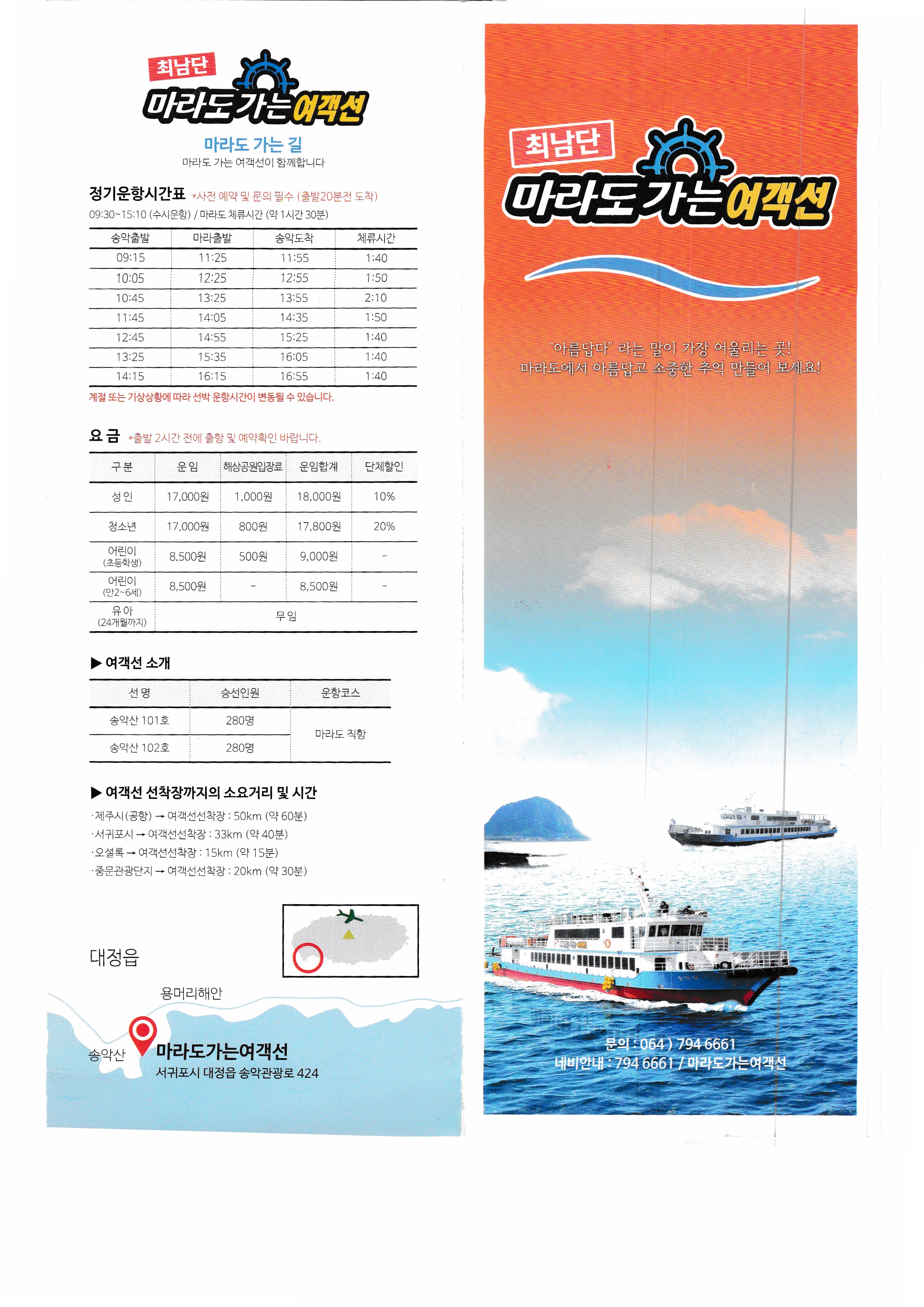 마라도 가는 여객선. 정기운항시간표. 마라도 지도,