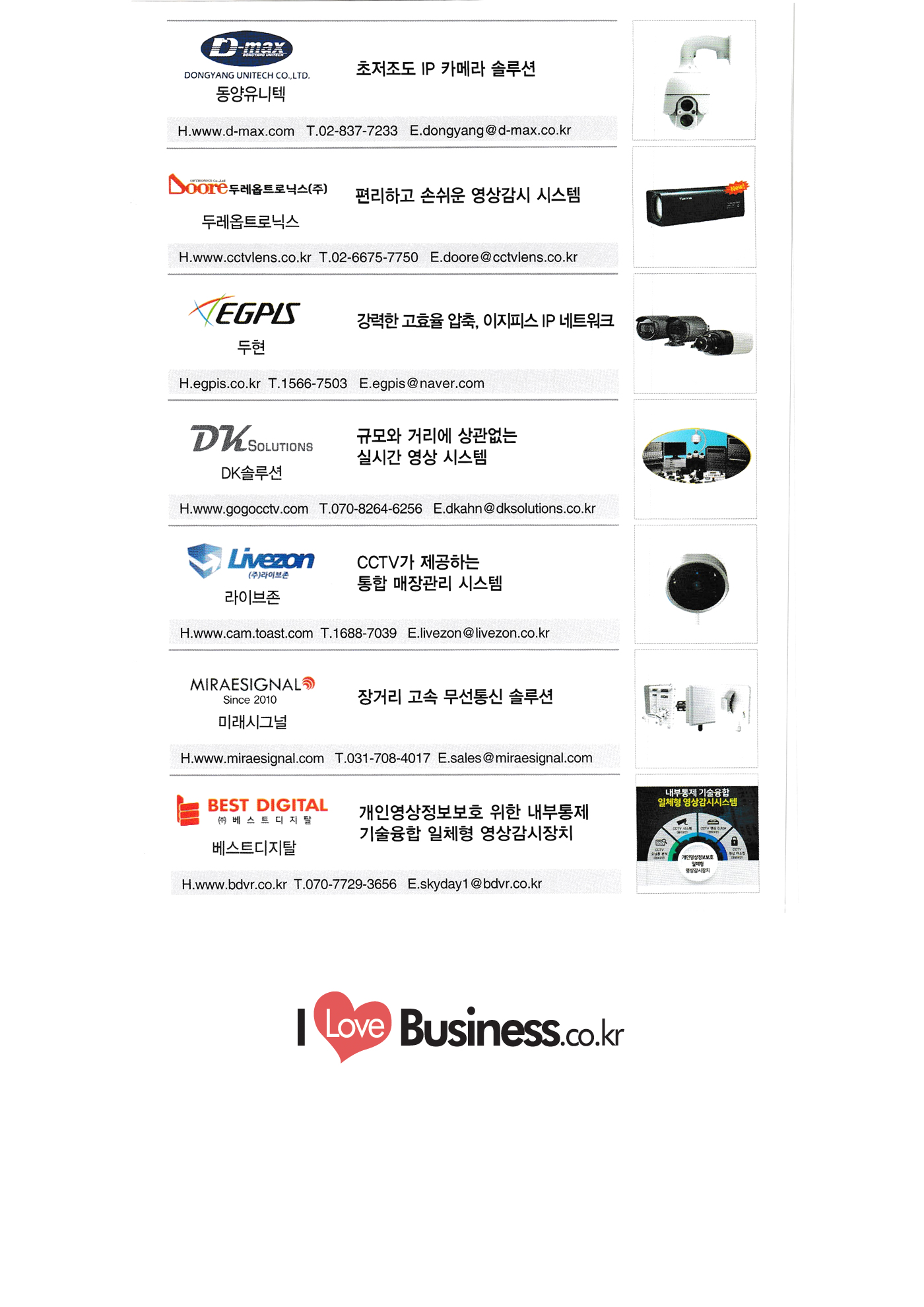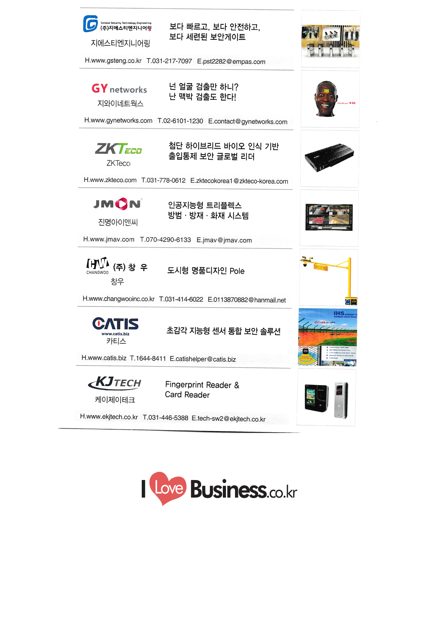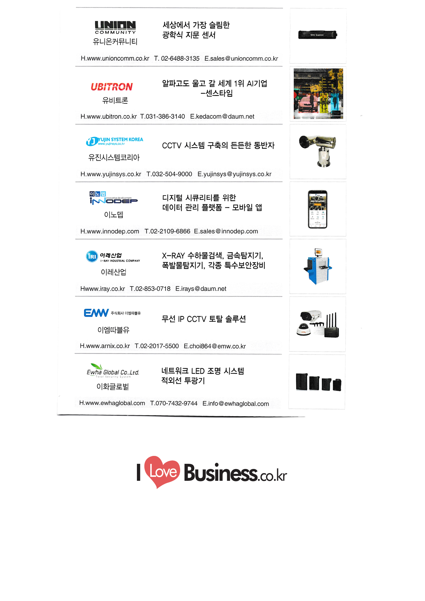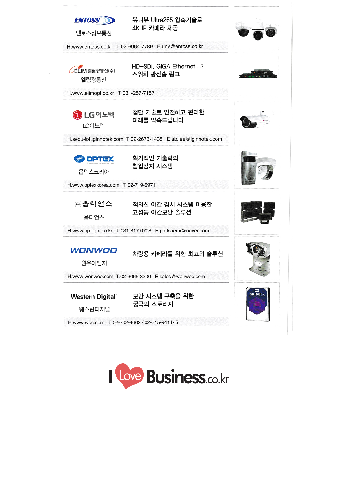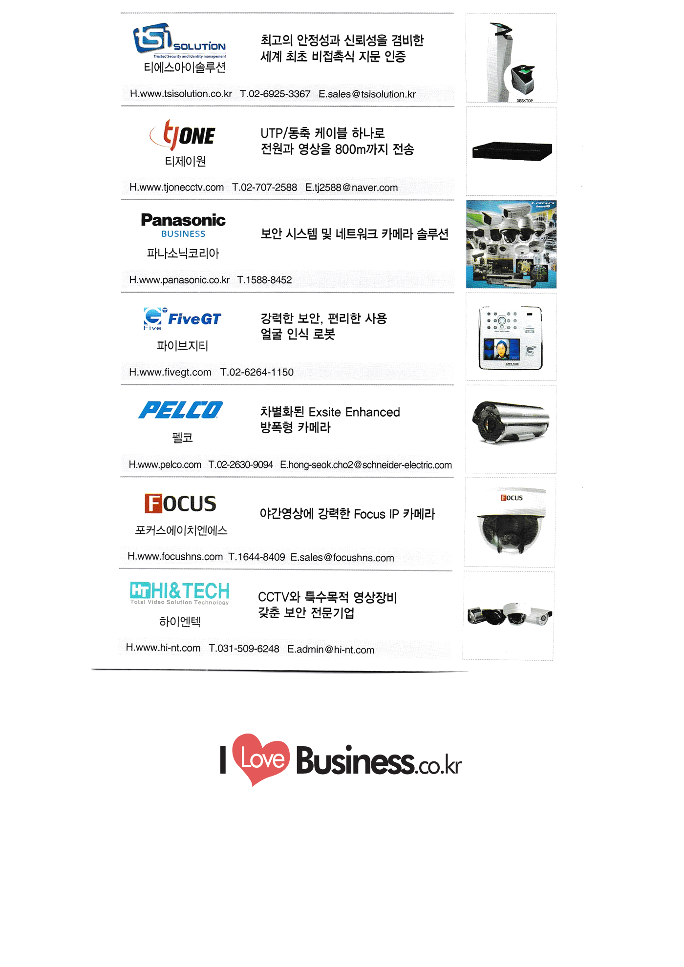 [List of companies related to the security industry] Gyeongin CNS Kunebo Korea glonex Global Bridge Goldstar Security naise neckflow Damin Information Industry Dawon Tech Dahua Technology Daemyung Corporation Daesan Security Daewon Electric Power The K Dongyang Unitech Doureoptronics Doohyun dk solution live zone future signal Best Digital Bosch Building Technology VS Comtech videotek Vision Information and Communication salad Sejong Telecom Sehwan MS Sellings System super rock Suprema Systech Electronics Seagate Korea Sea Eyes CMI Tech Abigillon IDIS I.N.I RF Korea Escar FS Networks ncloud Entos Information & Communication Elim Optical Communication lg innotek Optex Korea Optians Wonwoo ENG Western Digital Union Community ubitron Eugene Systems Korea Inodep Ire Industry EM Table Ewha Global Ewhatron Indus Vision Insight Technology incis incon Ilsan Precision JWC GS Engineering GY Networks ZTteco Jinmyung I&C Changwoo Katis KJ Tech Katy & C KPN commax Kolon Benit Kudo Communication tech sphere Truenne TSI solution TJ One Panasonic Korea Five GT pelco focus Hi-Entech Hikvision Korea Hitron Systems Hangoo Ctech Honeywell Korea Hanmac IPS Hanwha Techwin Hyundai Steels Hyein S&S White Box Robotics Fine box Hugen |