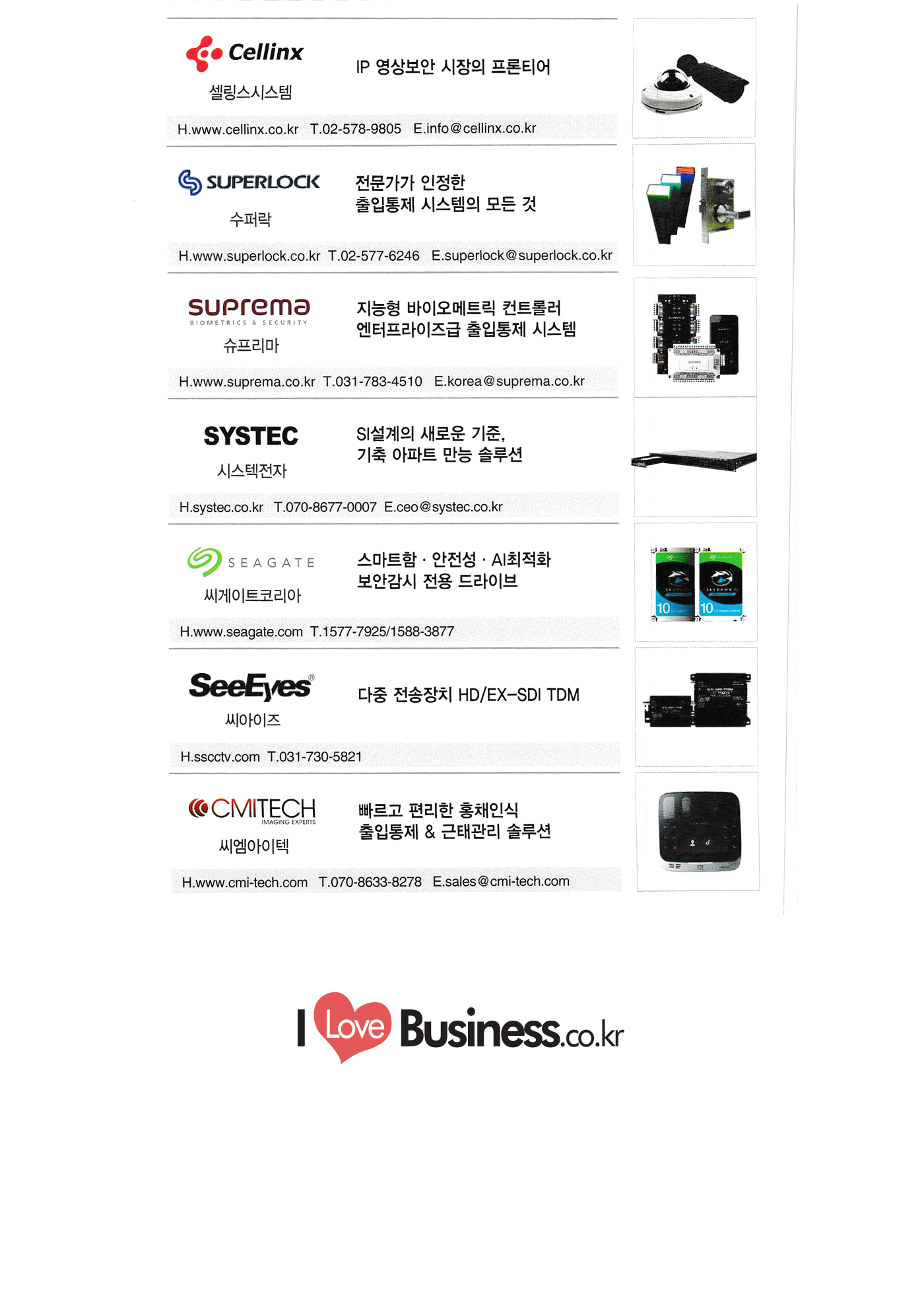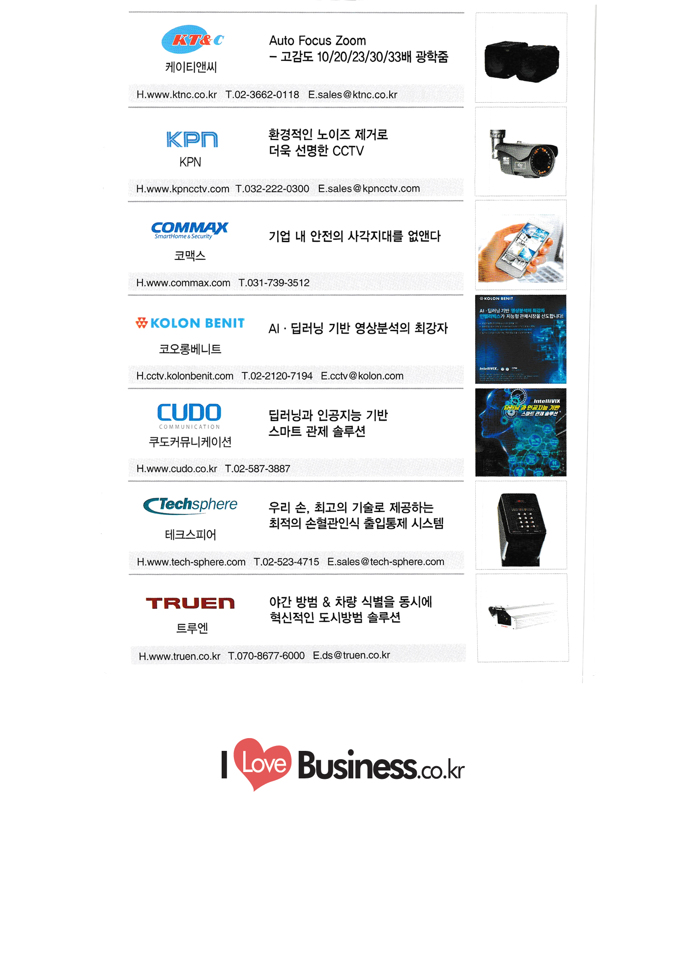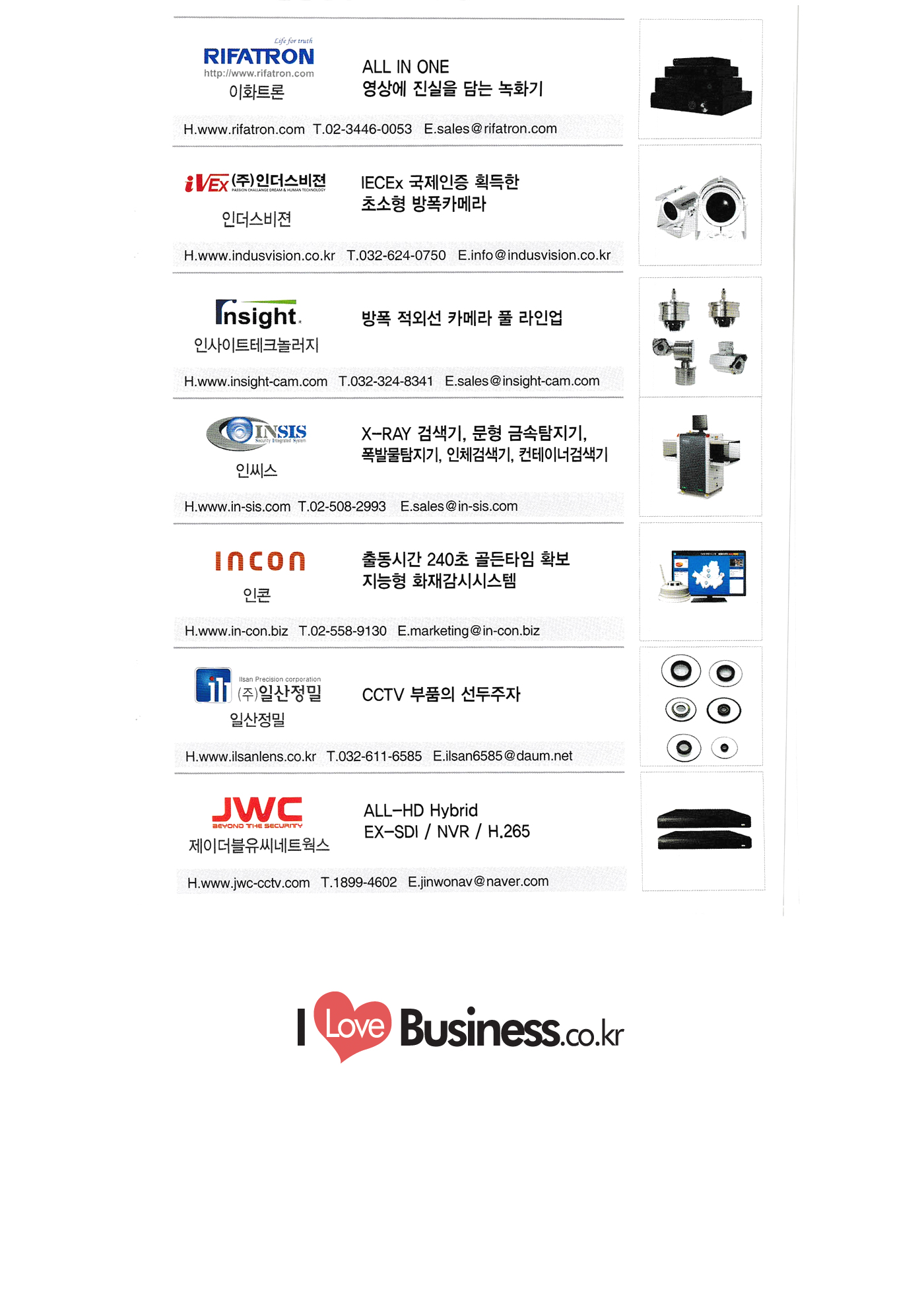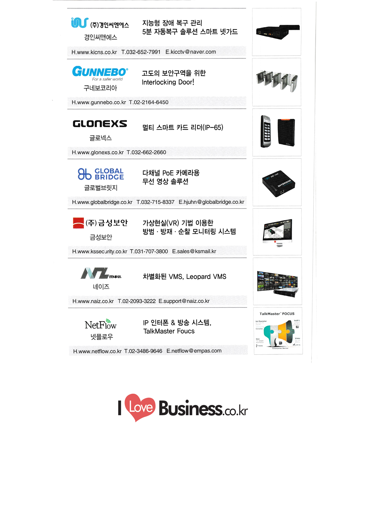 [List of companies related to the security industry] Gyeongin CNS Kunebo Korea glonex Global Bridge Goldstar Security naise neckflow Damin Information Industry Dawon Tech Dahua Technology Daemyung Corporation Daesan Security Daewon Electric Power The K Dongyang Unitech Doureoptronics Doohyun dk solution live zone future signal Best Digital Bosch Building Technology VS Comtech videotek Vision Information and Communication salad Sejong Telecom Sehwan MS Sellings System super rock Suprema Systech Electronics Seagate Korea Sea Eyes CMI Tech Abigillon IDIS I.N.I RF Korea Escar FS Networks ncloud Entos Information & Communication Elim Optical Communication lg innotek Optex Korea Optians Wonwoo ENG Western Digital Union Community ubitron Eugene Systems Korea Inodep Ire Industry EM Table Ewha Global Ewhatron Indus Vision Insight Technology incis incon Ilsan Precision JWC GS Engineering GY Networks ZTteco Jinmyung I&C Changwoo Katis KJ Tech Katy & C KPN commax Kolon Benit Kudo Communication tech sphere Truenne TSI solution TJ One Panasonic Korea Five GT pelco focus Hi-Entech Hikvision Korea Hitron Systems Hangoo Ctech Honeywell Korea Hanmac IPS Hanwha Techwin Hyundai Steels Hyein S&S White Box Robotics Fine box Hugen |