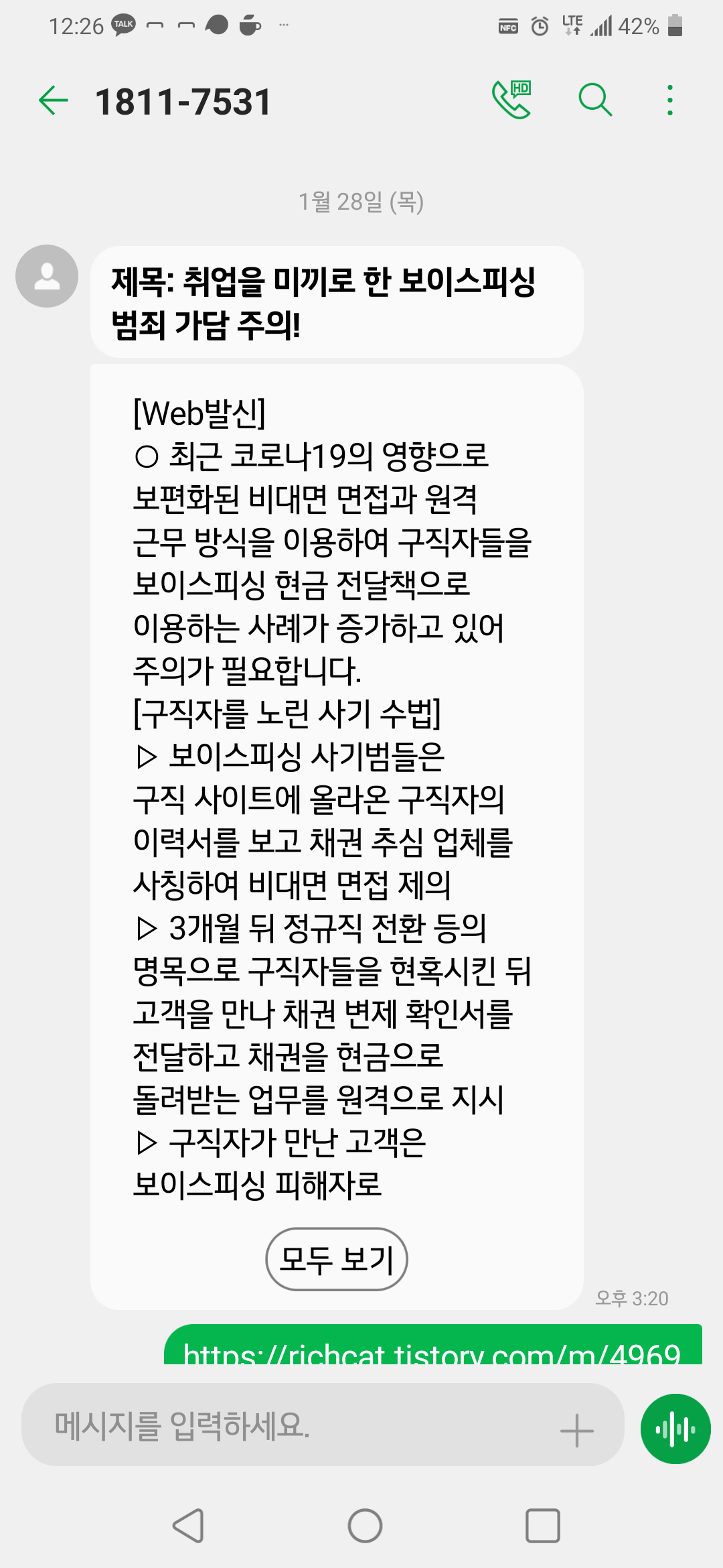문자사기(스미싱)에 주의하세요!!
