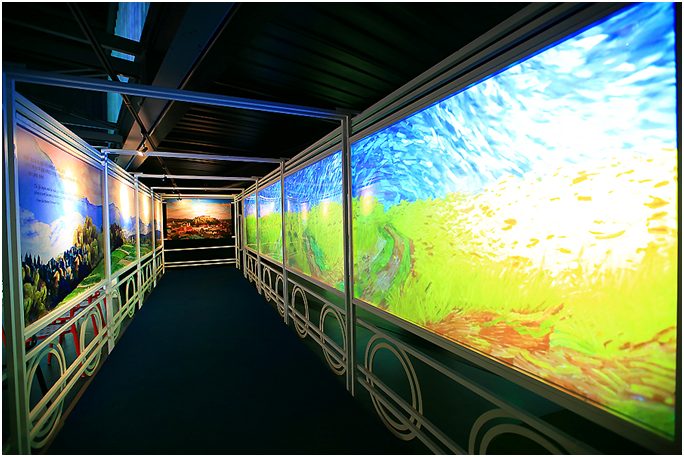 체험전시로, 세계명화를 미디어아트로 만나볼 수 있어요. 바닥면은 바닥면대로 화려한 그림들이 움직이고, 벽면과 천정에서도