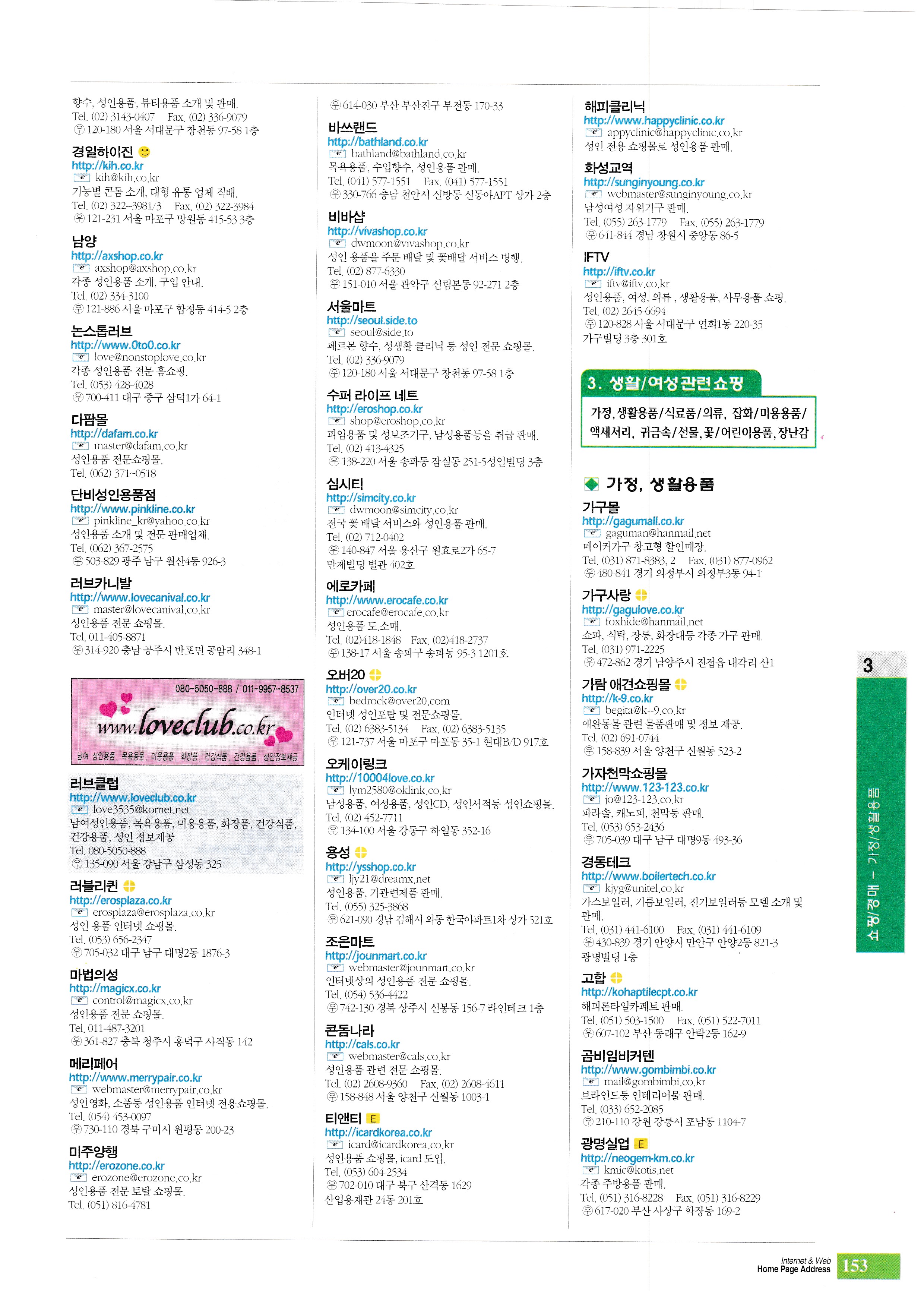 komat Coco Mart Copas Information Technology Taepyeong Department Store TV Korea TG Land Co., Ltd. Fancy Korea ping 21 Korea Cyber Bank Co., Ltd. Korea Telemarketing Co., Ltd. Hannette Hanbul Tower Hanbit country Hansot CSN hands free mall Hutcher Internet ACE Electronics Co., Ltd. Goodspia KSLAND LEP information NYBS KOREA Omi [Shopping/Auction] - Health/Medical Supplies Ganghwa Specialty healthy country Health Department Store healthy life healthy neighborhood Goguryeo International Korea Ginseng Manufacturing Co., Ltd. Korea Pharmaceutical Distribution Gwangyang Cheongplum Farm Light Source Meditech National Health Promotion Co., Ltd. good morning life Grammys Green Medical Geumsan Samsung Ginseng Namyang Aloe Daegaya Charcoal Village Daekyung Meditech Daebo Medical Daewoong Corporation Korean Sleep Society Deodeok Country dentitech Dongil Biotech Durae Village - Bamboo Story Duruwon Dua Industry Rapha Lotte Shopping Food Business Division Manda Myeongseong General Trading Company Myeongin Health Center Myungjin Distribution Mijin Corporation bimed biomax Bio Air Korea best step Boseong General Distribution Boeun Native Silkworm Powder Farm Buchang Tongsan bidet bank Love's Health Village Hongje 2nd Agency Samwon Trading Sangju Herb Nara Farm Sangjin Corporation Sun Life Seonyu triangle sound gland to Suseo Shinsung Spotec pelvis of the kidney C. Mount Trading Apio Yeosu Branch Adwin Korea Co., Ltd. Yaknamu Mountain how much shopping mall ecme medical MLO Health Sports jade by mail Woohae Trading Co. aid farming World Best Home Shopping umed Uiseong Agricultural Association Insan Dongcheon Ilsan Road Jangdo Agriculture and Fisheries JS Medical Joeun Mushroom Farming Association Corporation true world Cheonghae Life Science Daegu Branch Cheonghae Food Research Institute Cordic Communications Cozy Life Collage Korea Tarasona Korea Taeheung World Korea Shiba Vision Korea United Pharm Korea Ginseng Corporation Korea Calcium Hot Spring Korea Chlorella hanul seaweed world health big health star trade health one health town health plaza Honam Sanghoe Red Ginseng Corea red ginseng exhibition volcanic plantation loess culture [Shopping/Auction] - Sports/Leisure Goods Central Fitness Asa Motors upside down SM 4 Ocean Challenger Ulsan Fishing Plaza Wave X Yoosung Industry sacramental Insol Tech Intersports Jaewoo International Jeong Geum Planning Jeongcheol Sports Joy info sandals sports Changa's Power Shopping Mall cho-dam boss soccer country Koreana Golf Taekwon World Taekwon Korea Palgu Sports Fishing Land Fishing Mart Pingware Hana Distribution Korea Reebok Daegu Dongseongro Branch Head Yeonsinnae Permanent Discount Store health town family camp M.A.D Sports [Shopping/Auction] - Adult Goods 0987654321 0 love 25feel Kaga Ina Adult Club Gago Farm Mr Mart Ghana Industry Kyungil Hijin Namyang non-stop love Dafam Mall Danbi Adult Store love carnival love club Lovely Queen Magic Castle mary fair Americas Co., Ltd. Bathland Viva Shop Seoul Mart super life net Sim City Erotic Cafe over 20 ok link Yongseong Joeun Mart condom country T&T Happy Clinic Hwaseong Trading IFTV [Shopping/Auction] - Home/Household Goods furniture mall furniture love Garam Dog Shopping Mall Gaza Tent Shopping Mall Kyungdong Tech goha Gombi Imbi Curtain Gwangmyeong Industry Geumran Aquarium Kumho World Furniture Department Store Kumho towel ready-made kitchen mart gift star Kim Jeong-ran's Thimble and Thread tree village Four leaf clover shopping mall Nokwon Mulsan damoyo Dainbell Corporation Daegyeong Trading Co. Daekyung Home Stone Daedong Ceramic Tile Daedong Comprehensive Prize Daelim Tile Co. Daesang Co., Ltd. Daesang Unemployment Daesung tent company Daesung Henkel Dae-A Medical Daeya Trading Co., Ltd. Daewoo Comprehensive Kitchen Appliances Daeho General Trading Co. Dongbo Housing Dongyang Cisco Dongjin Imitation Co., Ltd. Diprocat Co., Ltd. Lovelon Mulsan reptech living glory living sketch Richard Holm my fat magic gas oven Masterpiece Curtain Exhibition Hall all nail bone aquarium Mulnara Aquarium Mikwang Ceramics Mikwang Kitchen future trade Bye to Bye Venus bath house Betty Buil Construction Brother system Bideland vizitech big mart Big Sale Mart Village Shop Binggrae Trade Salim Net Sambo General Trading Company Samsung decoration Samhan General Trading Co. Sangmi Classic Furniture deep wood new era industry Sharon 21 Trade Seoul Namdaemun Market Co., Ltd. Sunkyung Curtain Department Store Sungjin Gifco Sewoon Shopping Mall select one small diameter distribution charcoal village Spagio-Hoyeon Trading Sysville Shinsegae Pet Mart Shinwoo System Cyber Pet twin knives sun house Aroma Park Arirang Furniture Department Store aboa bed oh my boss aura Aqua for Korea art cross stitch Apple Mart foreign currency trade FARS L&M Yerim Company five people Ohsung Industry jade stone oxanga oxy Ondol bed Old Korea Korea Trade woman soft postal furniture Woojin Home Sense Woongjin Coway Water Q Korea One-click text wedding krabi Yushin Industry Yoon Ensemble Mr. Lee Icheon China Insadong Marketplace Interlux Intercows Industry Co., Ltd. Ilkwang Metal Country Aquarium jc marketing kitchen plaza juice store G&G Jinro Seoksu (Seogu Agency) Charcoal Village Cheonil Fishing Port iron art Cheongwon Furniture Village grassland aquarium Hobby Aquarium coffee mania Chemitech collection night towel land top friend 2&1 Trade Depot TM Korea Pet Center Pet Center Ha Dong-sang Korea Ceramics Hard Water Center [Shopping/Auction] - Groceries Korea Aquarium Hanbada Aquarium Hansung Industry Hanwoo Trade Brothers Comprehensive Decoration Fuji Bank Heungin-dang BeadsWith DUMP TV Home Mart reproductive system Garyewon Gau Trade Co., Ltd. Gaza Liquor Department Store (Euljiro Branch) Gangnam General Food Gangjeongwon Gulbi (Geumseong Gulbi) Geonam Distribution Geobong.com Konkuk Ham gomart Kowon general distribution Goeul Foods red pepper village Gold Kimchi fruit country fruit paradise Gwangyang Plum Agricultural Association palace confectionery Geum