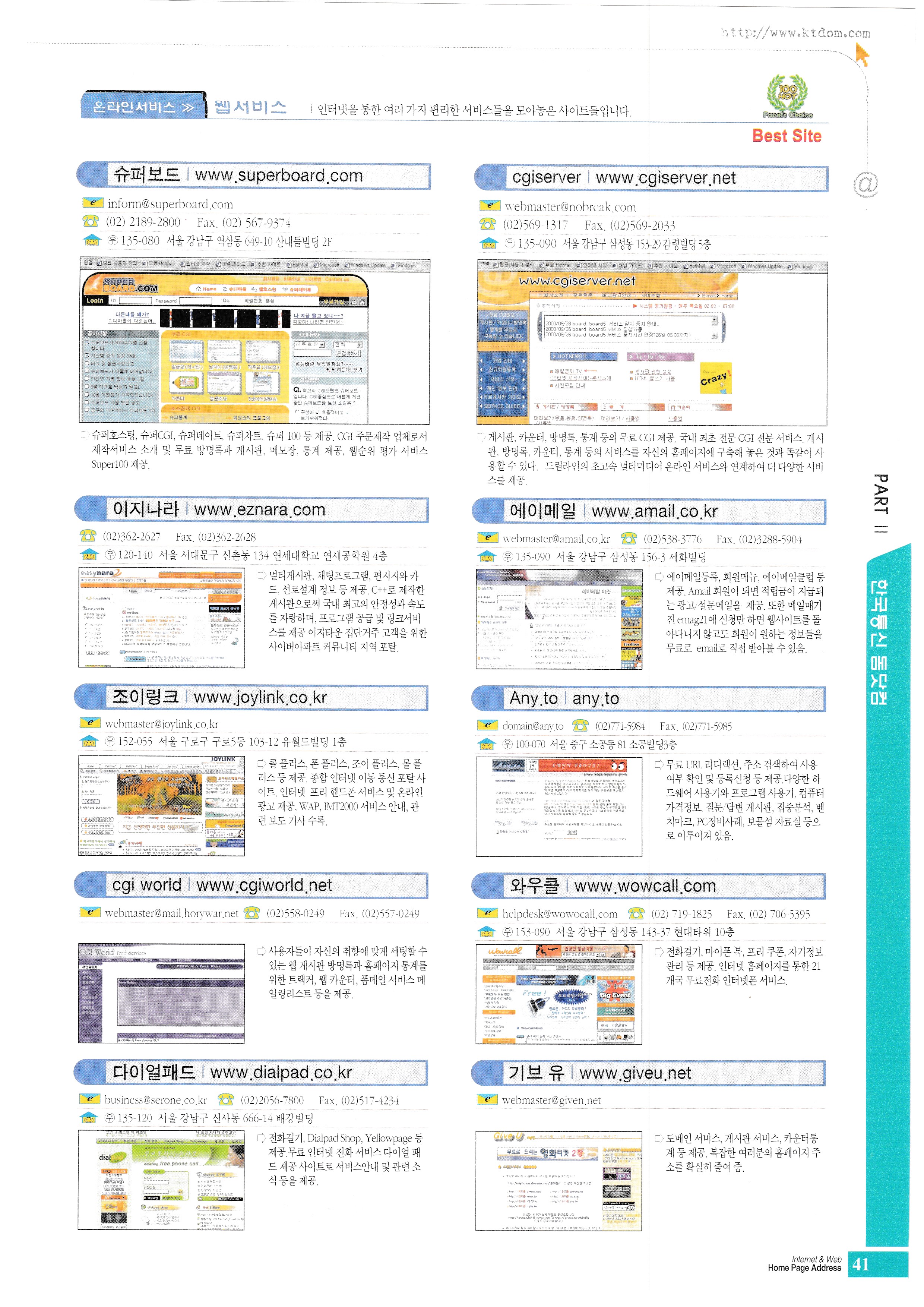 | [포탈 & 인터넷] 다음 네이버 라이코스 코리아 심마니 알타비스타 야후코리아 드림위즈 엠파스 집 ZIP 아이러브스쿨 네띠앙 다모임 다음카페 인티즌 깨비컴 마이클럽 미즈넷 아줌마 주부닷컴 Wom@n 우먼플러스 뷰티넷 이브클럽 여우닷컴 아이엠미즈 웅진닷컴 YBM시사닷컴 배움닷컴 에듀피아 에듀넷 윈글리쉬 MSN 위피 코리아닷컴 새롬넷 이지빌 오케이캐쉬백 해적 Xpert 아이믹 오픈타운 마이폴더넷 코리아씨넷 넥스프리 ZDnet 메뉴판 피씨비 고고 케이벤치 엔포 조아박스엔터테인먼트포탈 동원사이버증권대학 디자인정글 이에듀넷닷컴 일본어교실 사쿠라 매결 e-Academy 온스터디 비쥬얼스튜디오사용자모임 팁엔테크 Taeyo’s ASP & MFC S.E world 데이콤 천리안 넷츠고 드림라인 데이콤 채널아이 신비로 하나로통신 두루넷 한국통신 나우누리 샌드투유 레떼 다음 카드메일 FeelPOST 네띠앙카드 디어유컴 씨즈메일 헬로데이 엔블러드 카드락 카페 아레오 MSN 디지토닷컴 씨프렌드 아이맨 큐리오 버디버디 한박스 야후메신저 포넷메신저 다이어리킷 마이투데이 PIMS 마이인터넷다이어리 인터넷다이어리 마이플랜 라이코스 mytime 아이도우미 마이쉘 타임글라이더 슈퍼보드 이지나라 조이링크 cgi world 다이얼패드 cgi server 에이메일 any.to 와우콜 기브유 퍼스넷 speed011 한국통신엠닷컴 파워디지털017 LG텔레콤 티티엘 sk텔레콤 엔탑 스피드012 카이 네띠앙 무료홈페이지 트라이포드 드림엑스 컴내꺼 두루넷 인터피아98 한미르 인티즌 갤럭시 채널아이 x-y 무료 웹호스팅 |