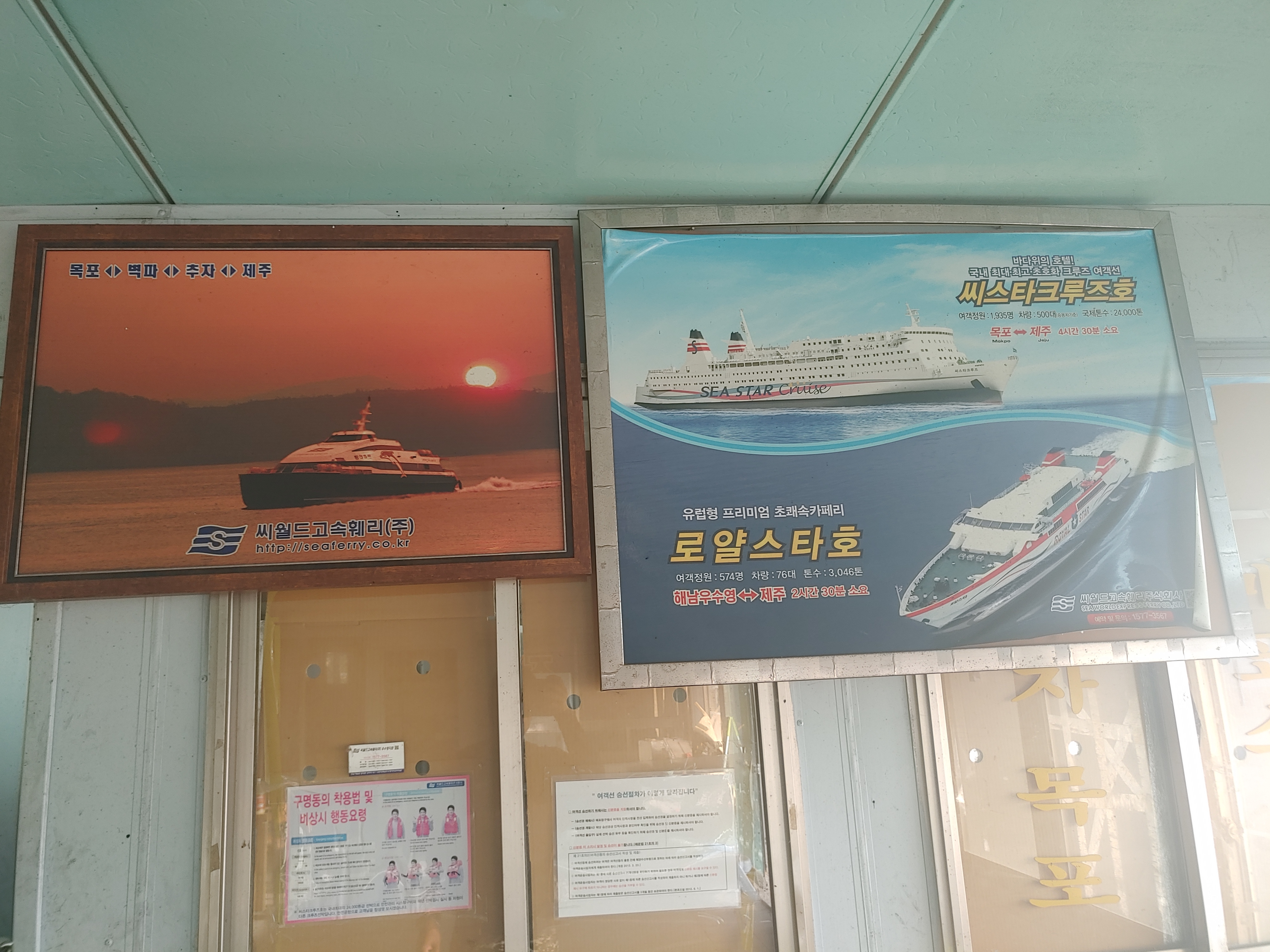 옛날엔 한창 섬 사이를 다녔었던 크루즈선 액자들과 운임표만 남아 있었다.