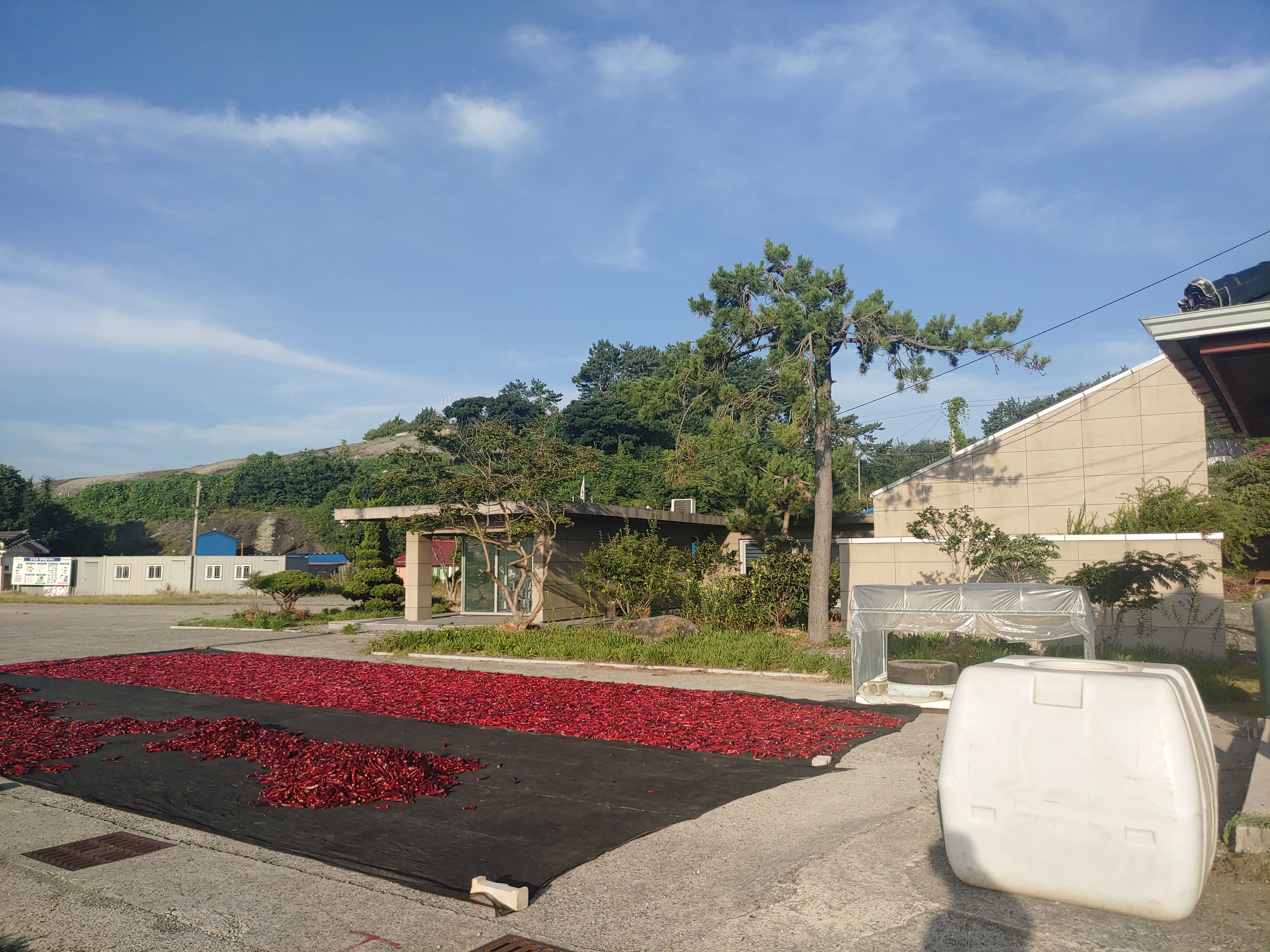 그 옆 복지회관도 나름 새롭게 지은 것 같은데 사진에 보다시피 마당에는 고추가 널어져 있고 안에는 비어 있다.